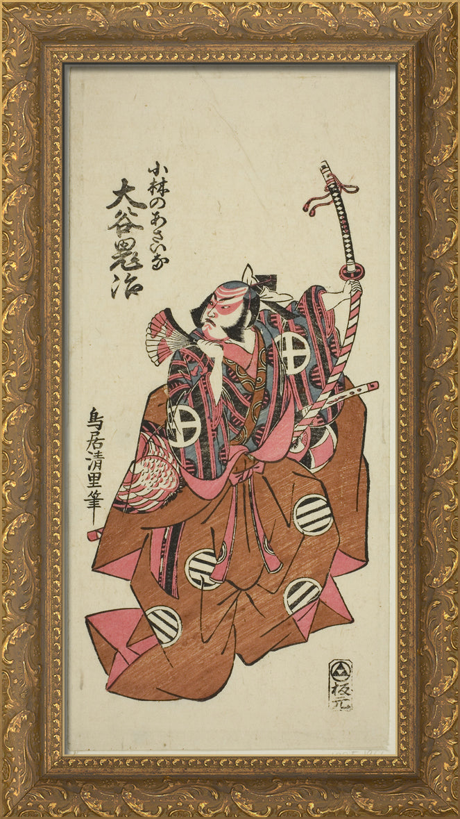 / The Actor Otani Oniji II as Asahina Saburo in the play "Hatachiyama Horai Soga," performed at the Ichimura Theater in the first month, 1759 by Torii Kiyosato