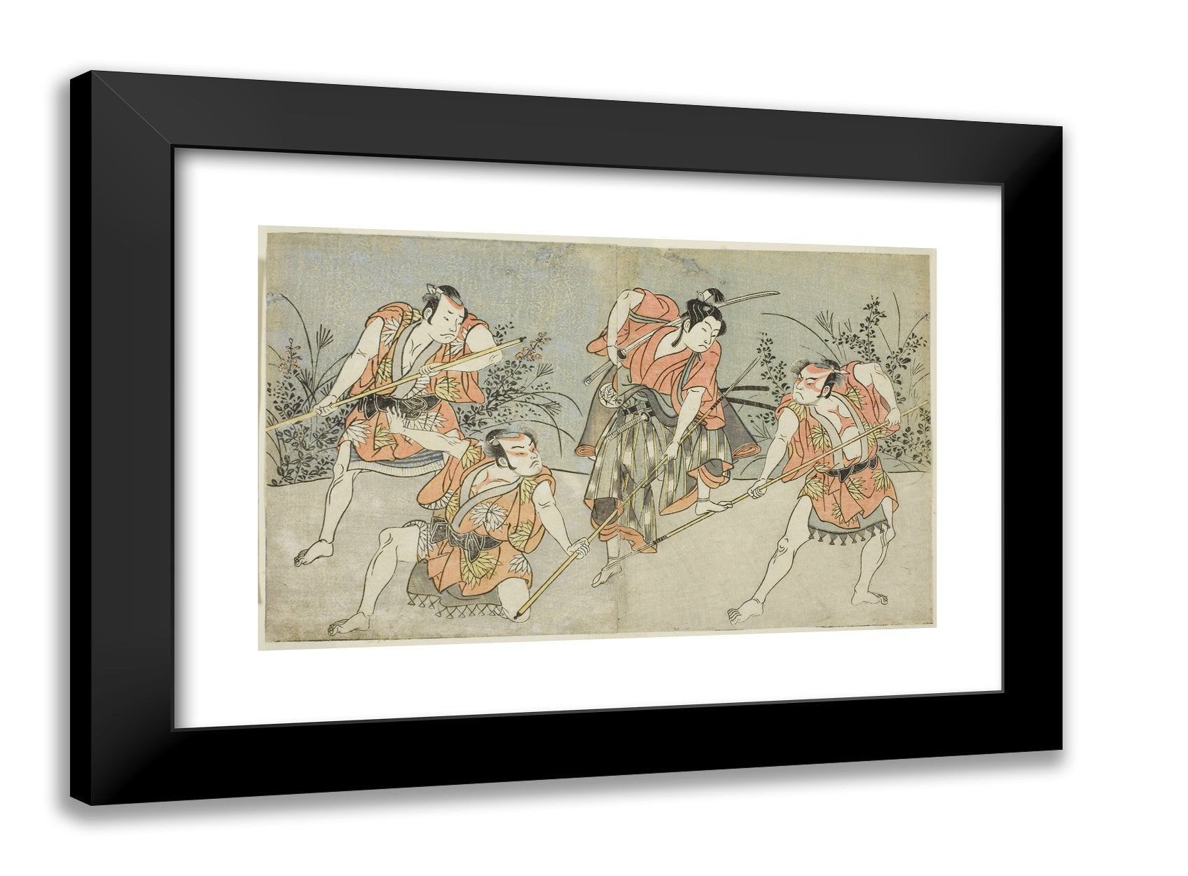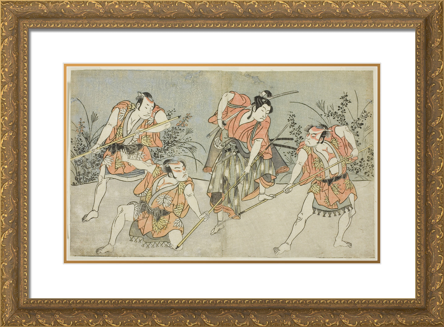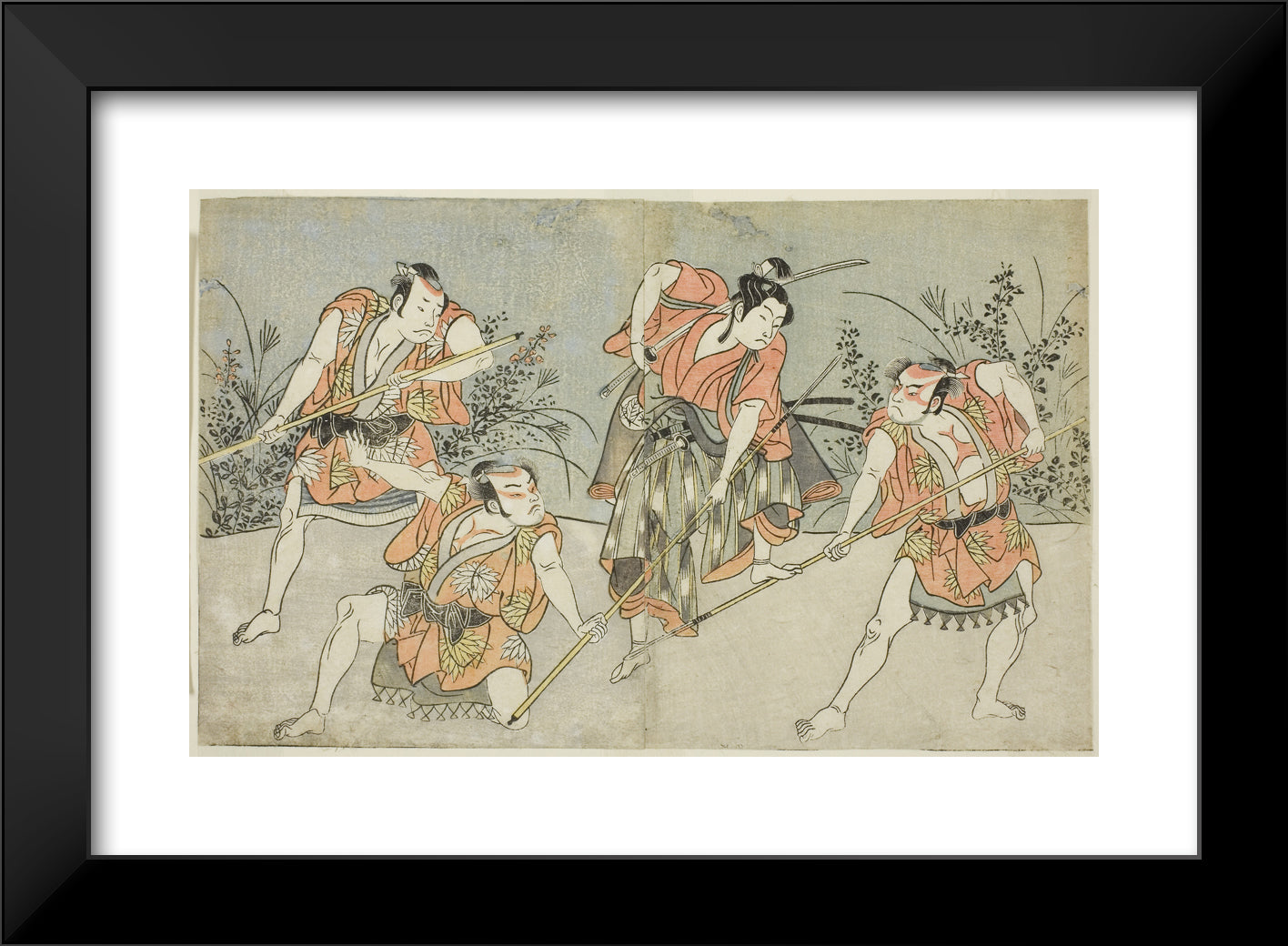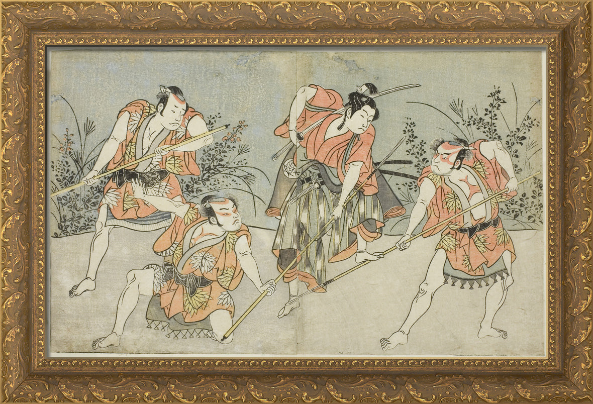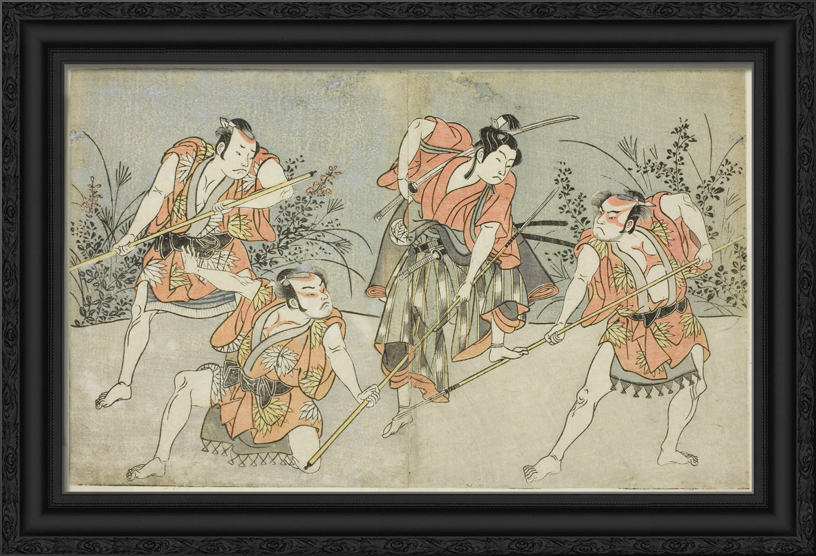 / The Actors Nakamura Kashiwagi as a Wakashu (second from right), and Three Unidentified Actors as Yakko by Katsukawa Shunsho