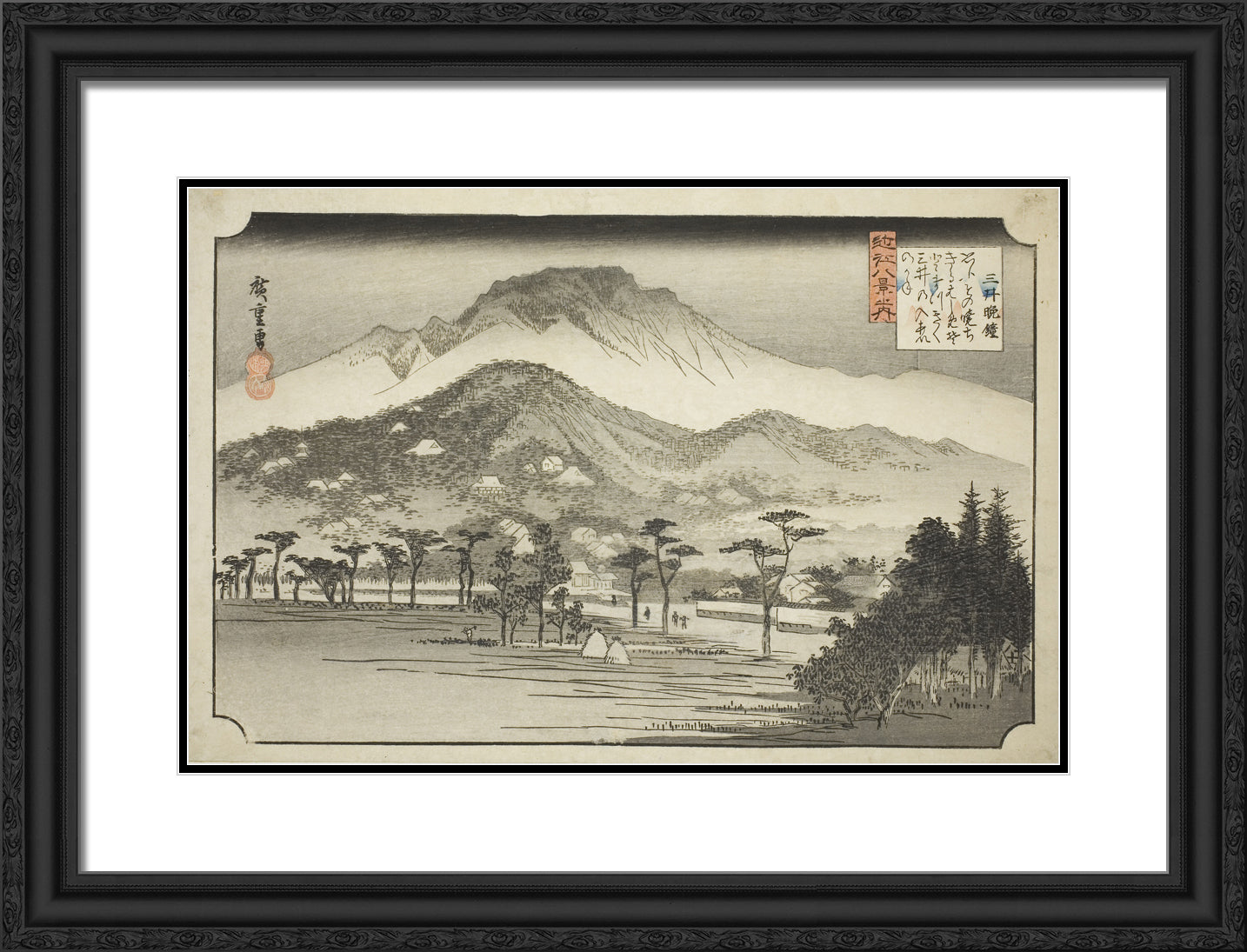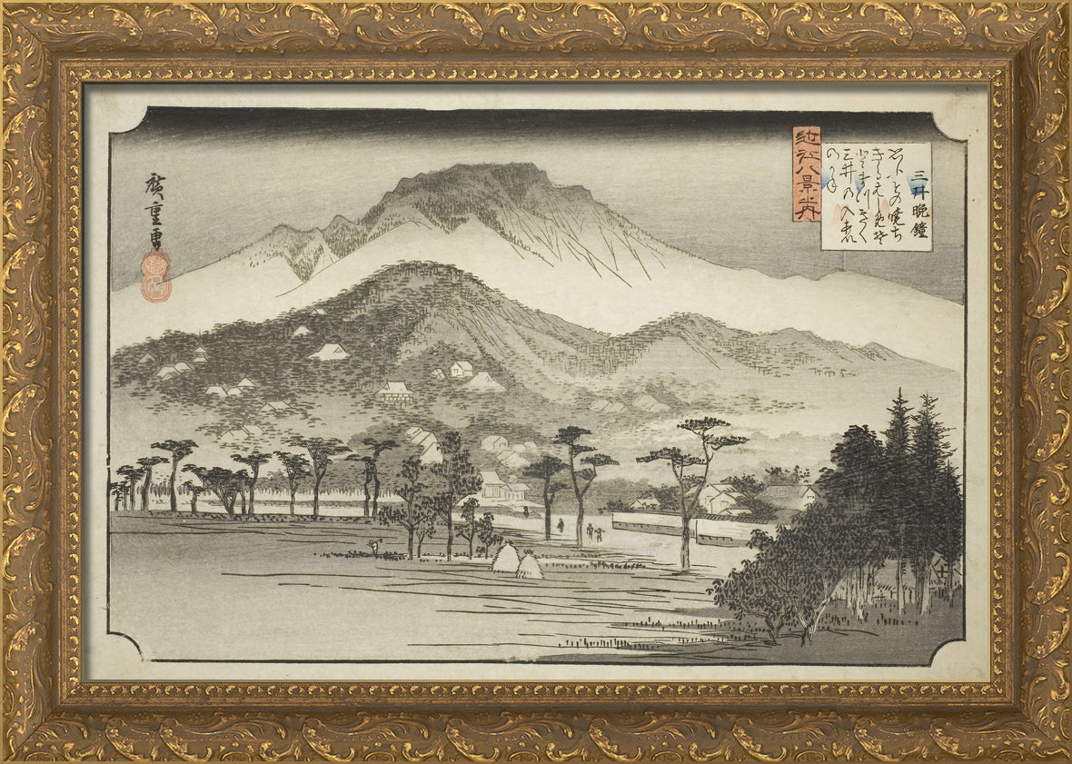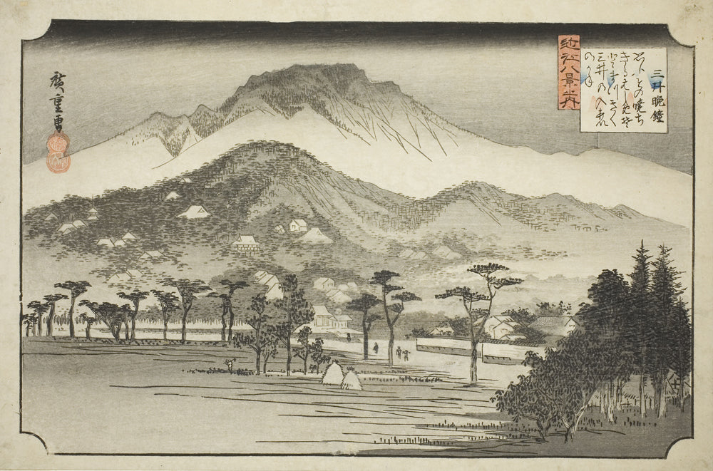 • The Evening Bell at Miidera (Mii no bansho), from the series "Eight Views in Omi Province (Omi hakkei no uchi)" by Utagawa Hiroshige