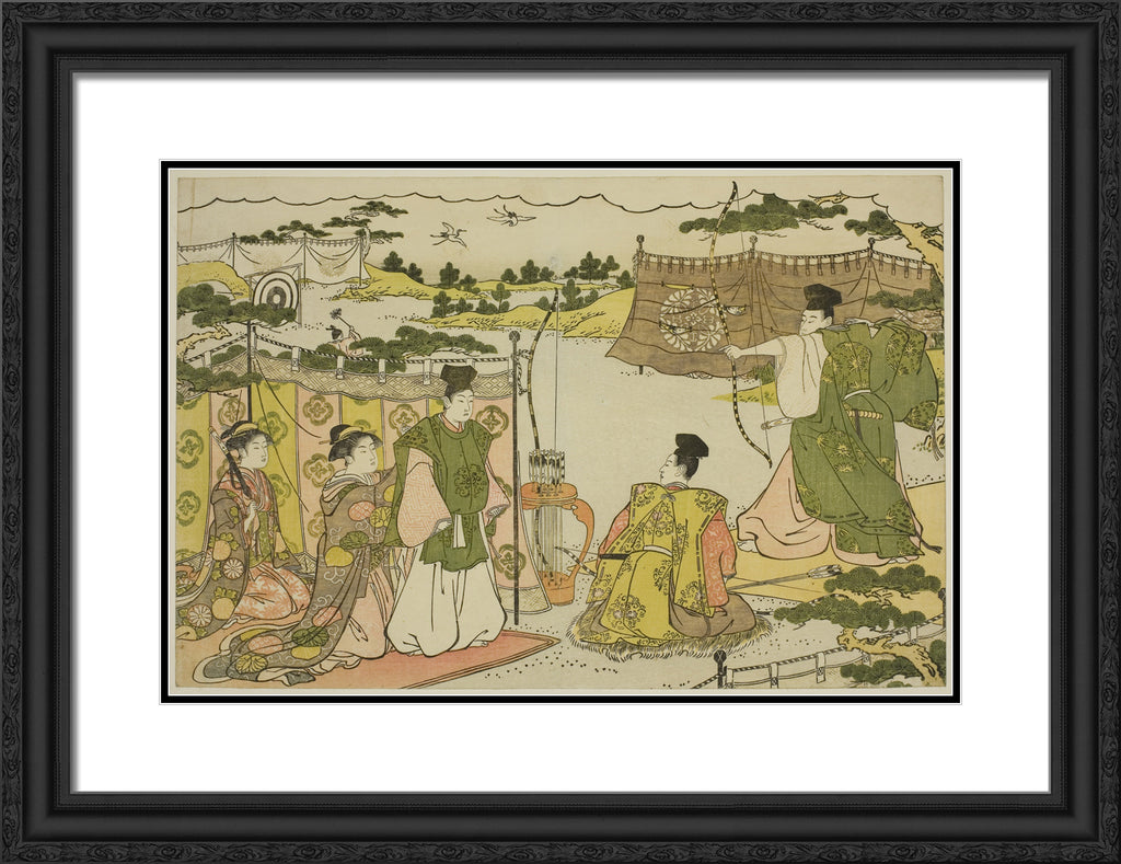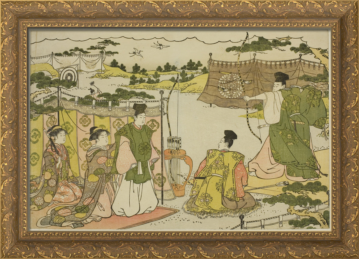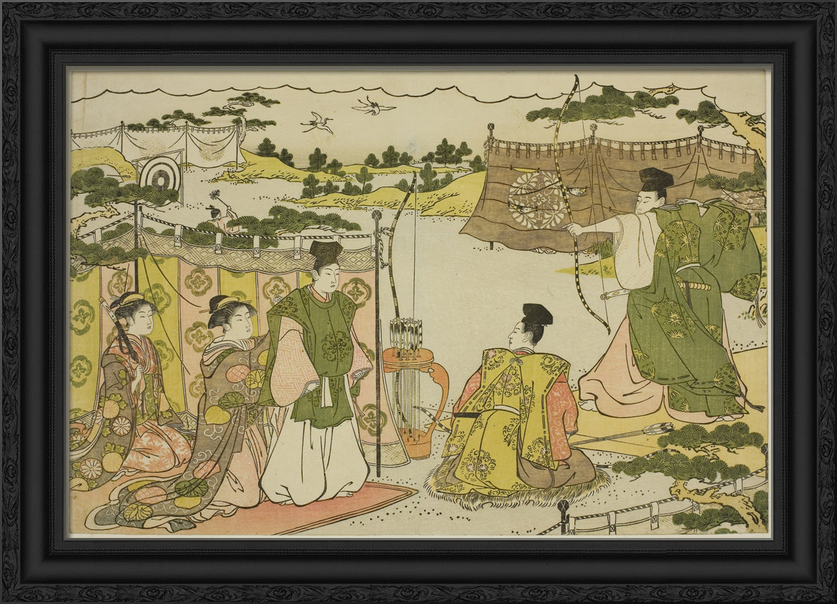 / The First Archery Practice of the New Year (Yumi hajime), from the illustrated book "Colors of the Triple Dawn (Saishiki mitsu no asa)" by Torii Kiyonaga
