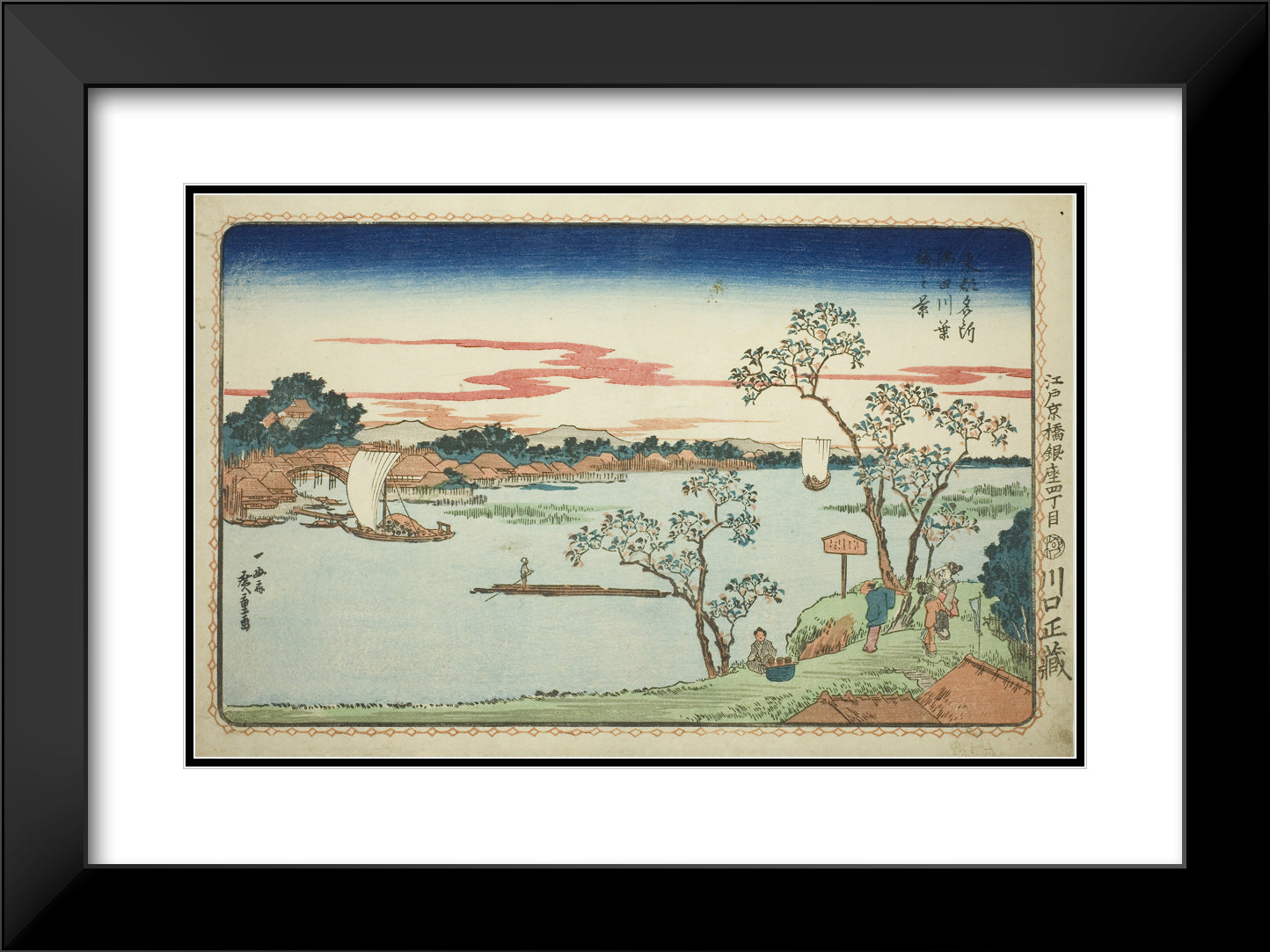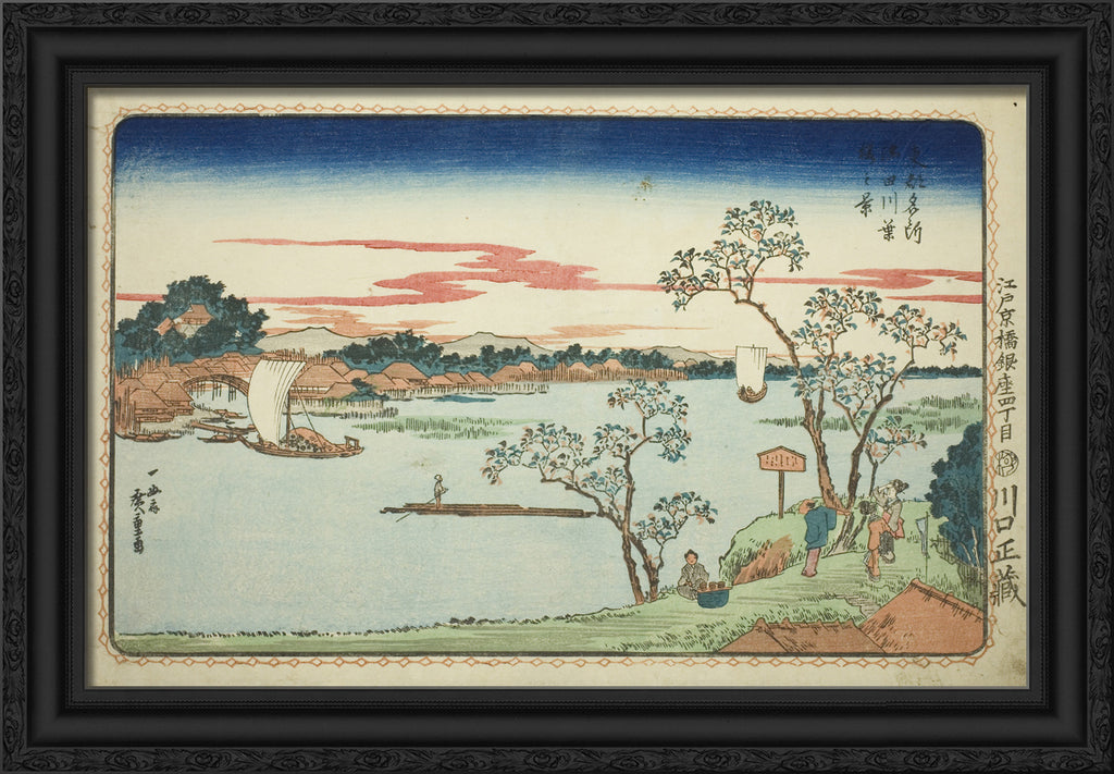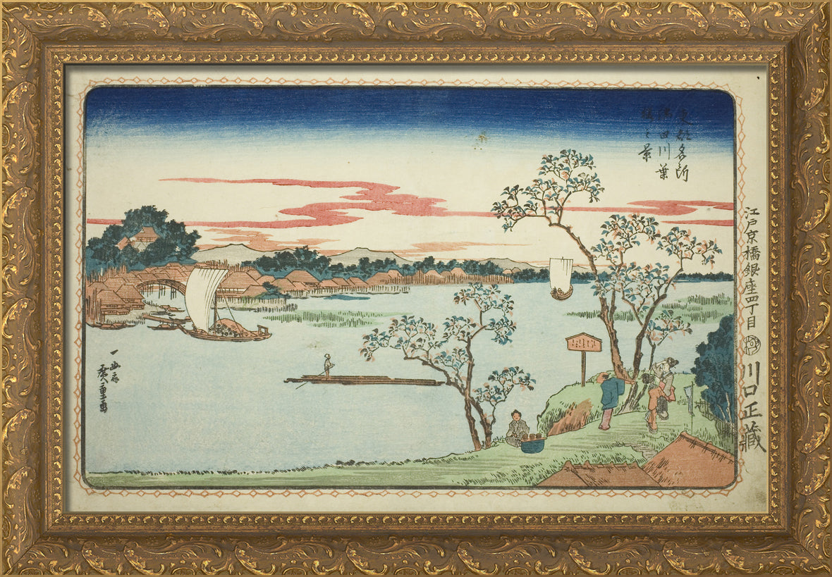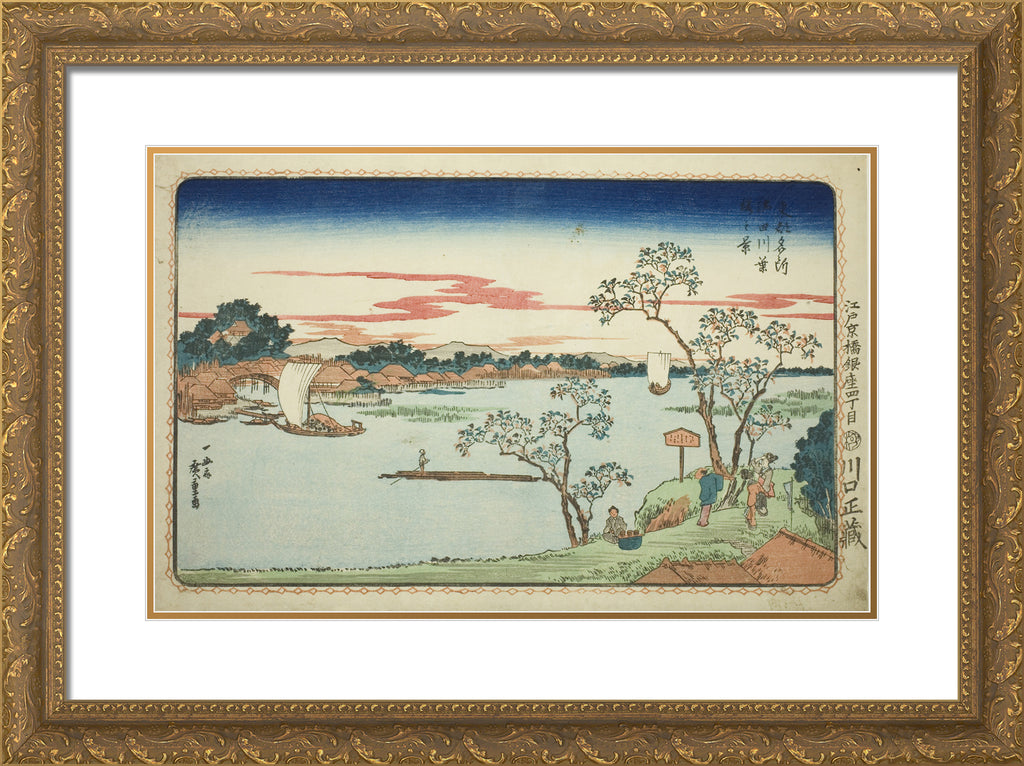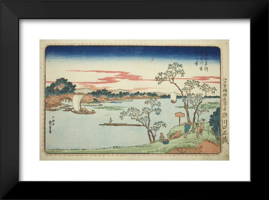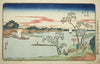 / View of Leafy Cherry Trees along the Sumida River (Sumidagawa hazakura no kei), from the series "Famous Views of the Eastern Capital (Toto Meisho)" by Utagawa Hiroshige