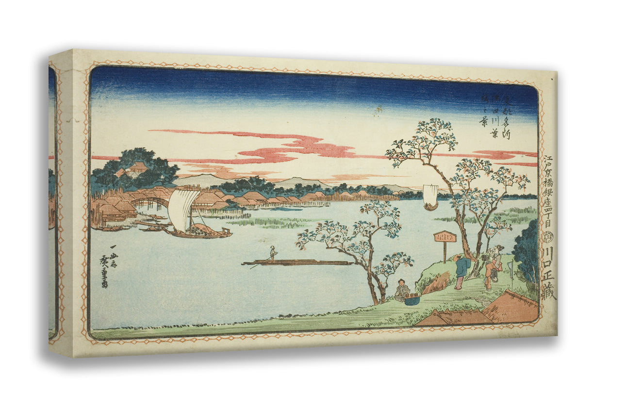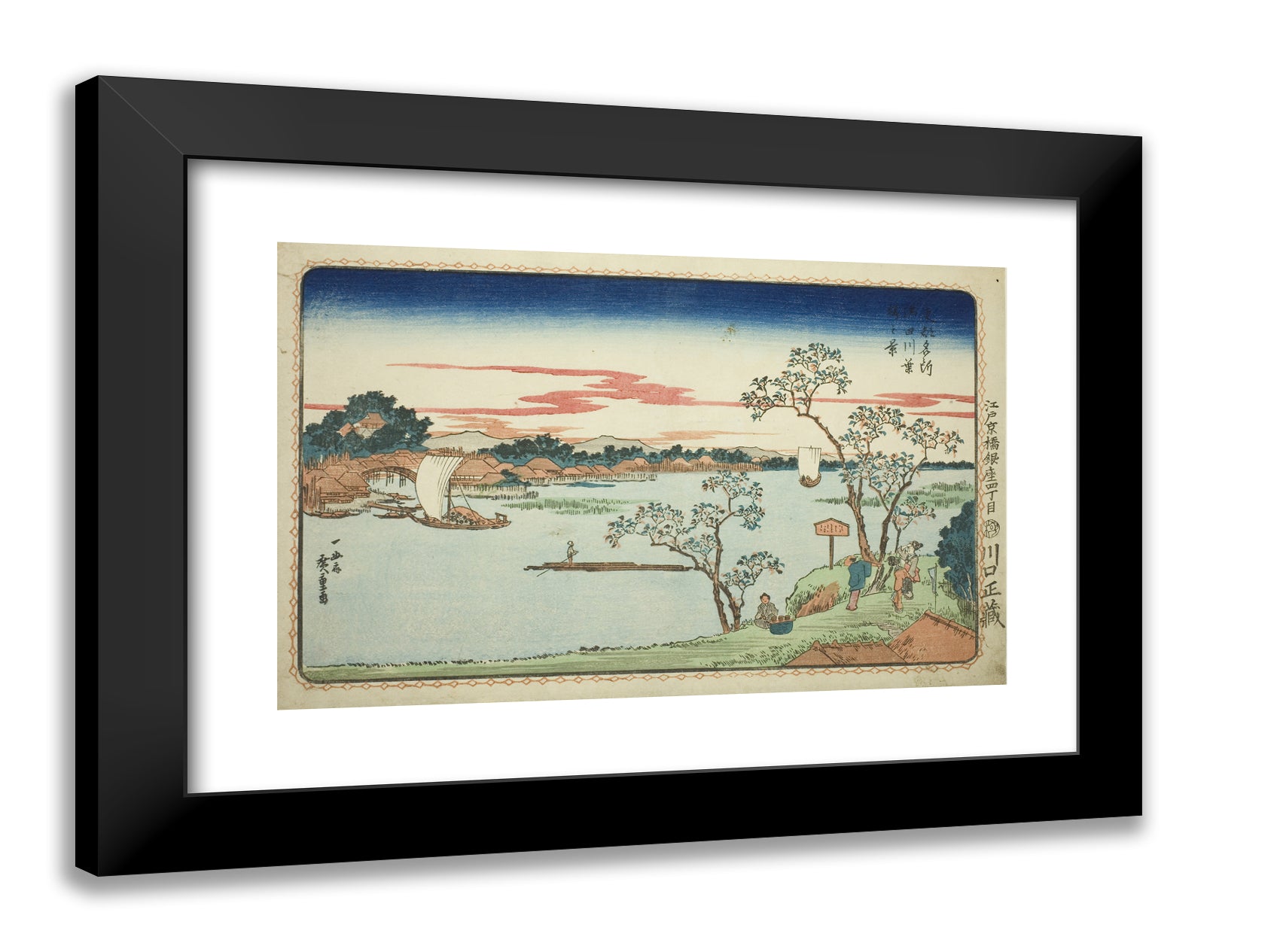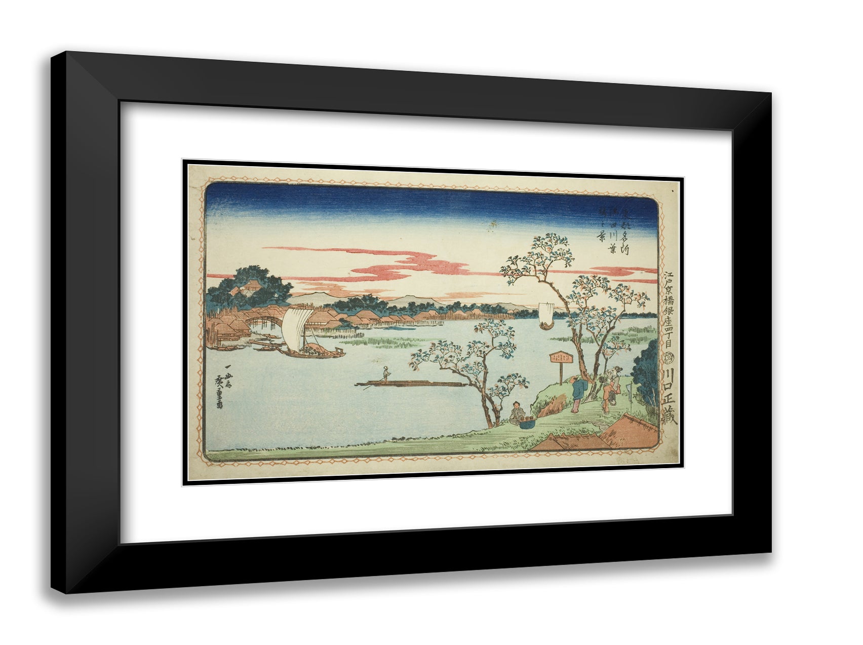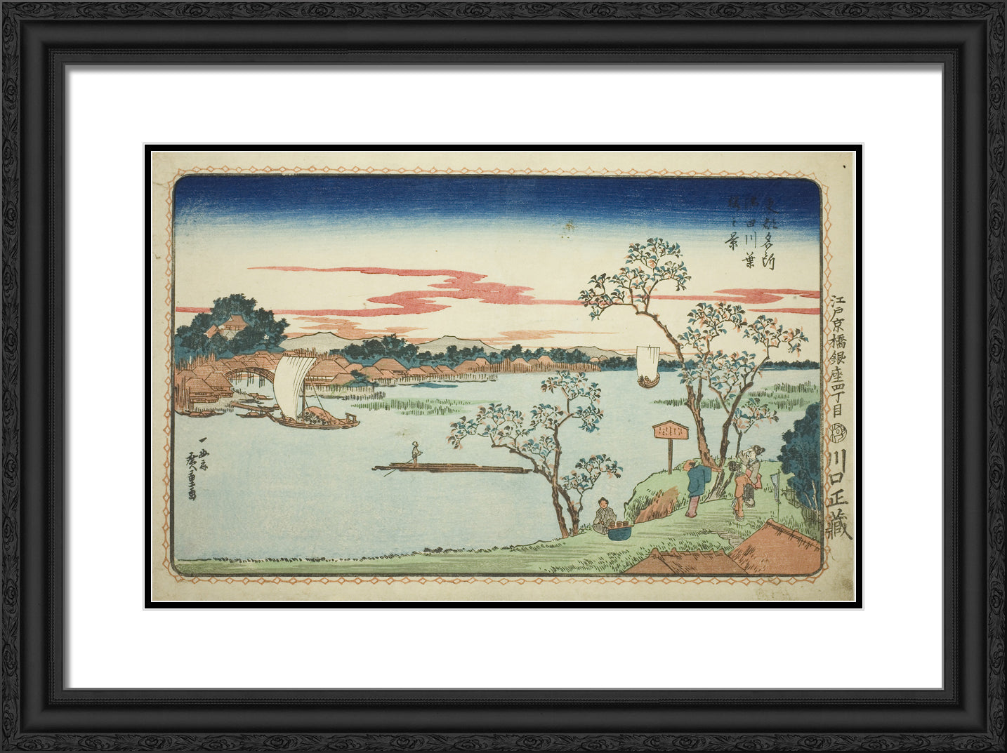 / View of Leafy Cherry Trees along the Sumida River (Sumidagawa hazakura no kei), from the series "Famous Views of the Eastern Capital (Toto Meisho)" by Utagawa Hiroshige