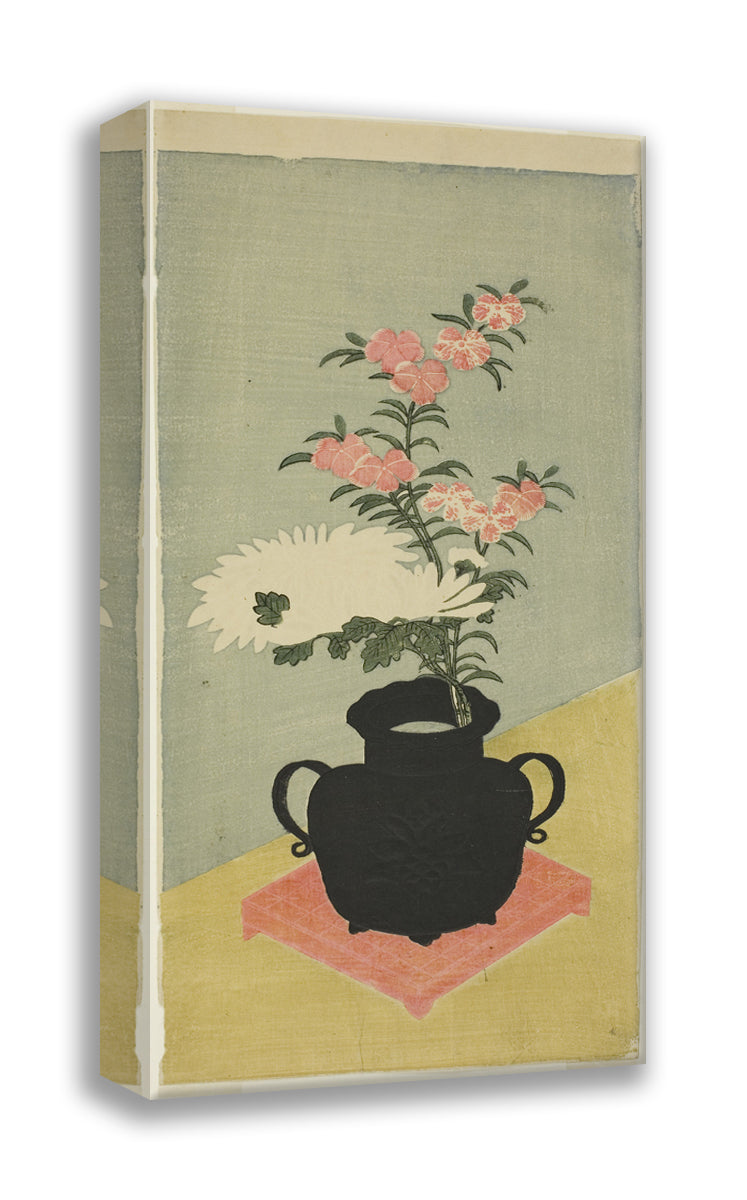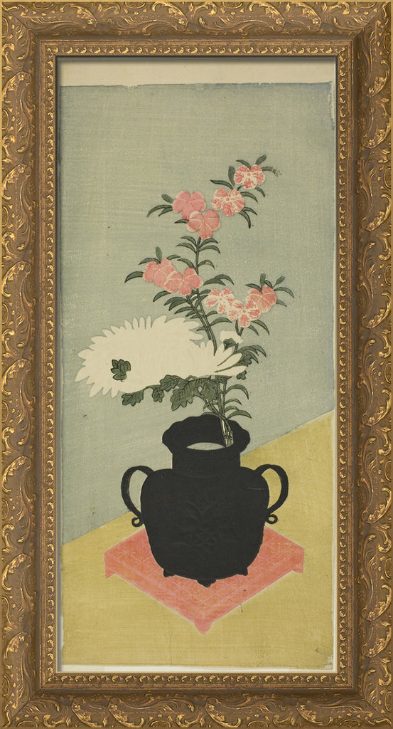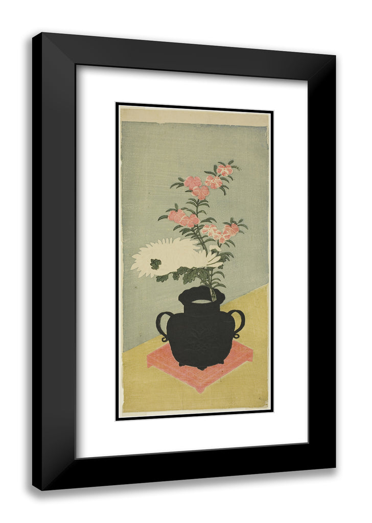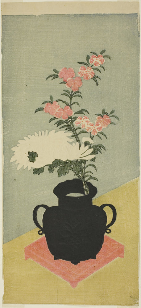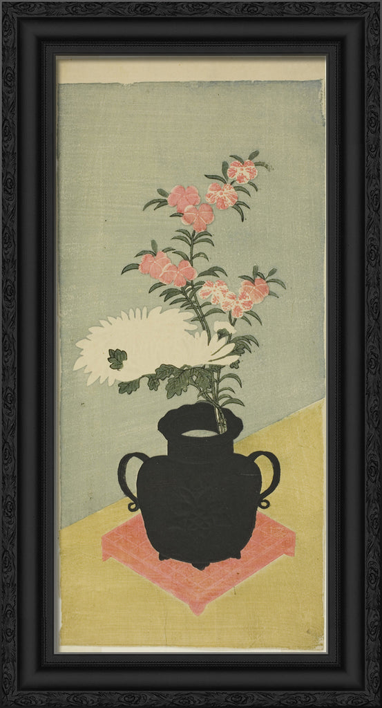• White Chrysanthemums and Pinks in a Black Vase by Ippitsusai Buncho