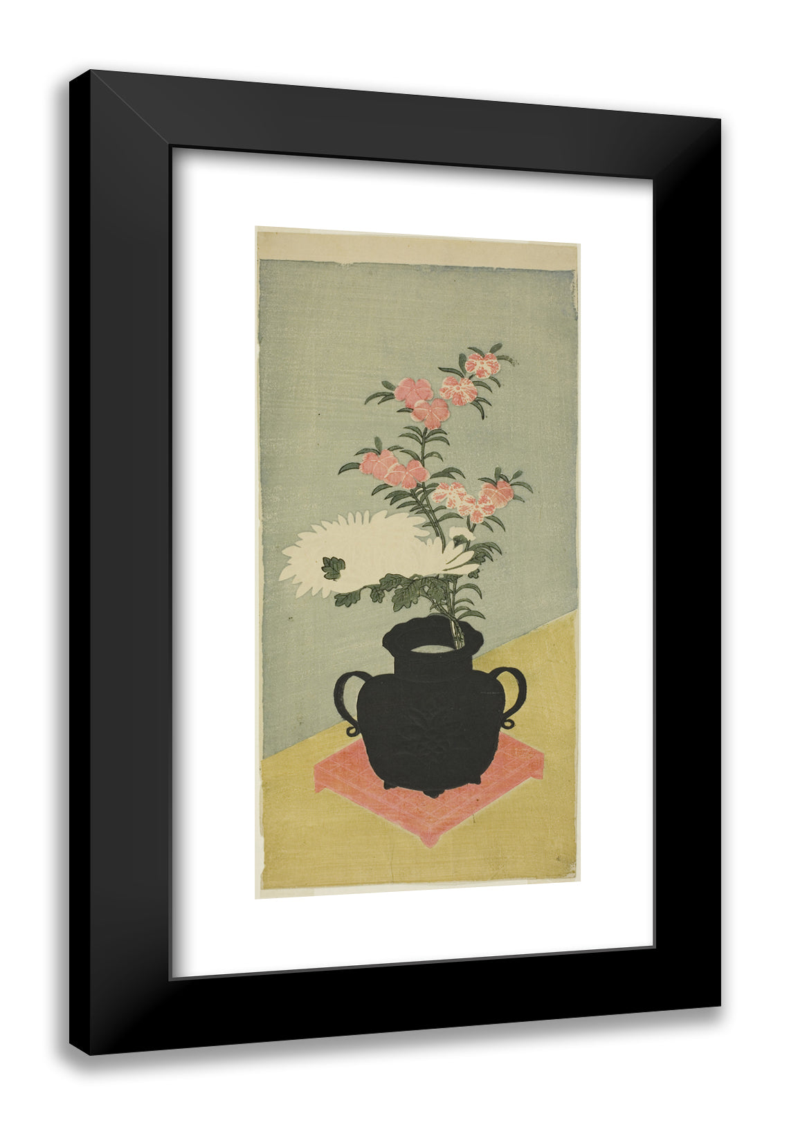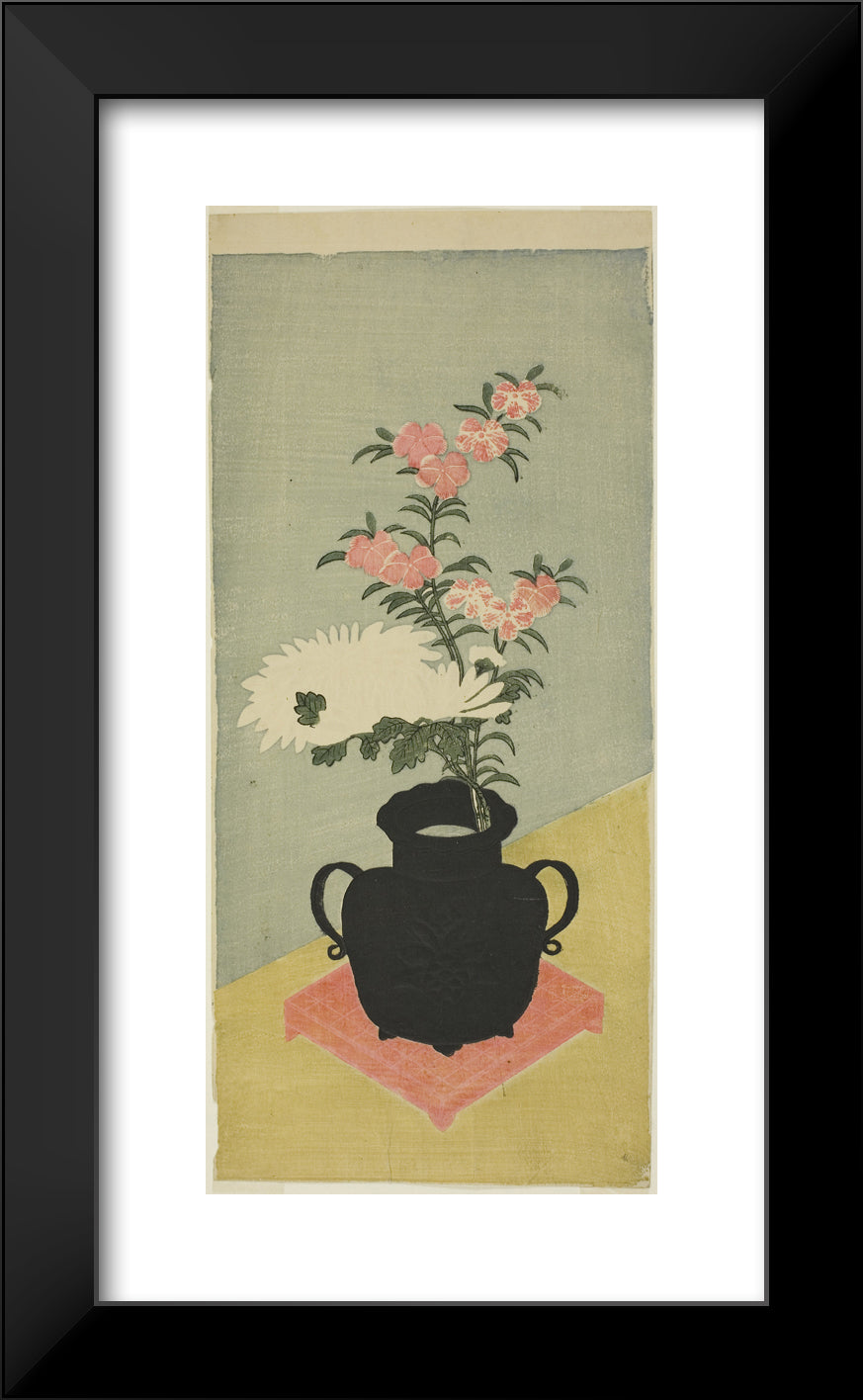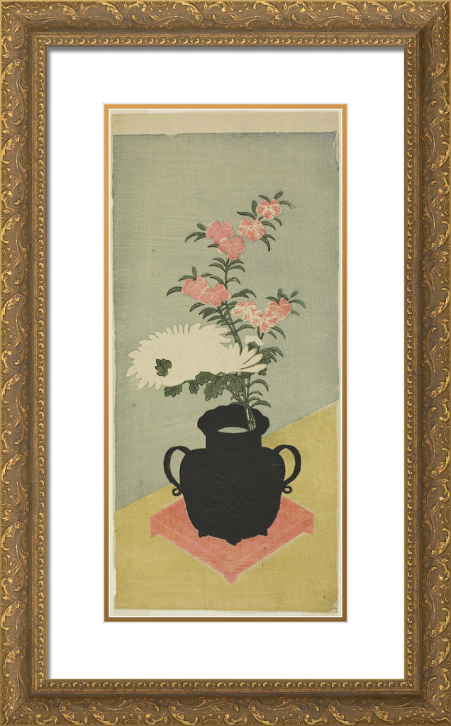 • White Chrysanthemums and Pinks in a Black Vase by Ippitsusai Buncho