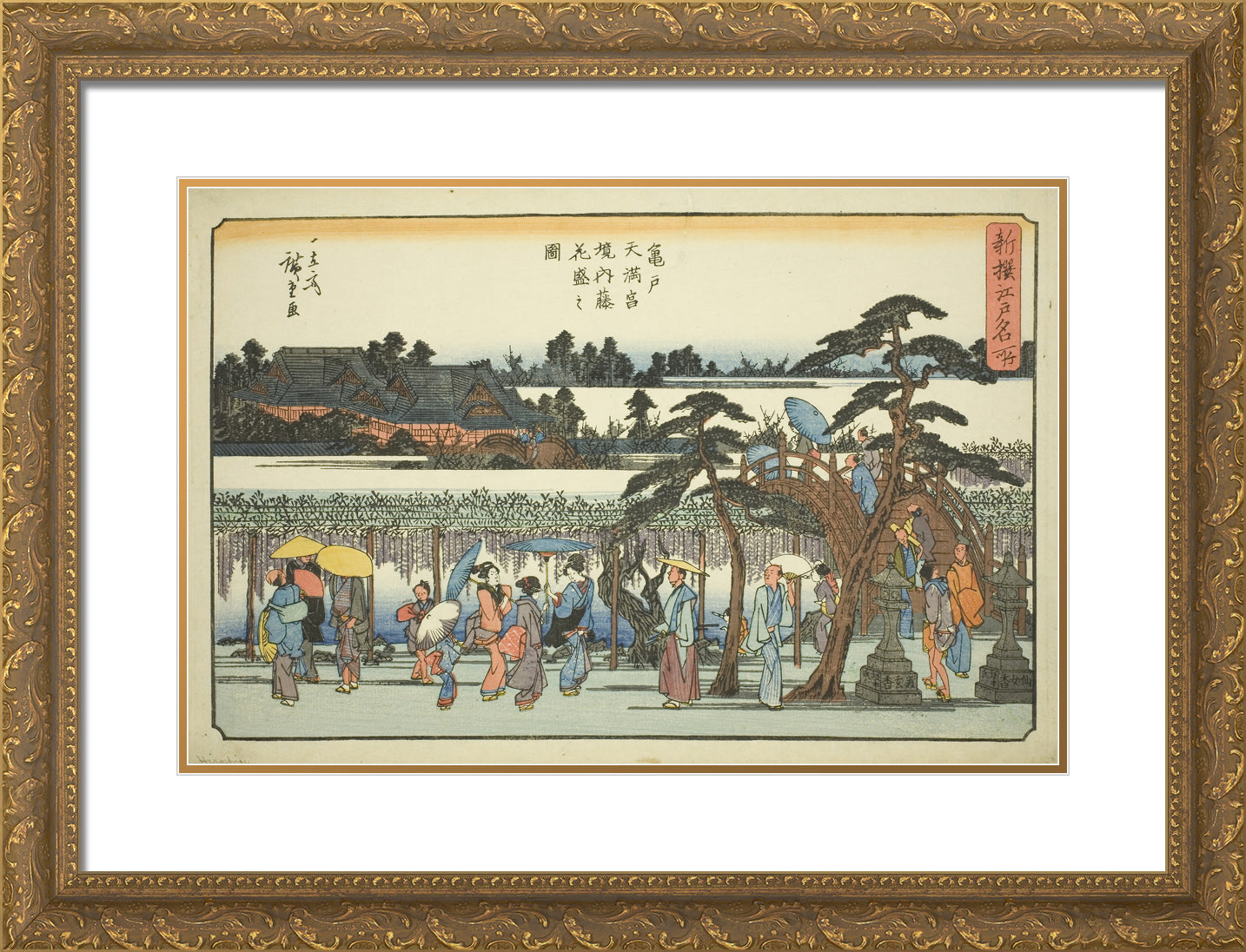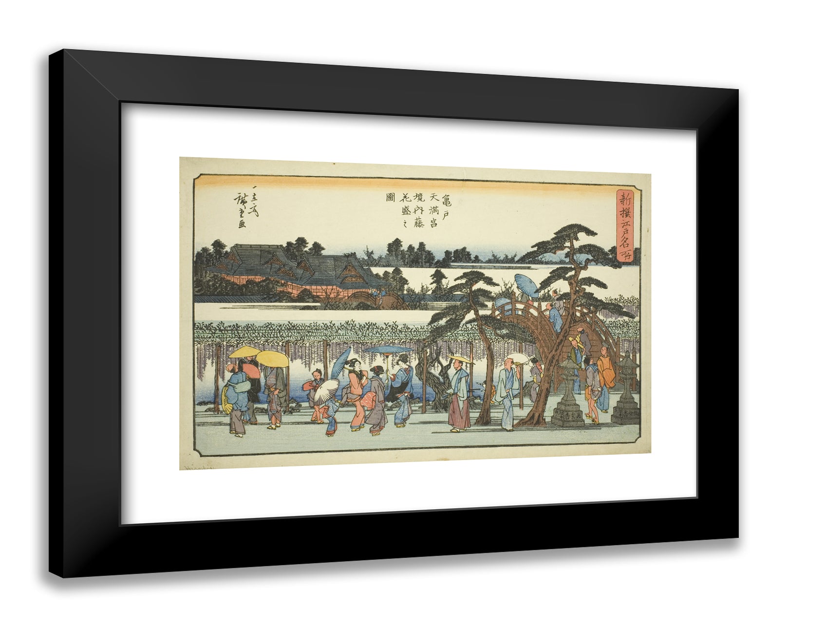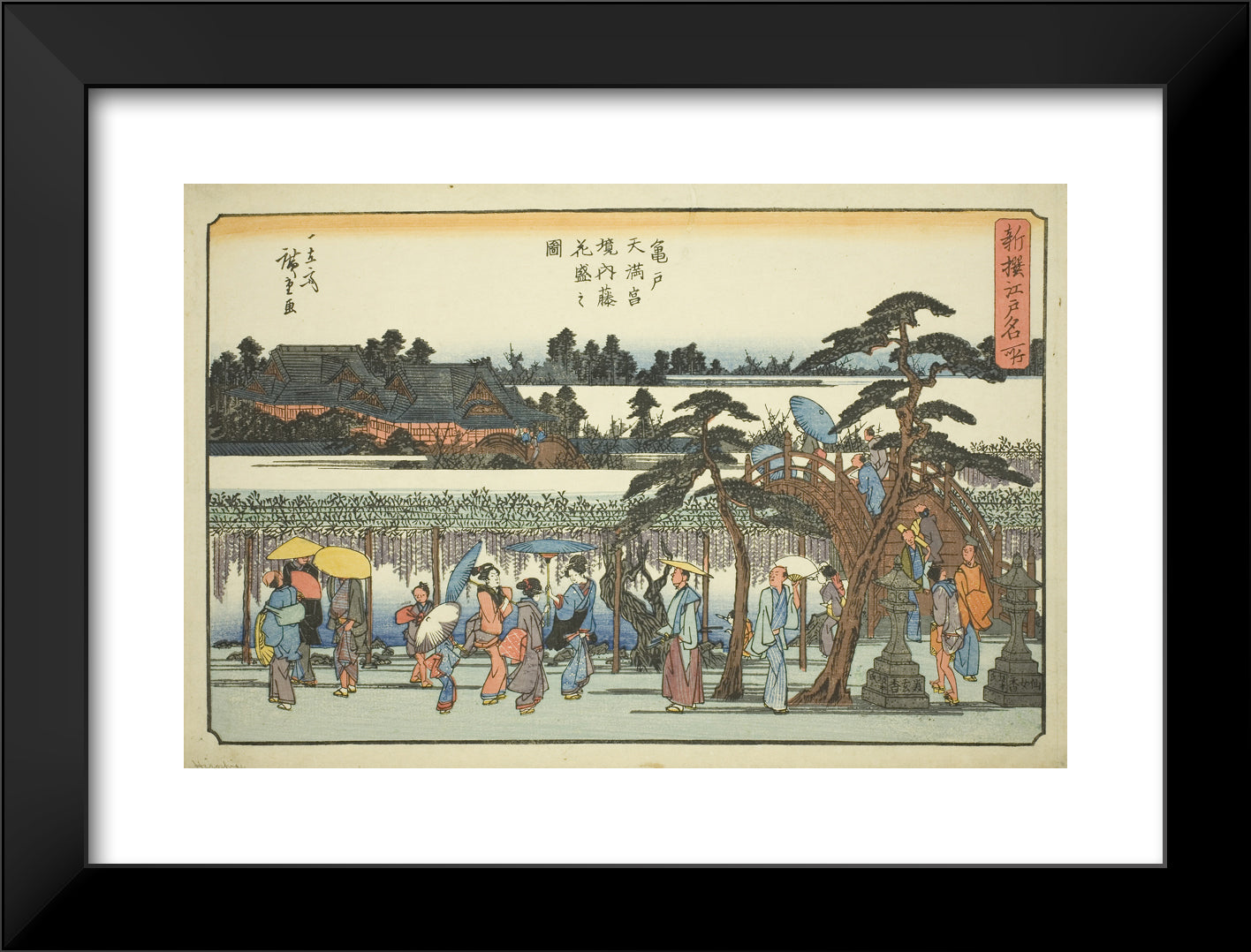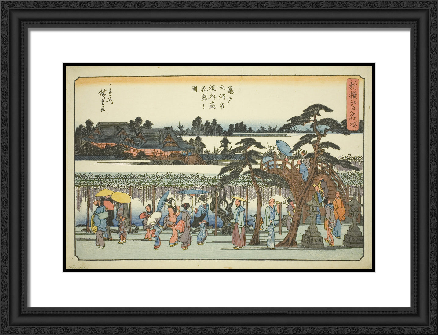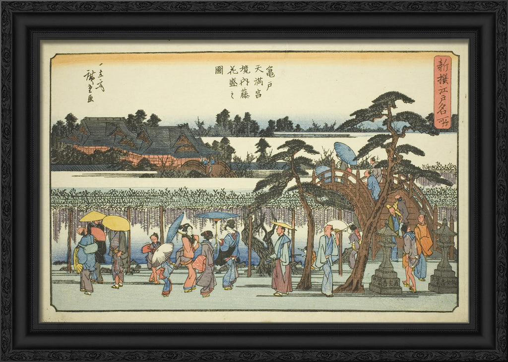 • Wisteria in Full Bloom in the Precincts of the Kameido Tenmangu Shrine (Kameido Tenmangu keidai fuji hanazakari no zu), from the series "Newly Selected Famous Places in Edo (Shinsen Edo meisho)" by Utagawa Hiroshige