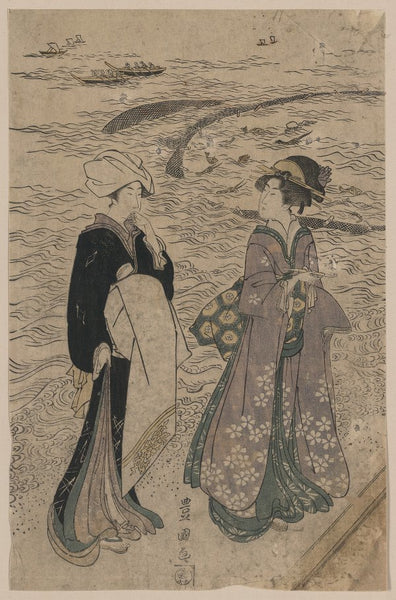 Toyokuni Utagawa Three Women and Two Children by the Water (Ships in Background) (Late 18th Century - Early 19th Century) from $9.99