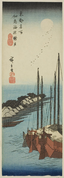 MuseumPrints Misty Moonlight on the Shore at Tsukuda Island (Tsukudajima kaihen oborozuki), from the series "Famous Places in the Eastern Capital (Toto meisho)" by Utagawa Hiroshige from $49.99 $64.99