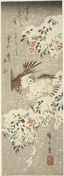 MuseumPrints Sparrows Flitting about Snow-covered Nandina as More Snow Falls by Utagawa Hiroshige from $49.99 $64.99