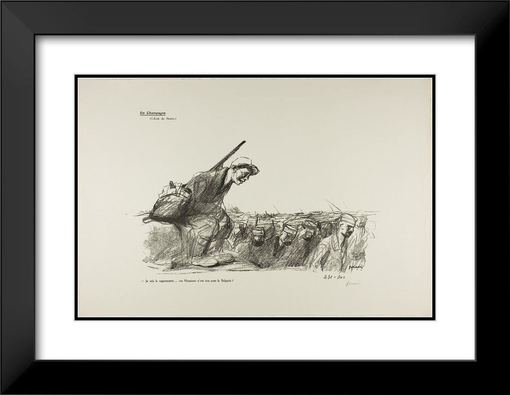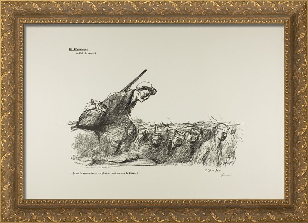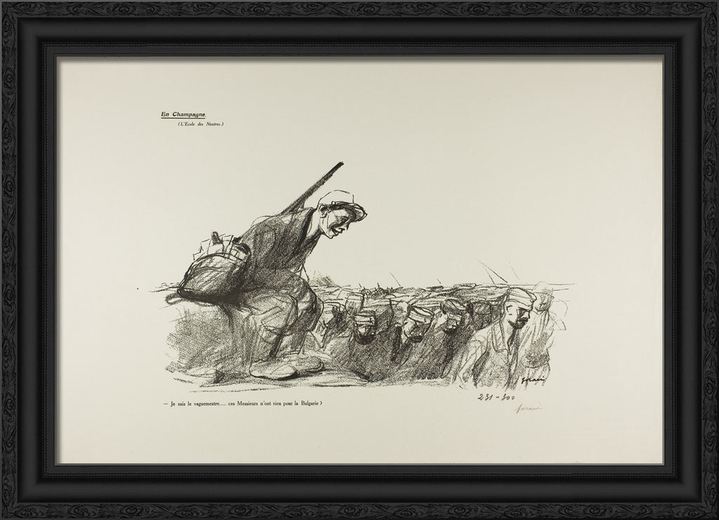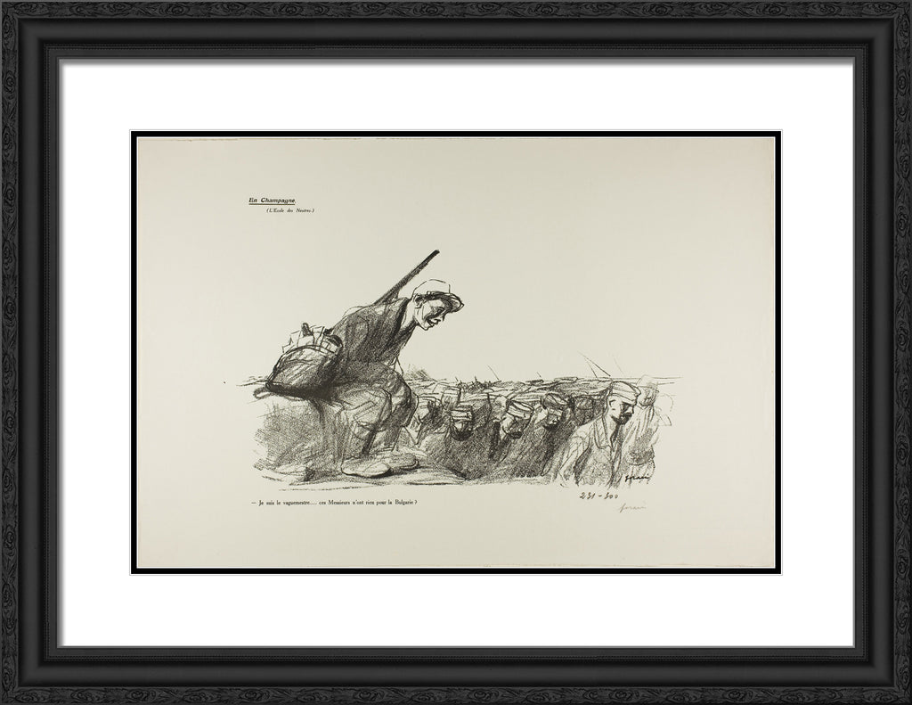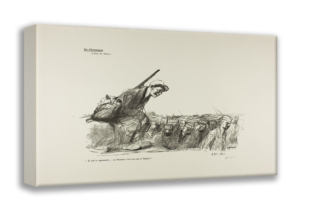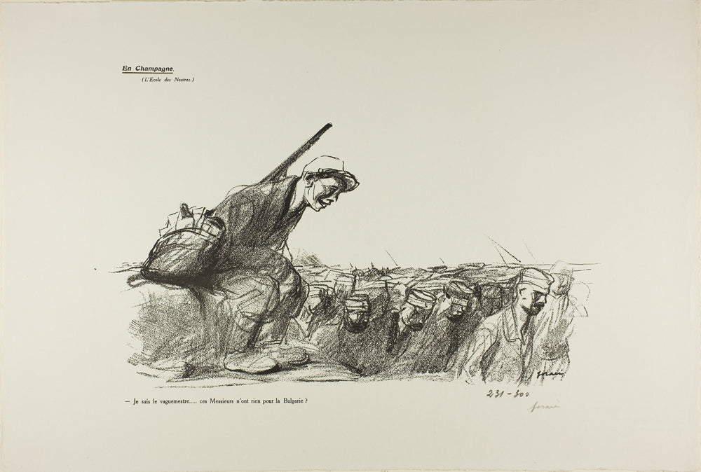 / No. 44: En Champagne (L'Ecole des Neutres). - Je suis le vaguemestre...ces Messieurs n'ont rien pour la Bulgarie? by Jean Louis Forain
