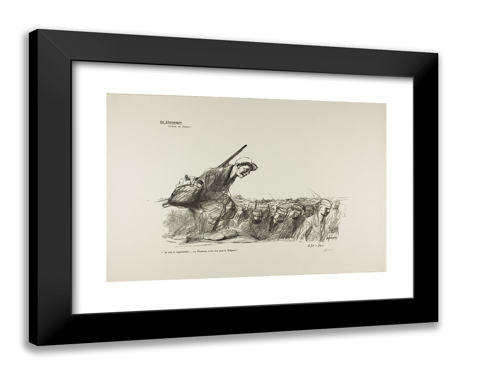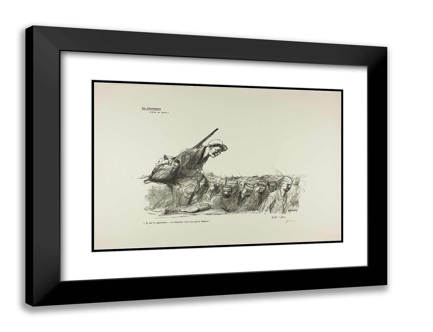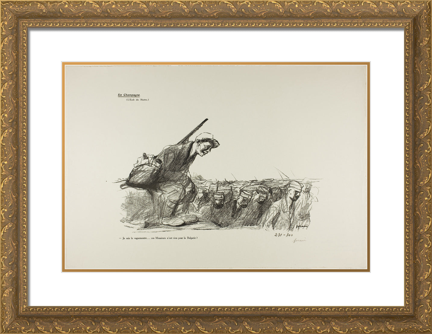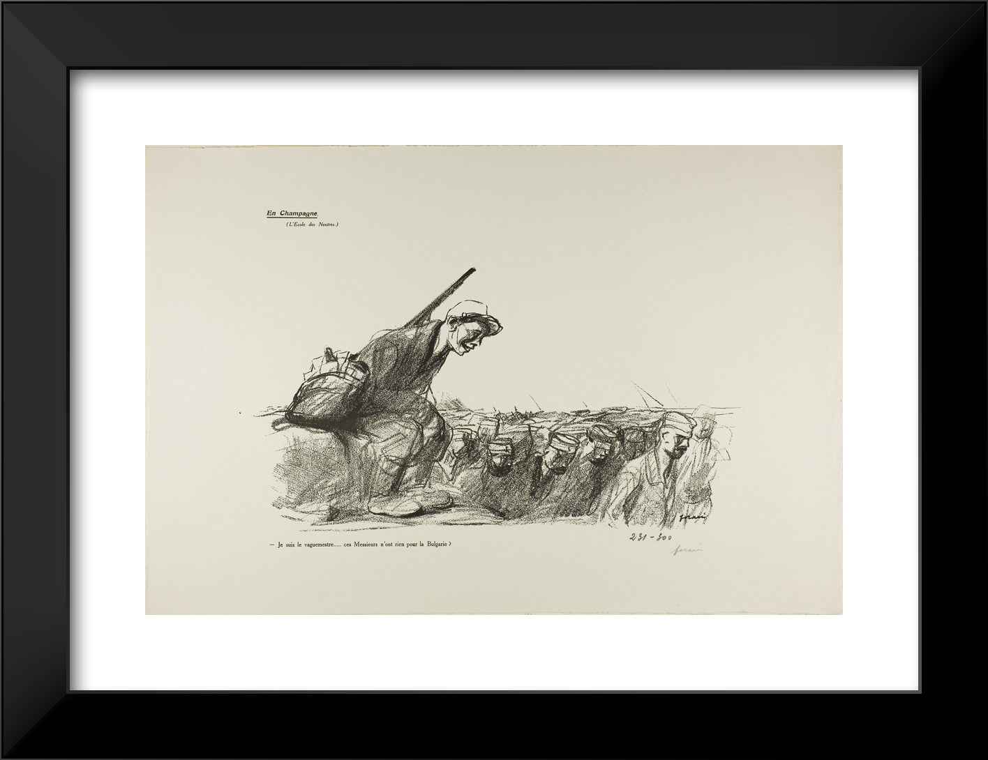 / No. 44: En Champagne (L'Ecole des Neutres). - Je suis le vaguemestre...ces Messieurs n'ont rien pour la Bulgarie? by Jean Louis Forain
