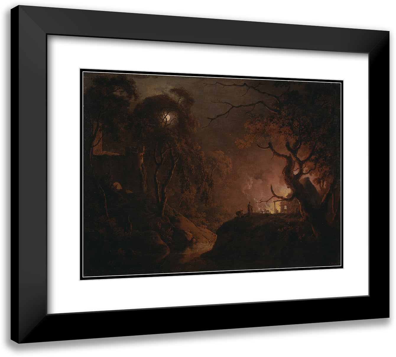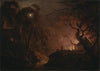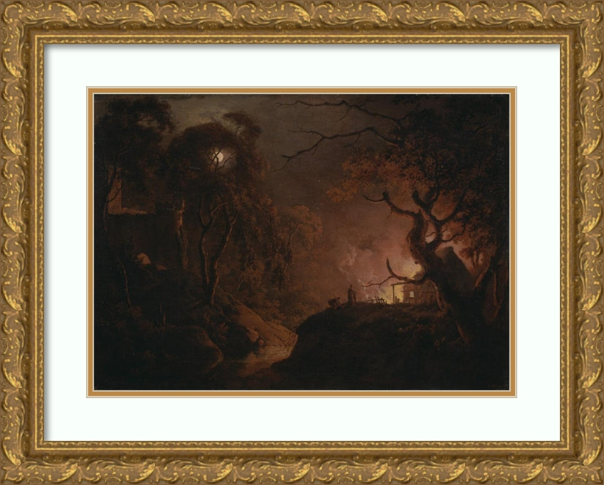 Cottage on Fire at Night