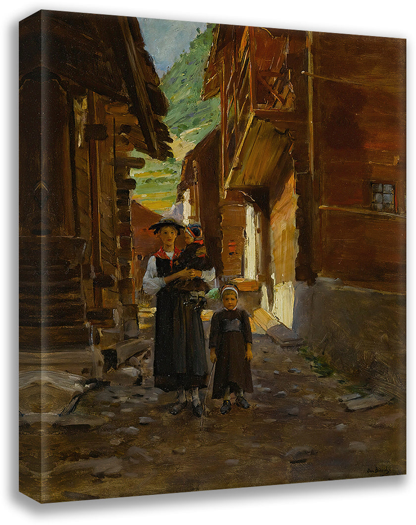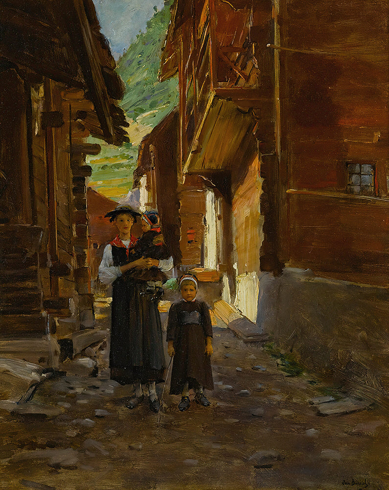 Young Woman and Children in a Mountain Landscape