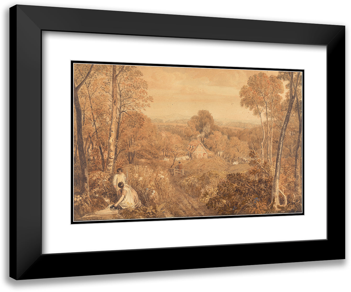 / Wooded Landscape with Cottages and Countrywomen, Hurley, Berkshire (1818)