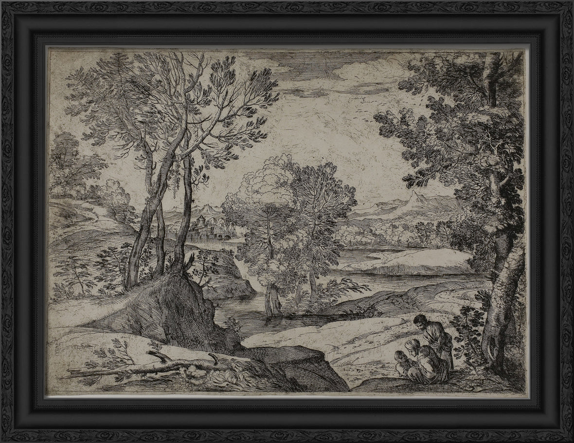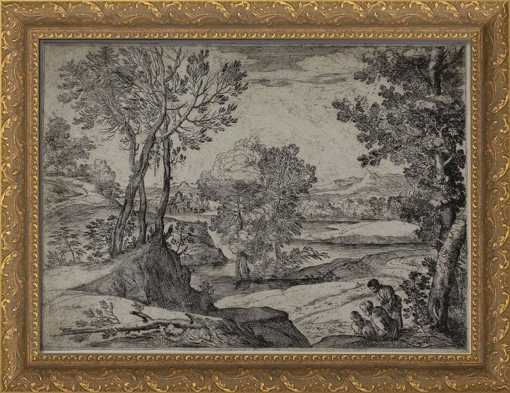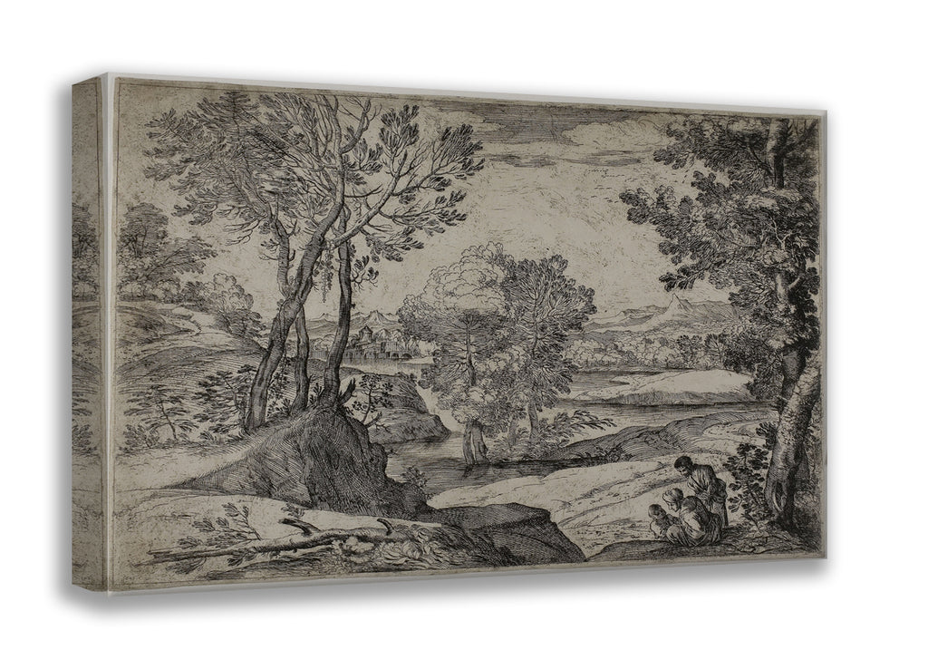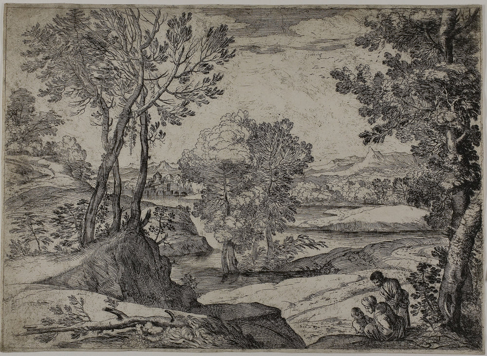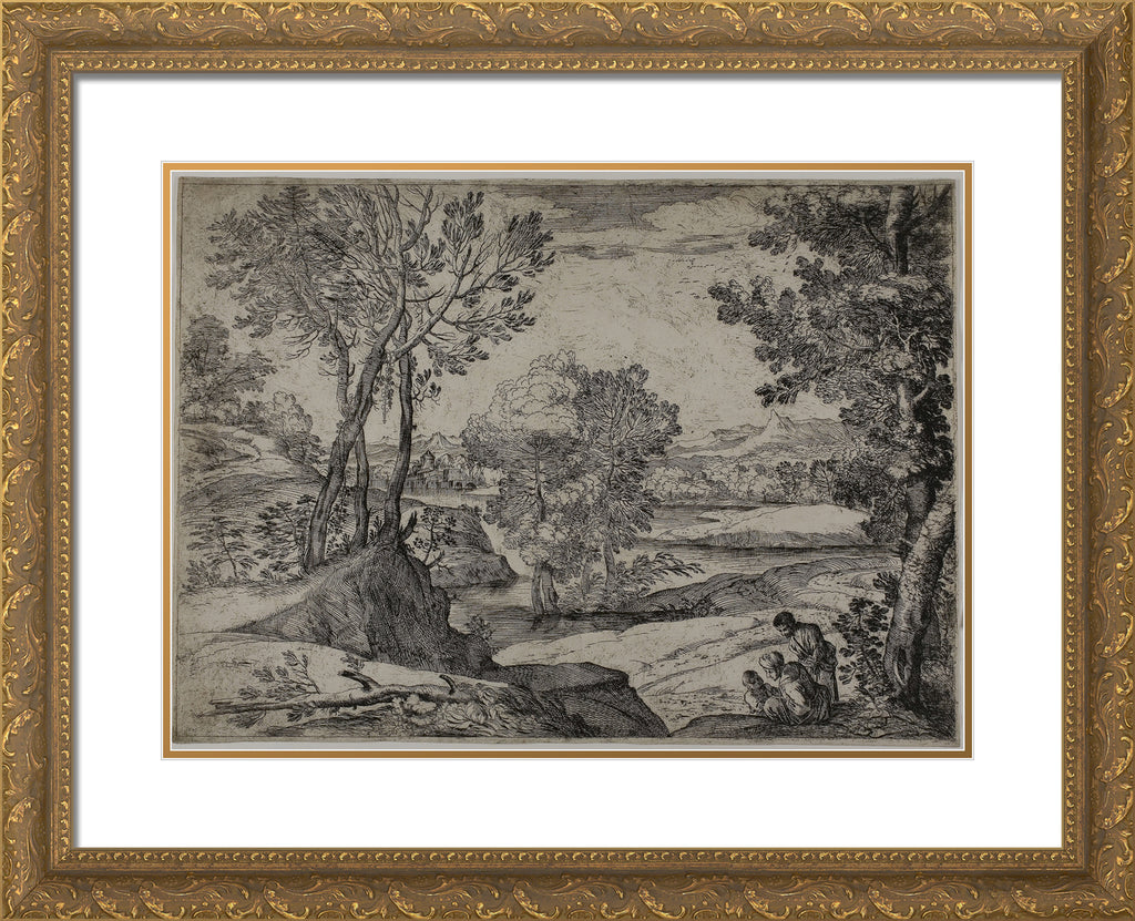 / Woman, Her Child, and a Standing Man in a Landscape by Giovanni Francesco Grimaldi