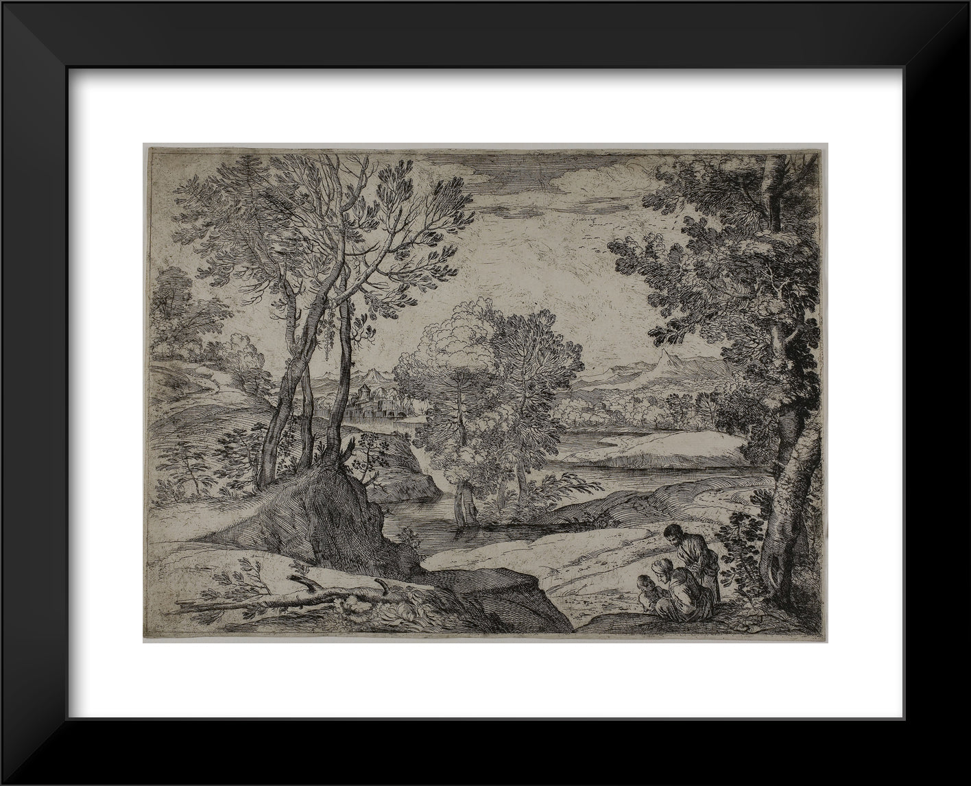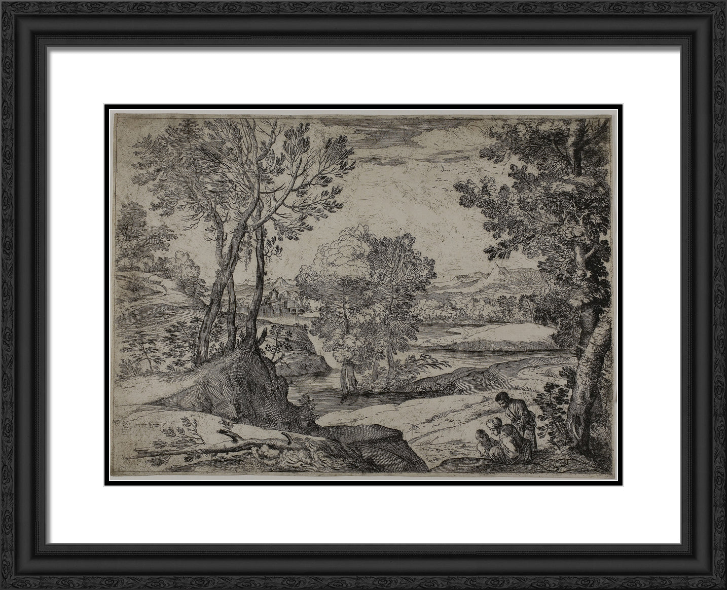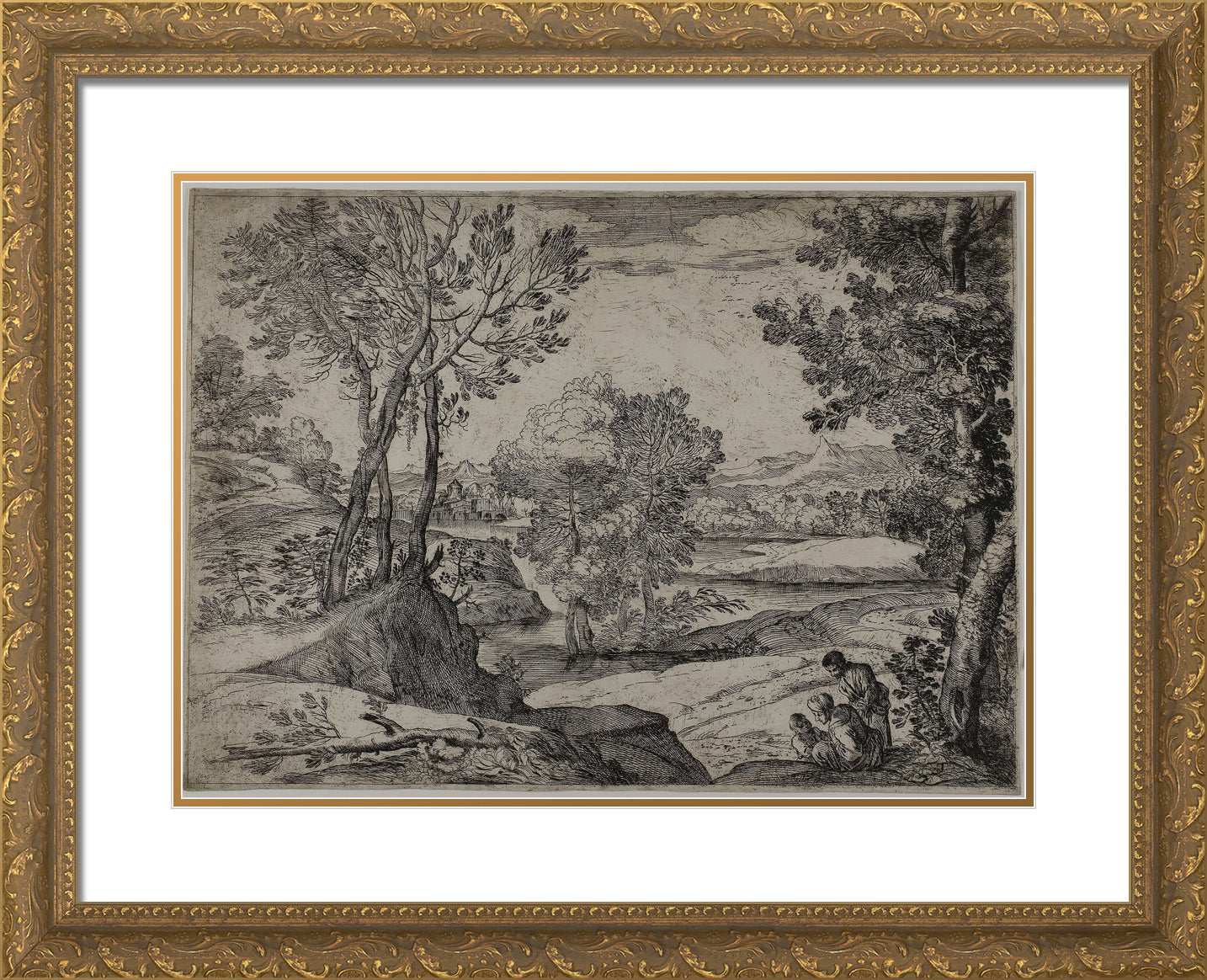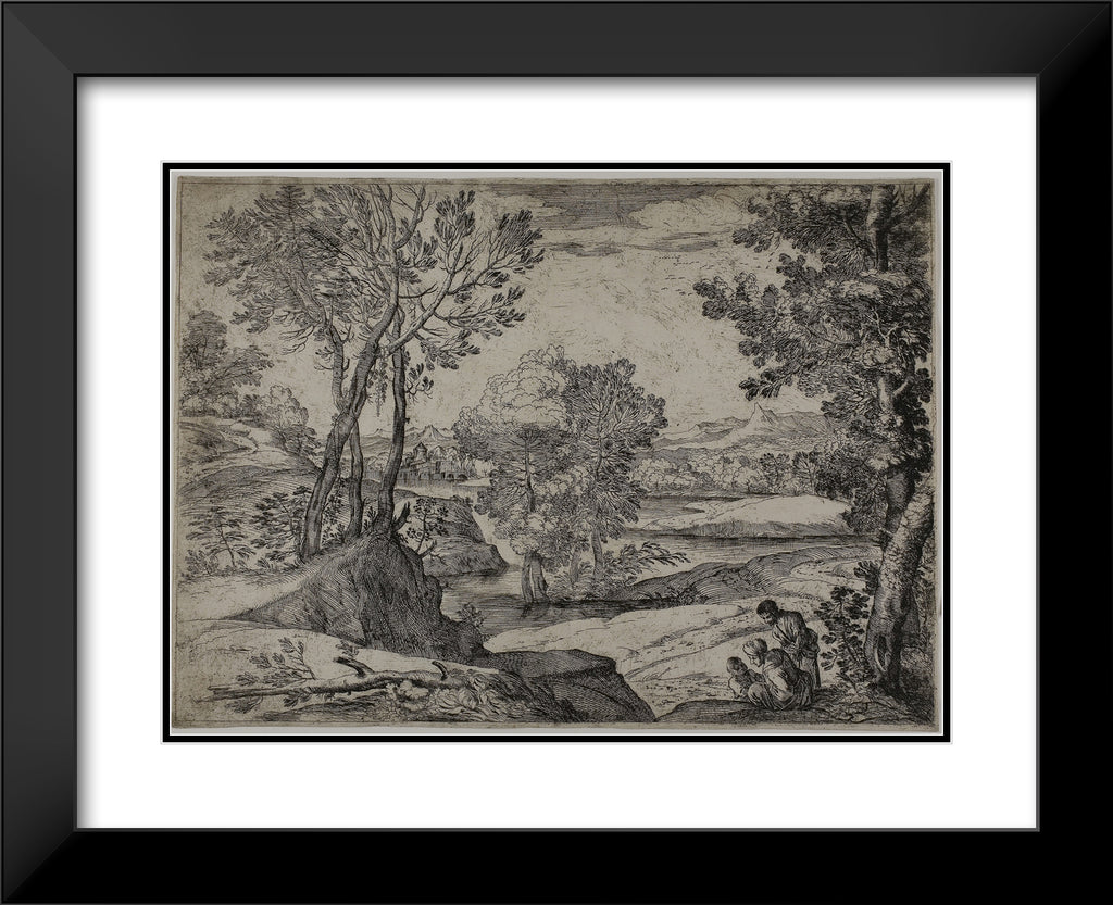 / Woman, Her Child, and a Standing Man in a Landscape by Giovanni Francesco Grimaldi