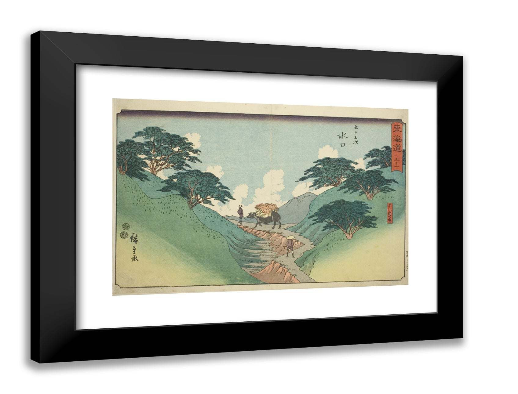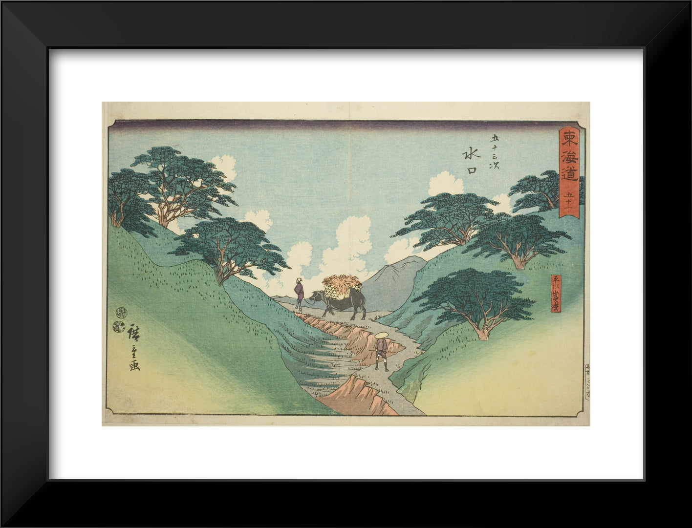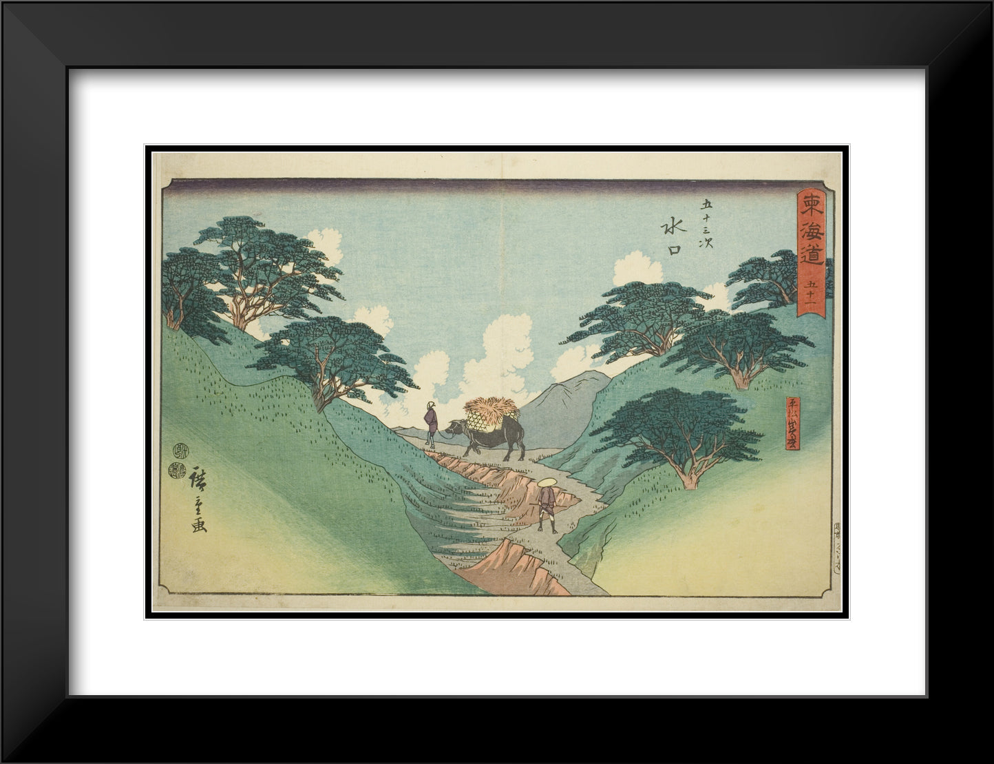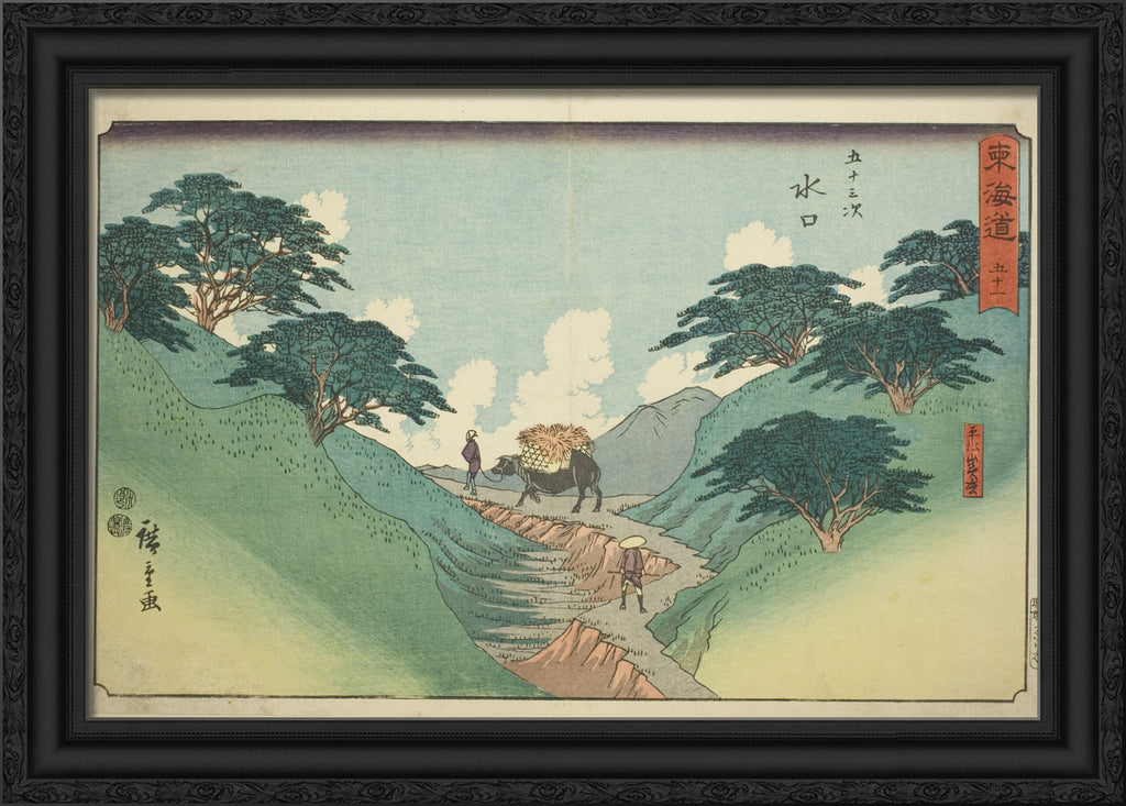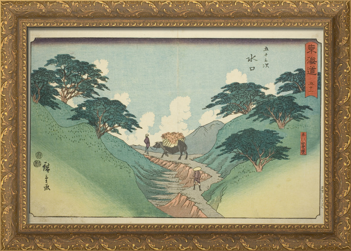 / Minakuchi: The Beautiful Pine Trees at Mount Hiramatsu (Minakuchi, Hiramatsuyama bisho)No. 51, from the series "Fifty-three Stations of the Tokaido (Tokaido gojusan tsugi)," also known as the Reisho Tokaido by Utagawa Hiroshige
