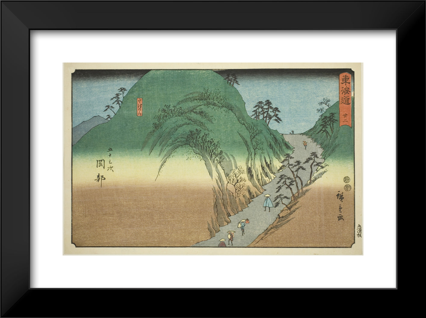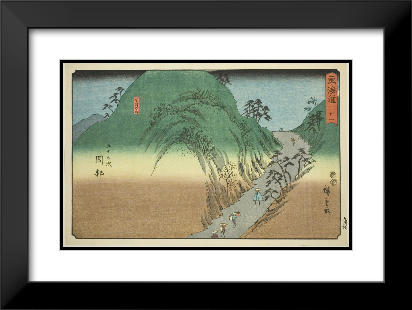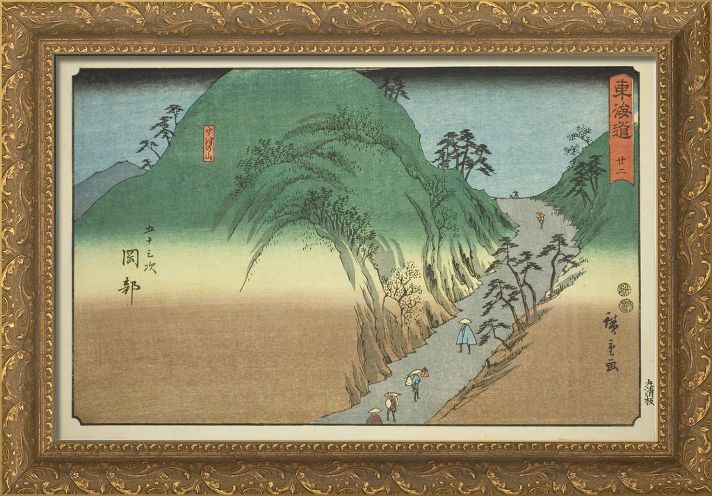 / Okabe: Mount Utsu (Okabe, Utsunoyama)No. 22, from the series "Fifty-three Stations of the Tokaido (Tokaido gojusan tsugi)," also known as the Reisho Tokaido by Utagawa Hiroshige