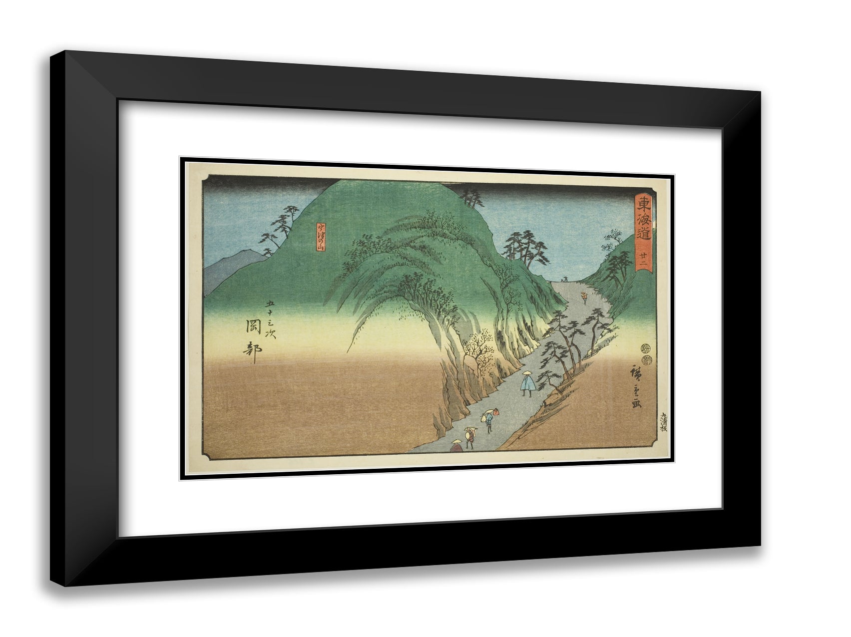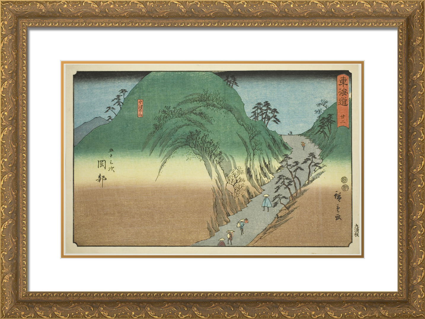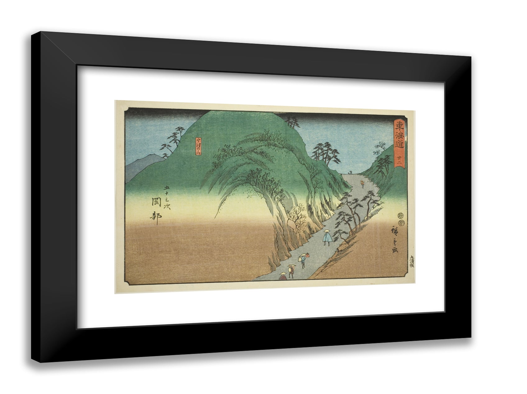 / Okabe: Mount Utsu (Okabe, Utsunoyama)No. 22, from the series "Fifty-three Stations of the Tokaido (Tokaido gojusan tsugi)," also known as the Reisho Tokaido by Utagawa Hiroshige