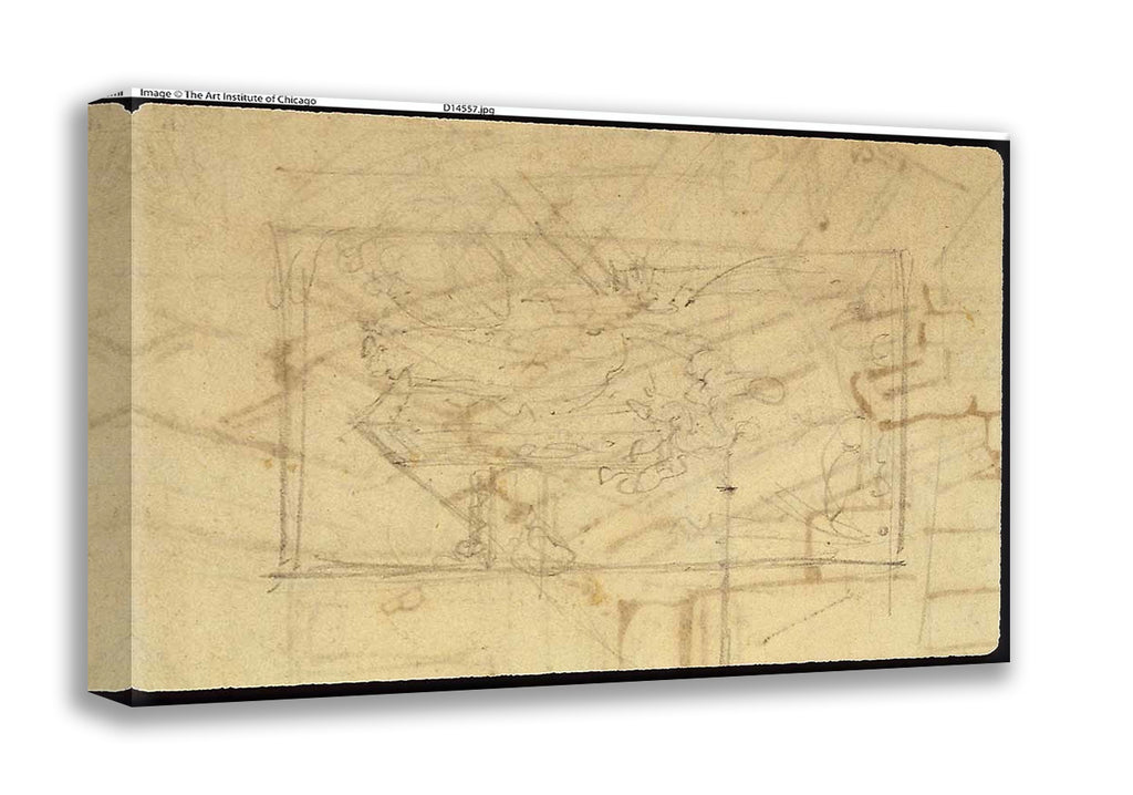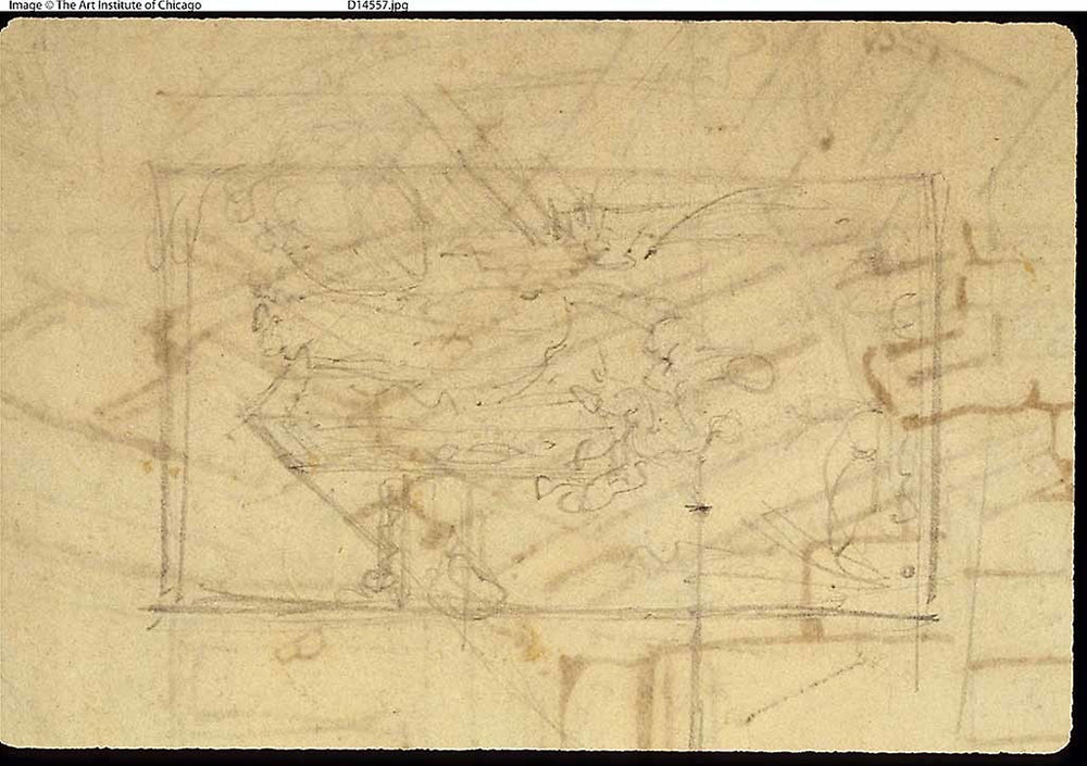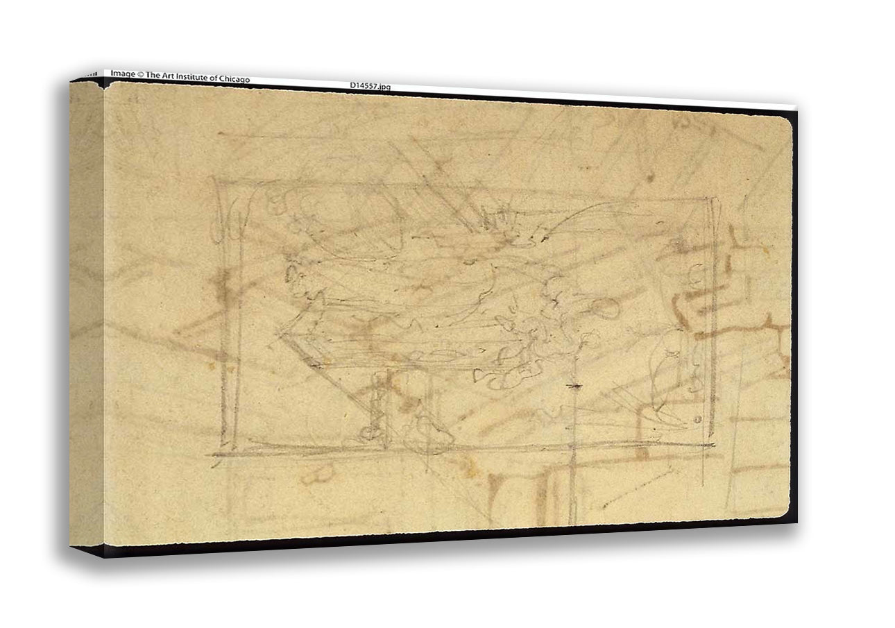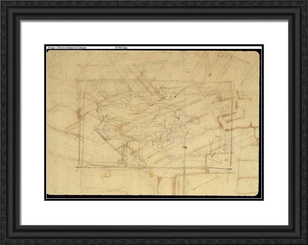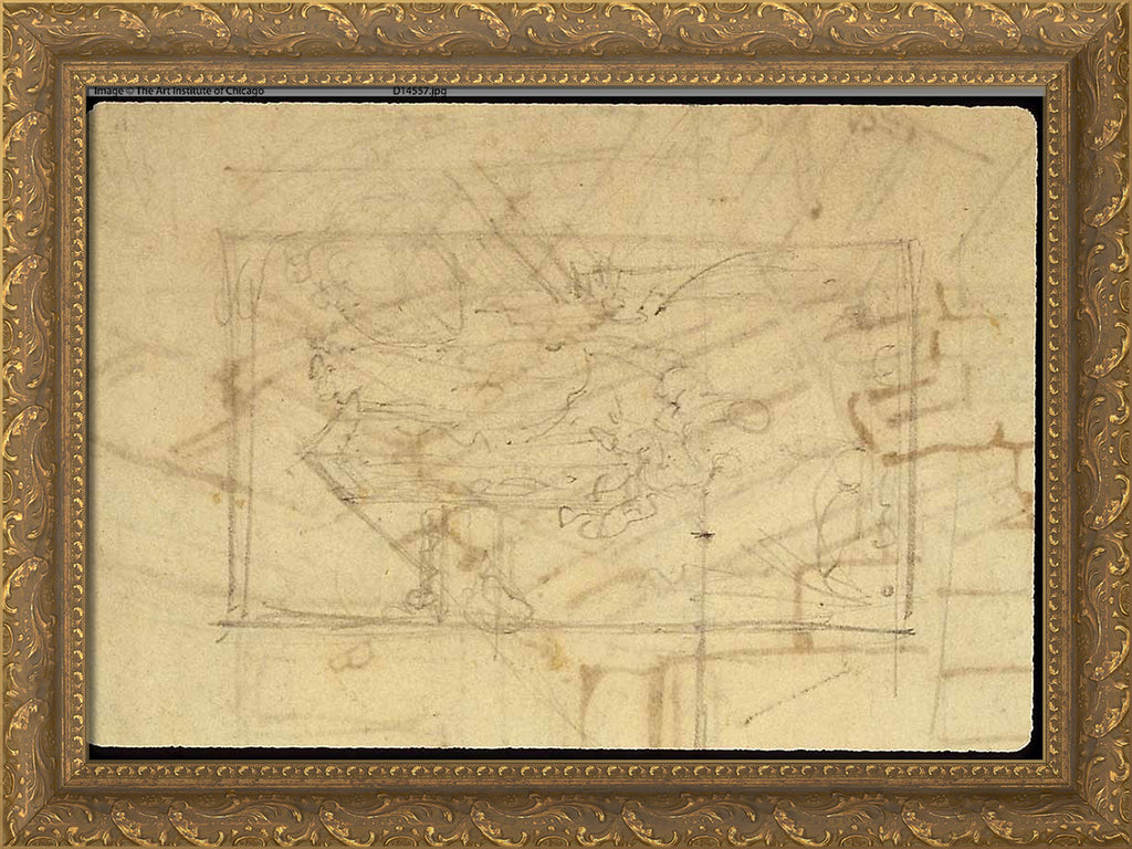 / Study for Exhibition Room, Somerset House, from Microcosm of London (recto); Sketch of a Painting: Madonna and Child (verso) by Augustus Charles Pugin