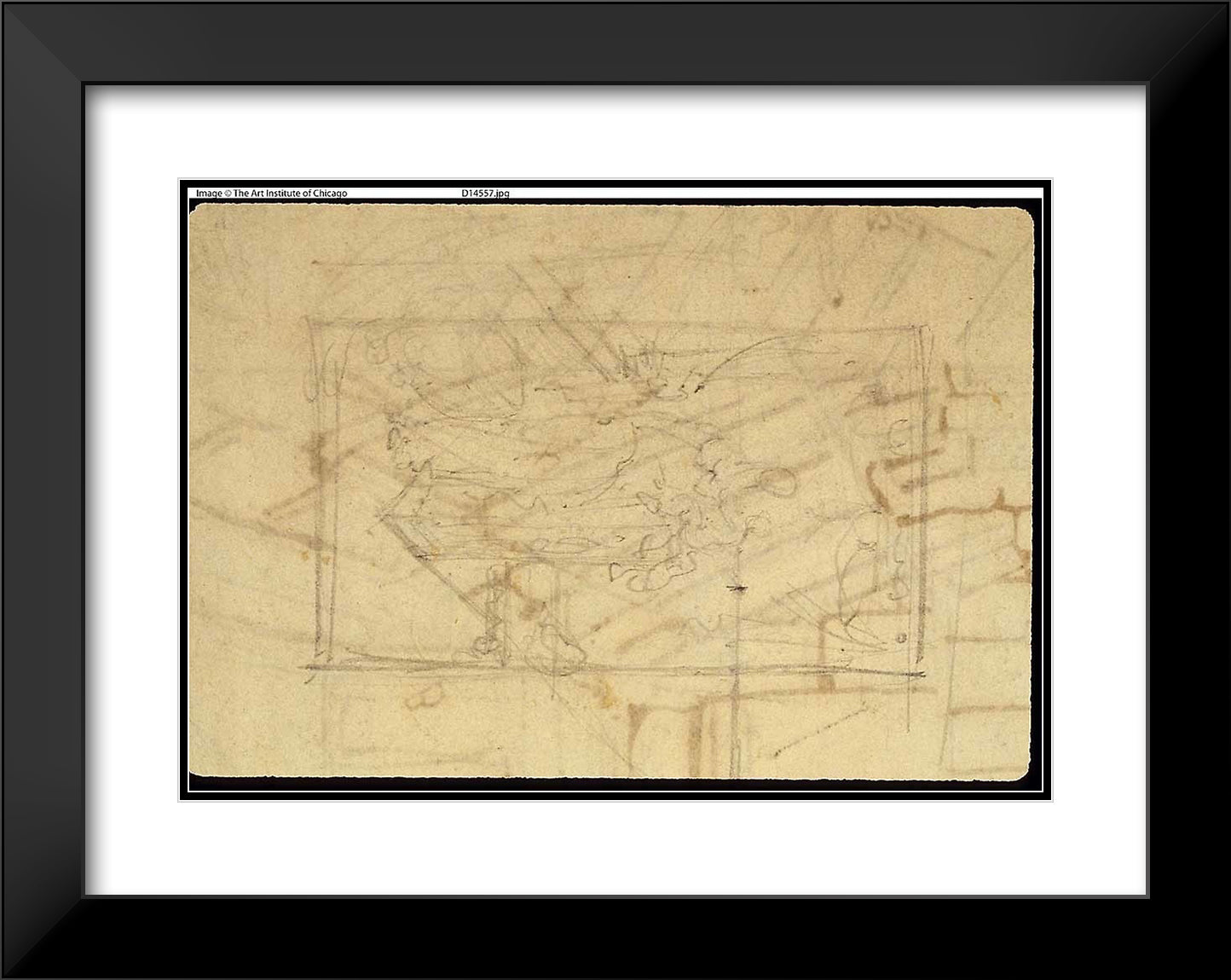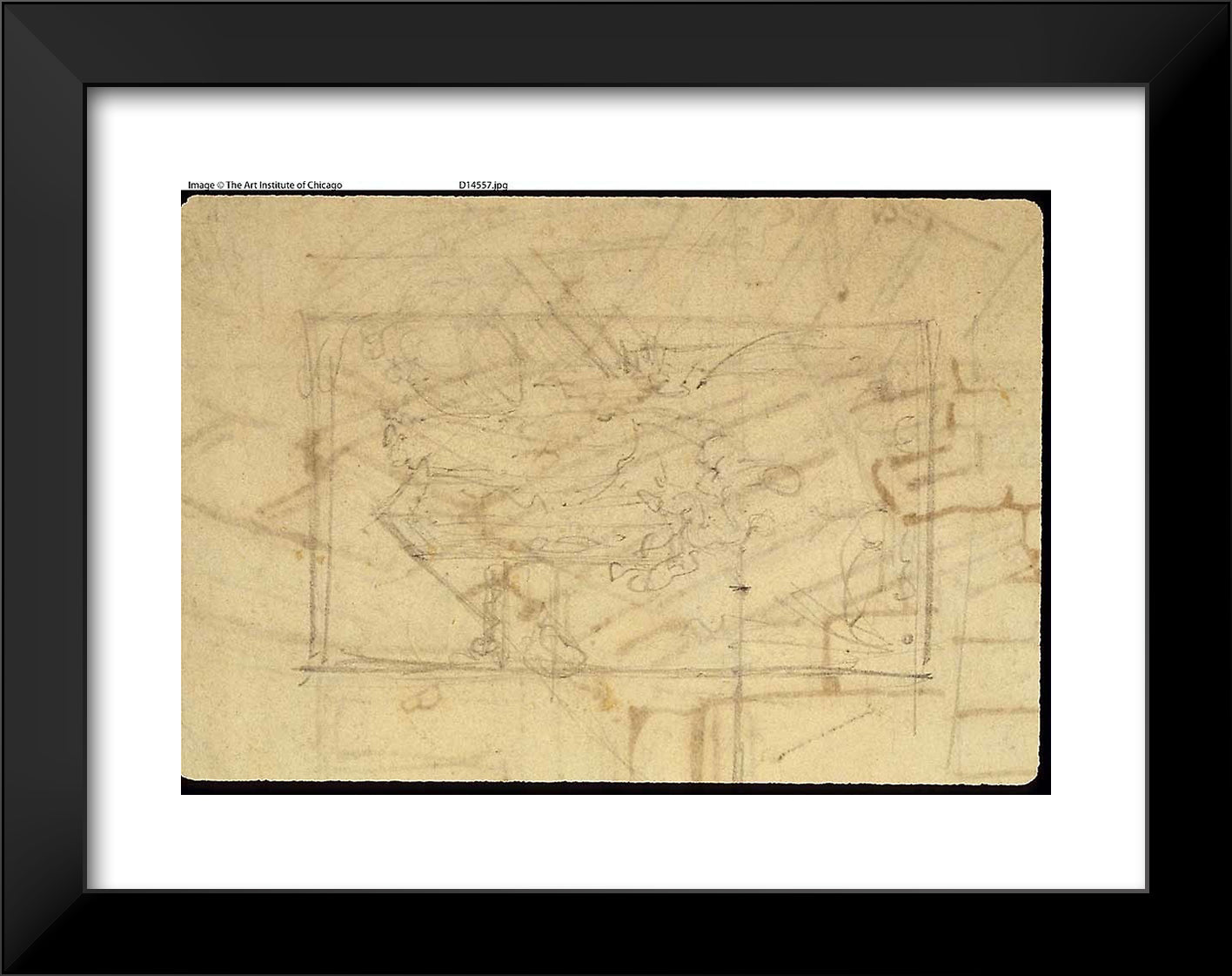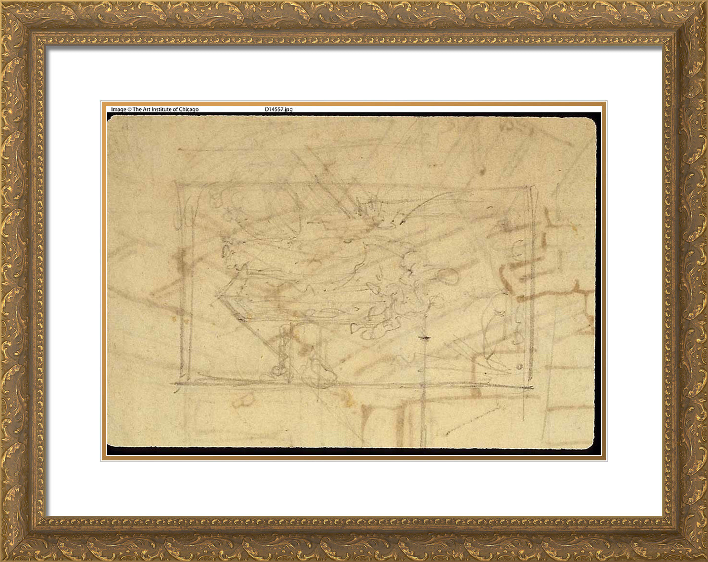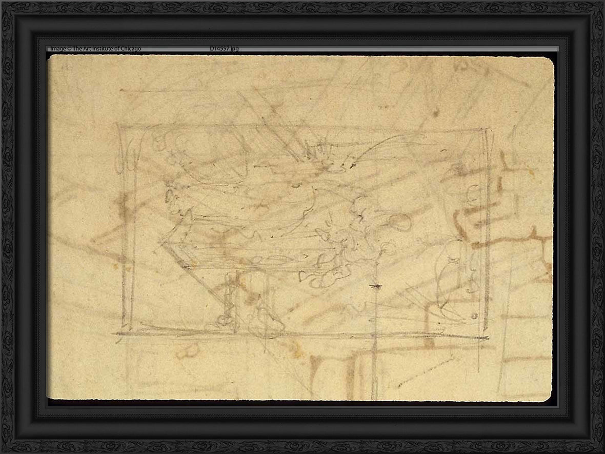 / Study for Exhibition Room, Somerset House, from Microcosm of London (recto); Sketch of a Painting: Madonna and Child (verso) by Augustus Charles Pugin