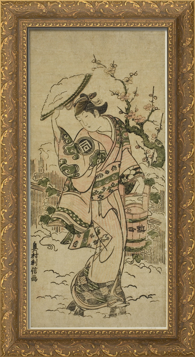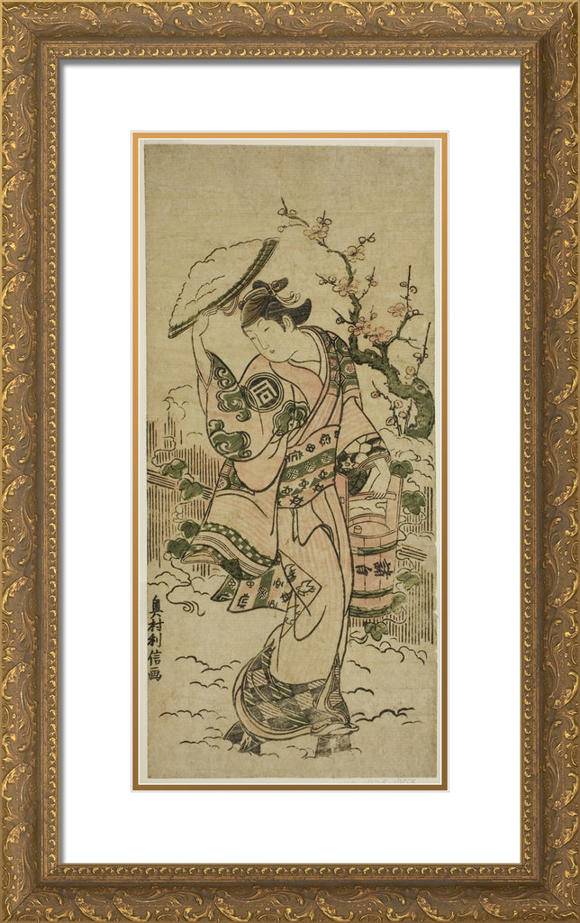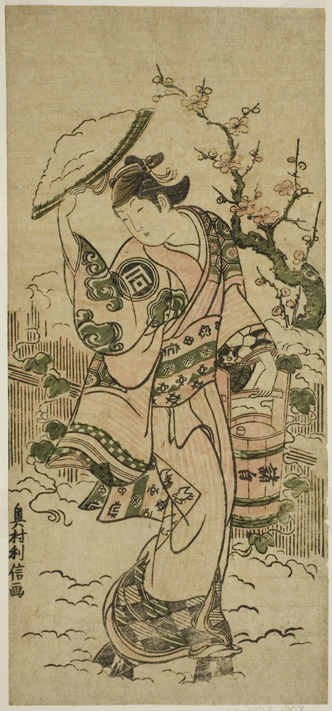 / The Actor Sanogawa Mangiku as a woman walking in the snow by Okumura Toshinobu