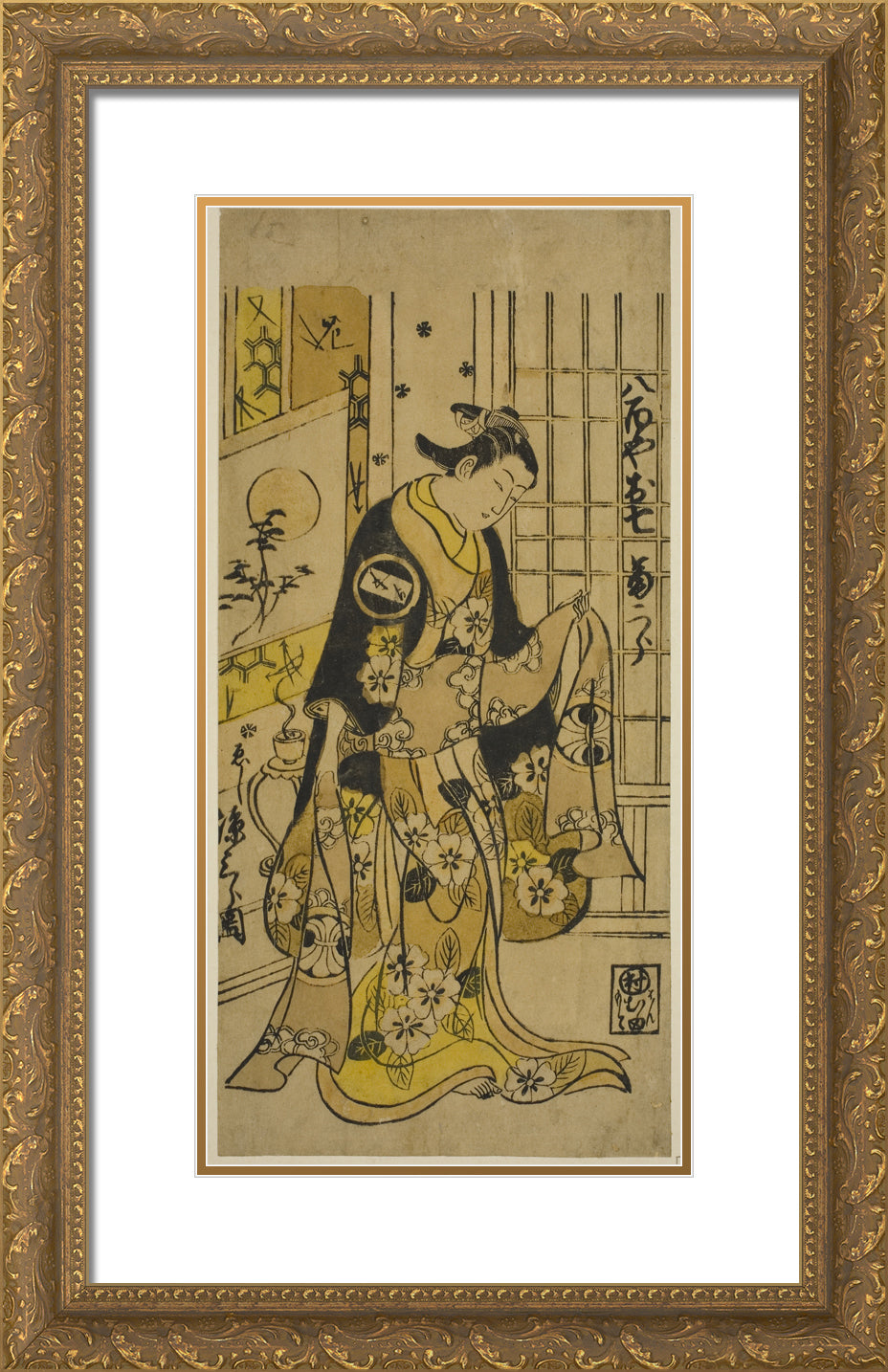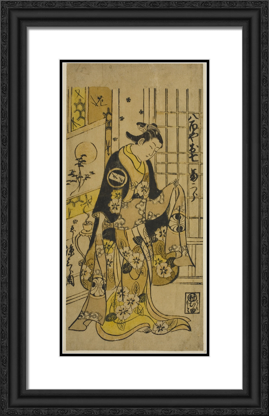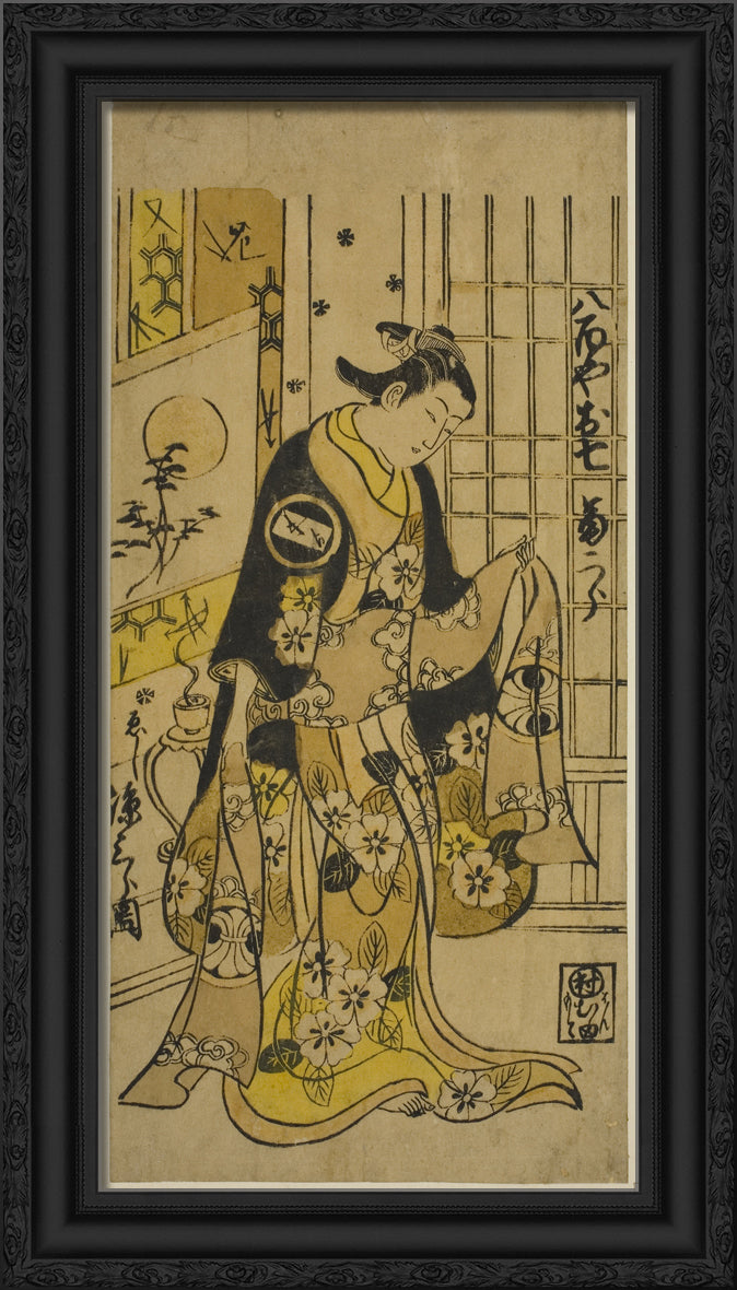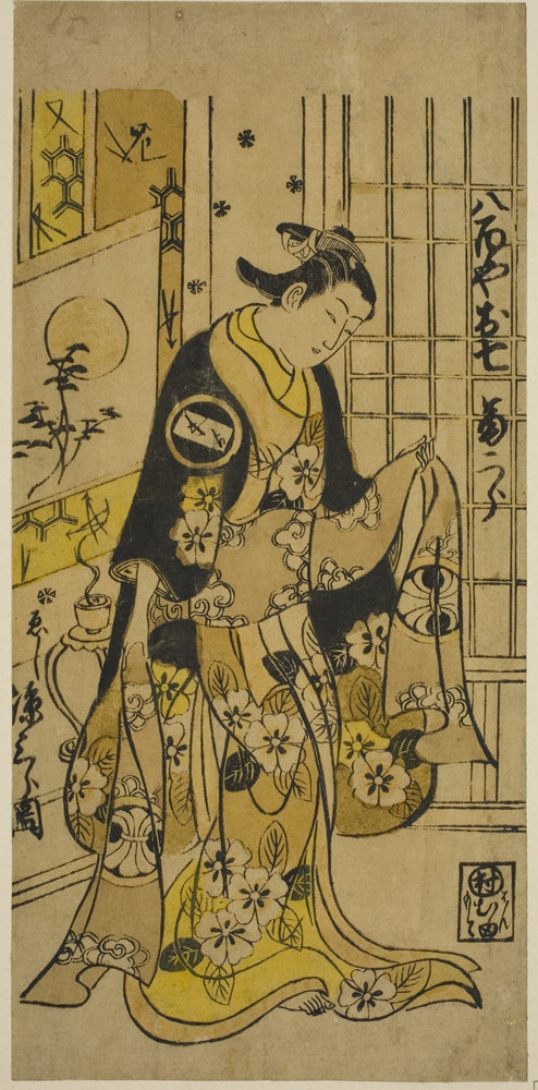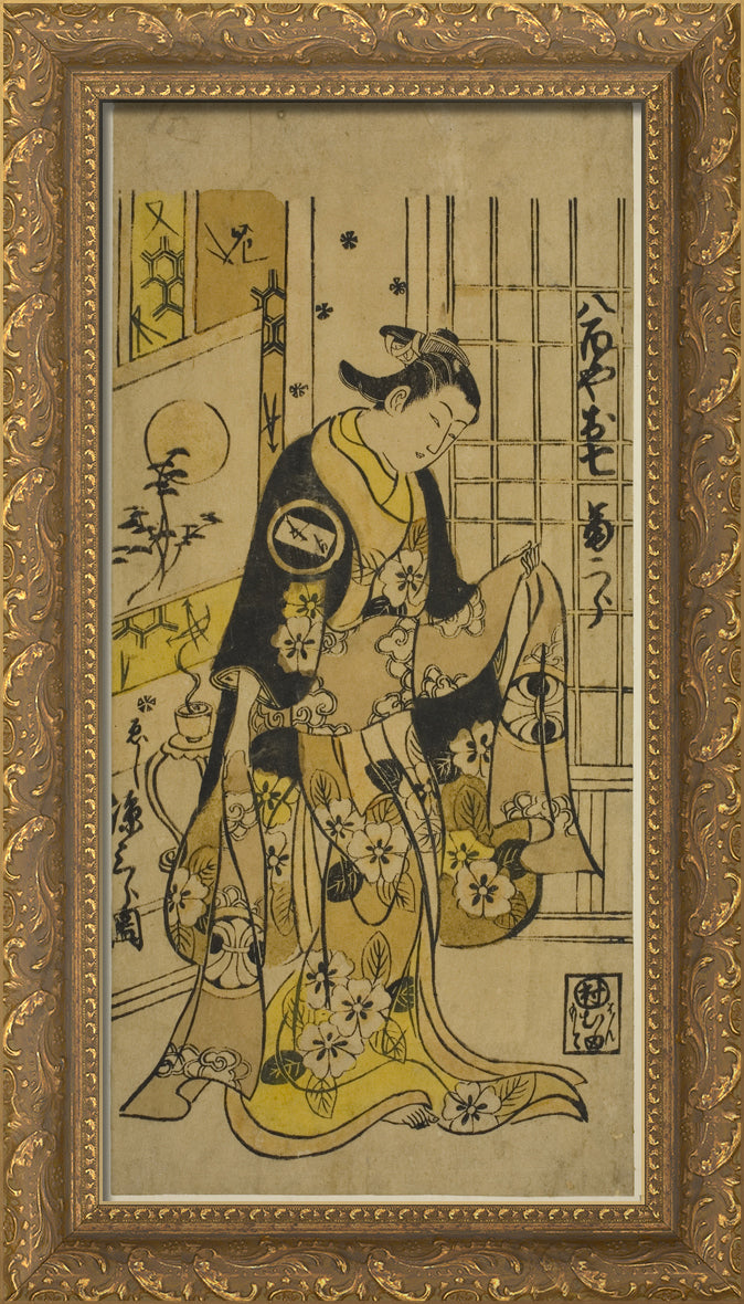 / The Actor Segawa Kikujiro I as Oshichi in the play "Shochikubai Kongen Soga," performed at the Ichimura Theater in the third month, 1732 by Nishimura Shigenobu
