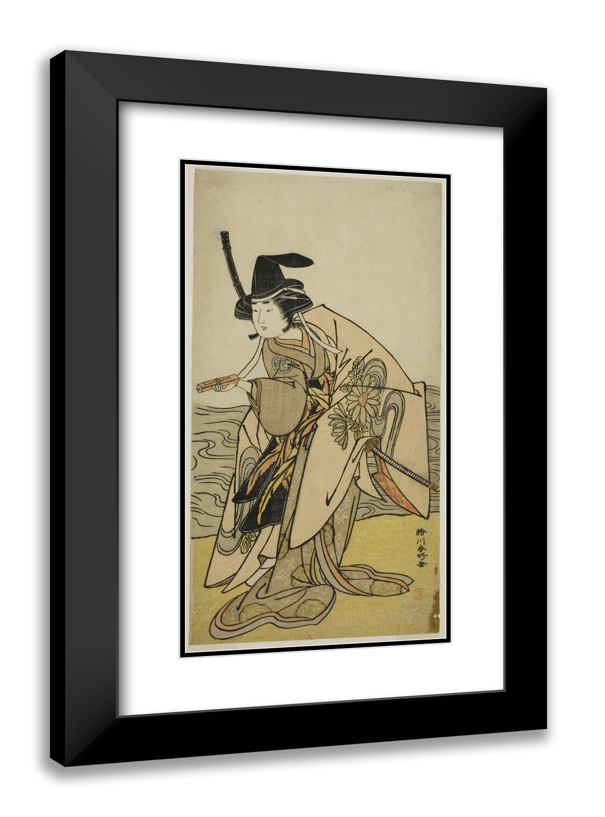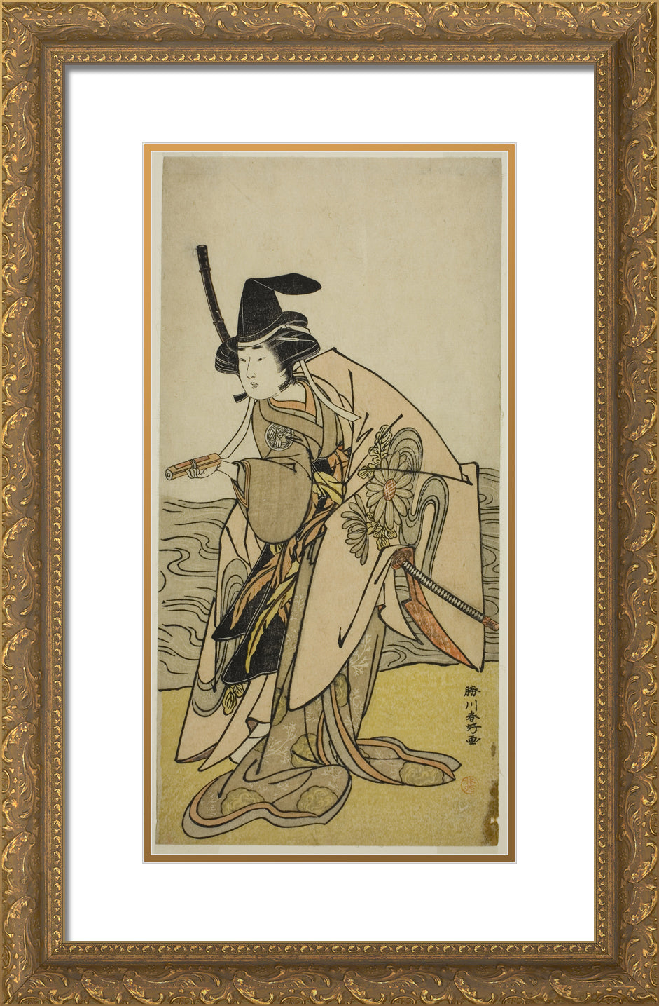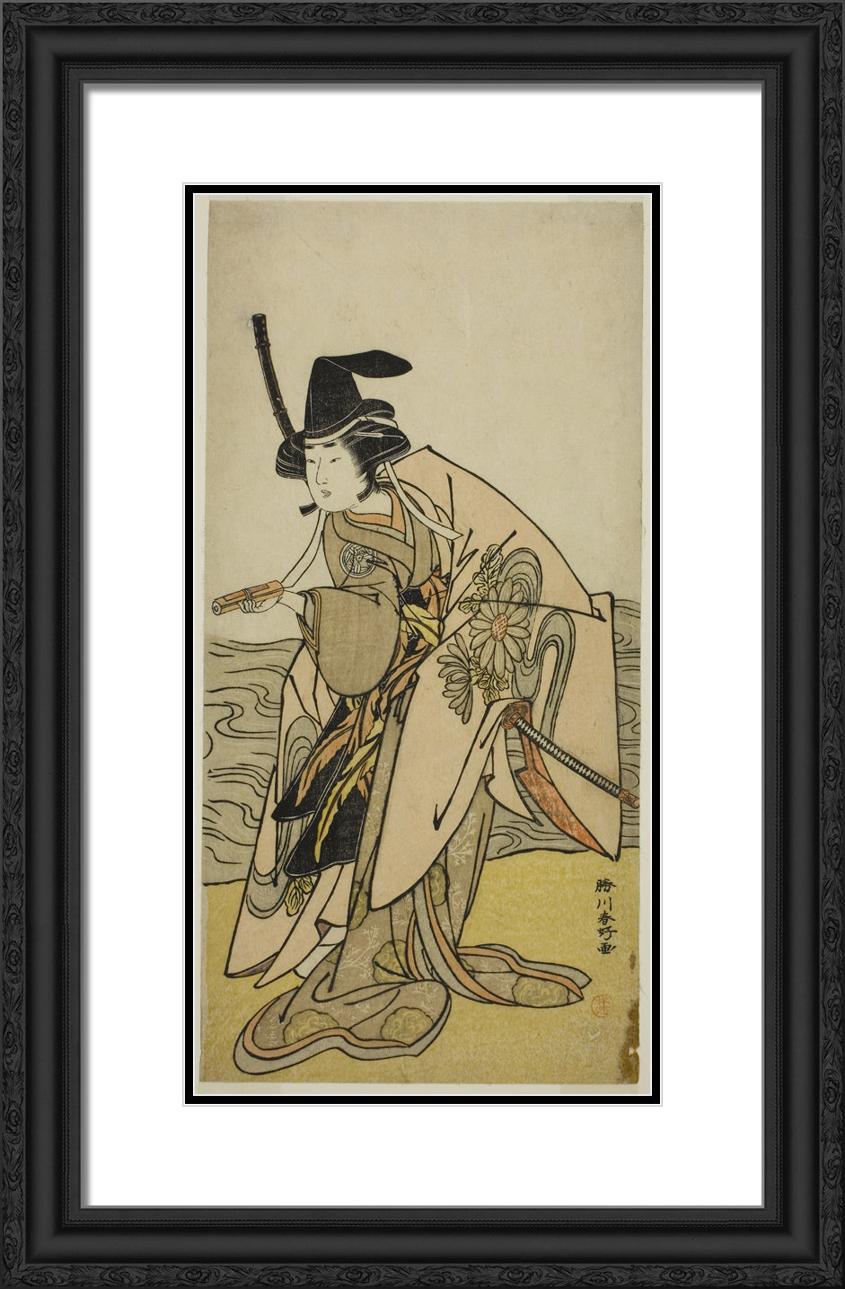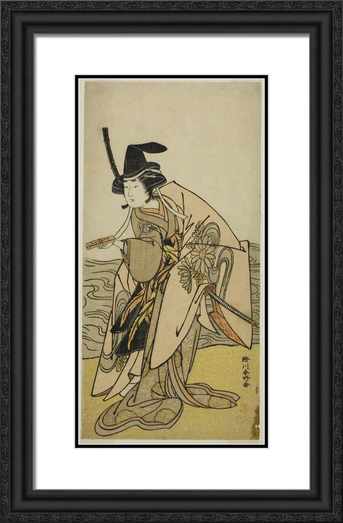 / The Actor Yamashita Kinsaku II as Lady Kikusui (Kikusui Gozen) in the Play Kaeribana Eiyu Taiheiki, Performed at the Nakamura Theater in the Eleventh Month, 1779 by Katsukawa Shunko