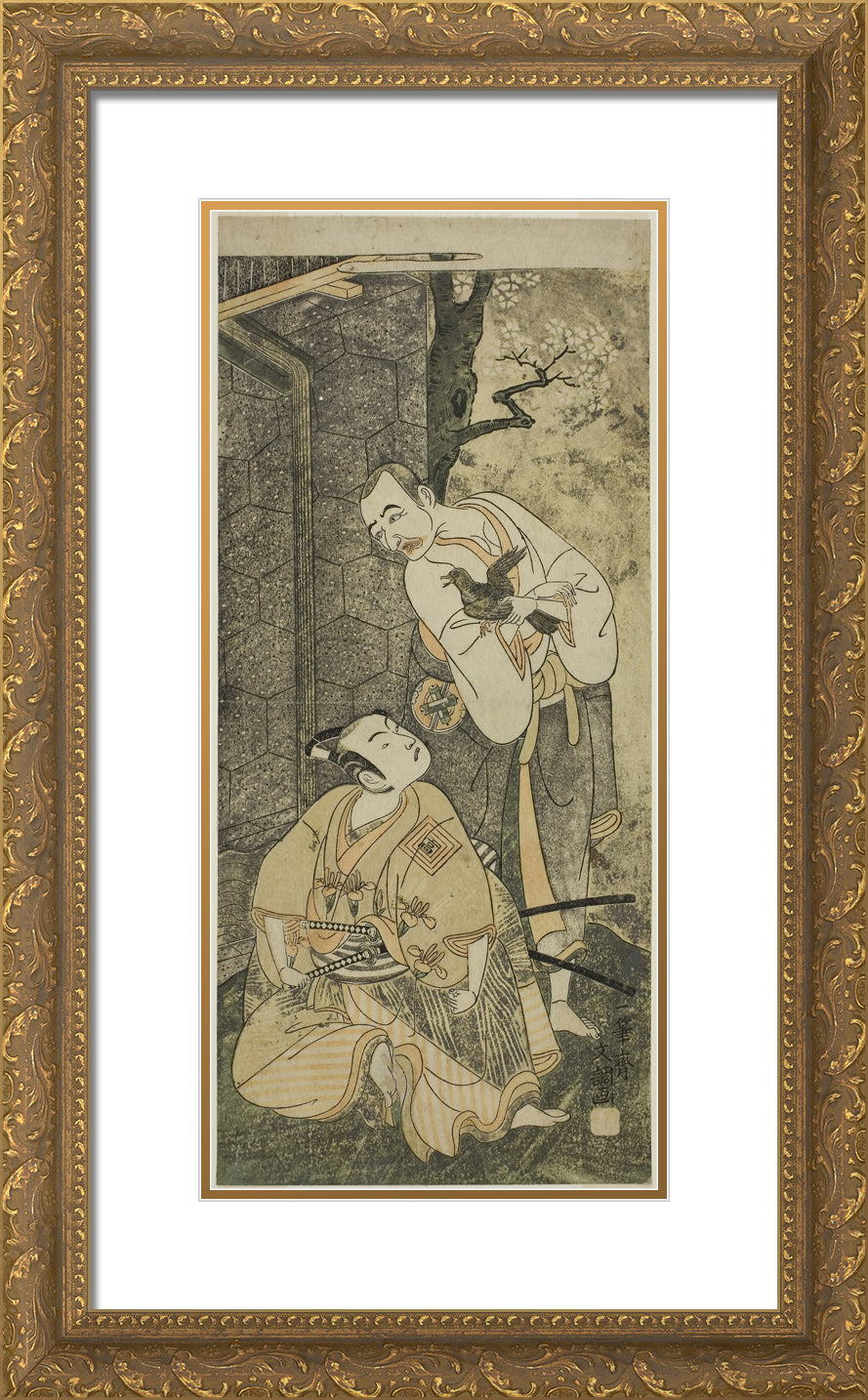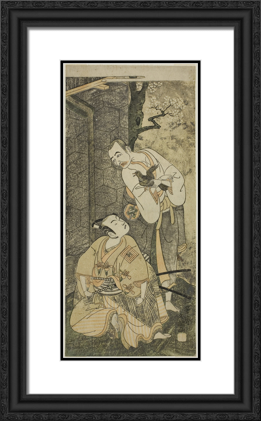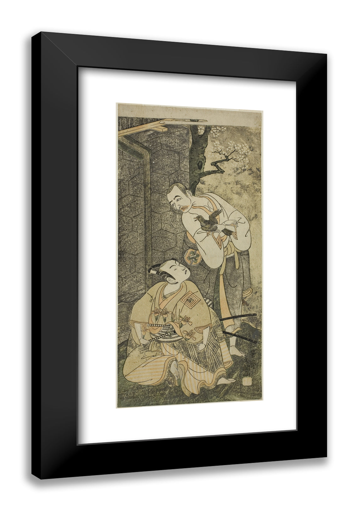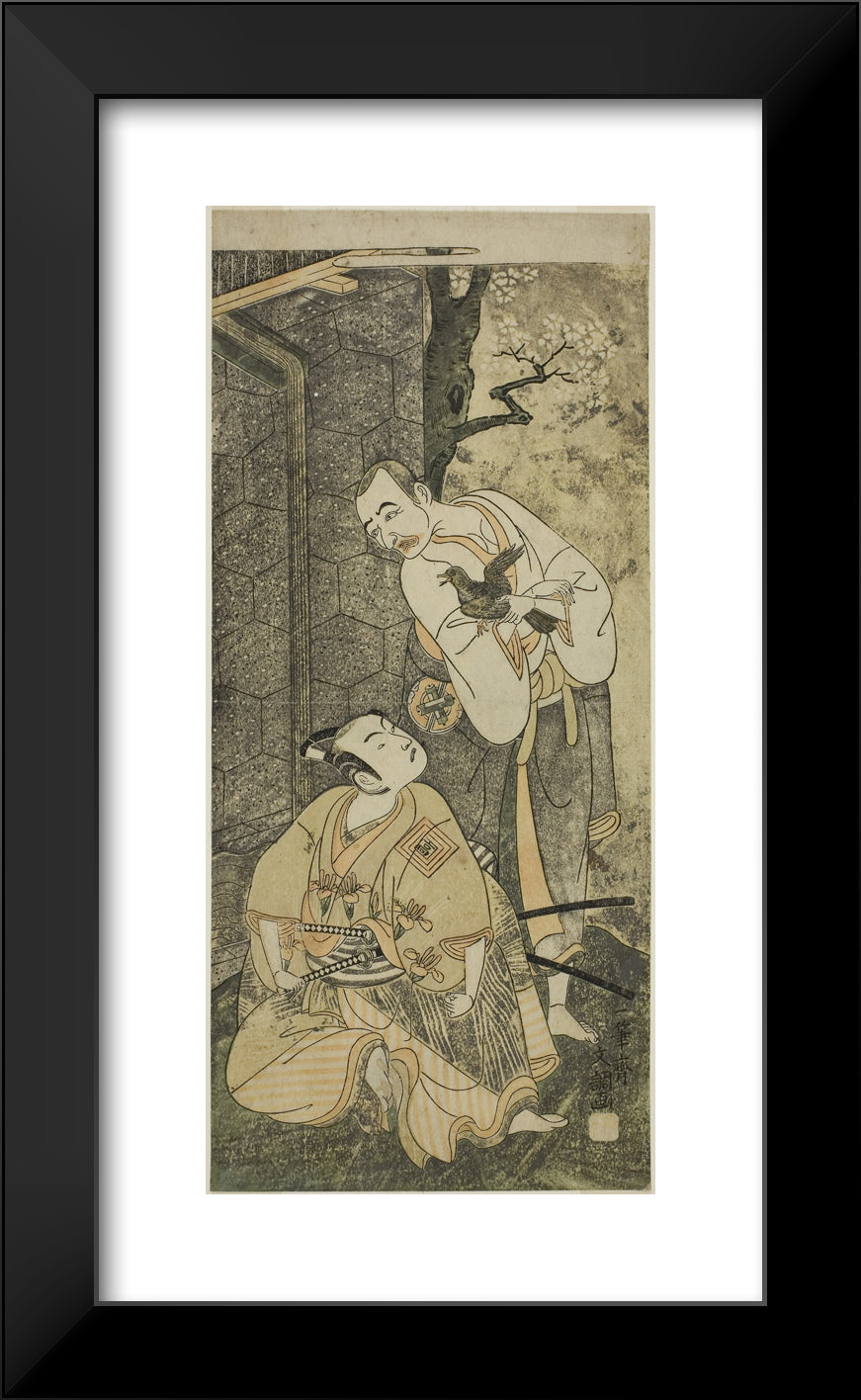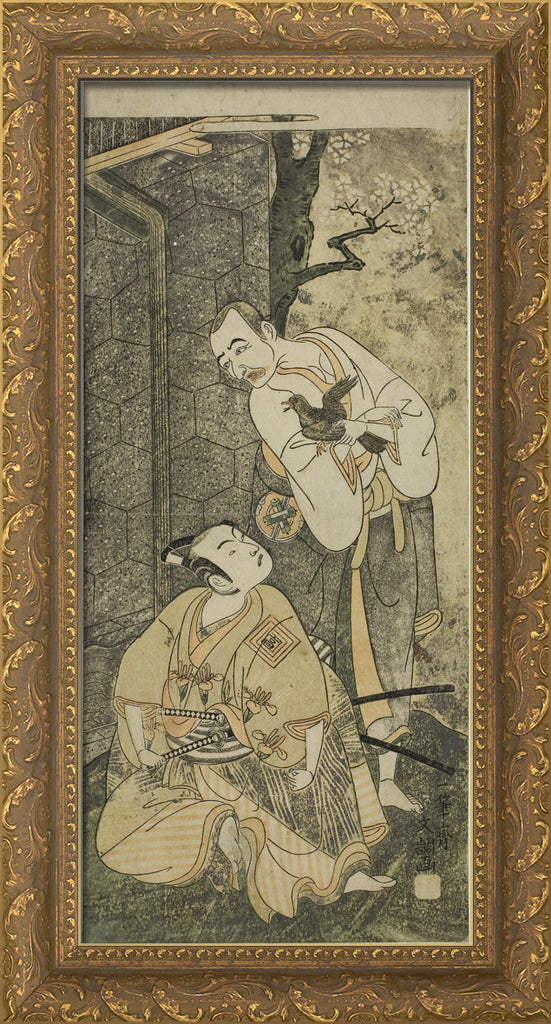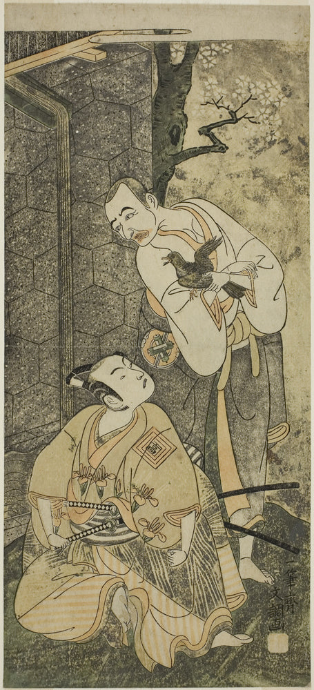 • The Actors Nakamura Utaemon I as Seigen (right), and Ichikawa Komazo II as Shimizu Tonoinosuke Kiyoharu (left), in the Play Soga Moyo Aigo no Wakamatsu, Performed at the Nakamura Theater in the Third Month, 1769 by Ippitsusai Buncho