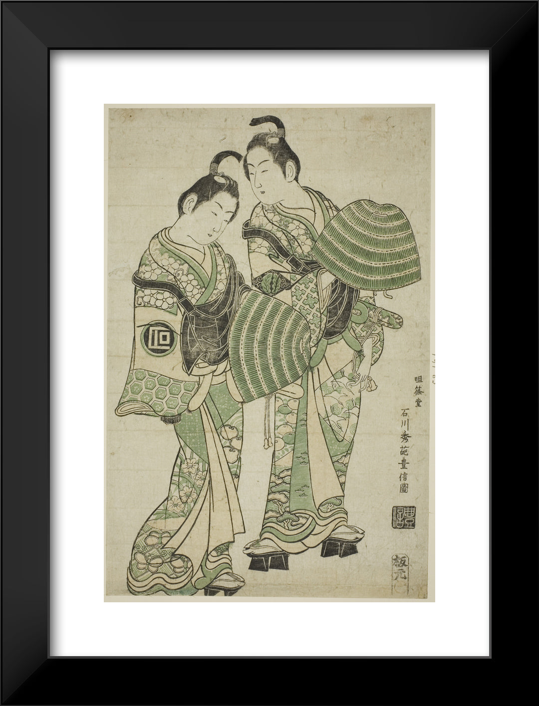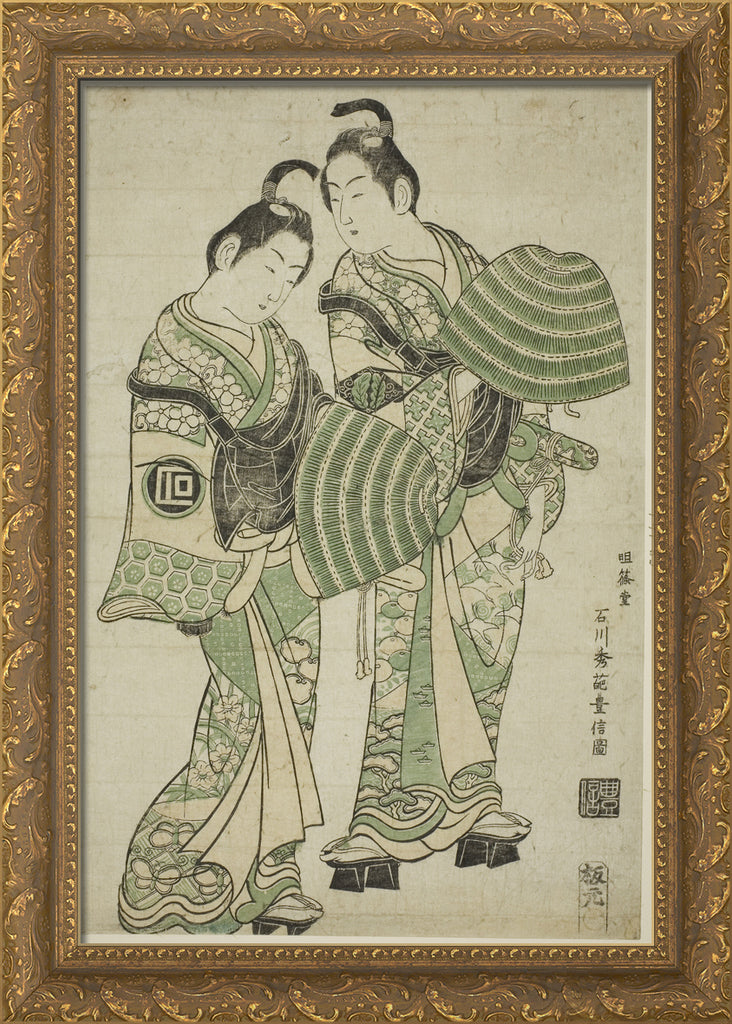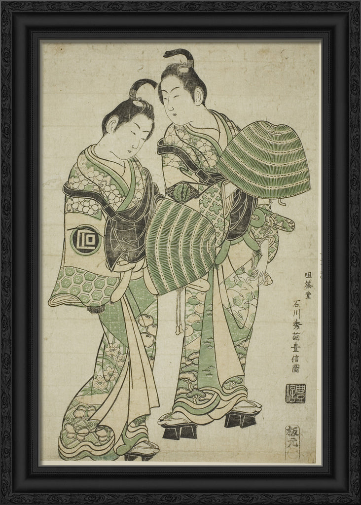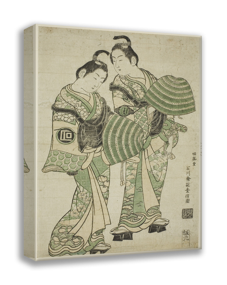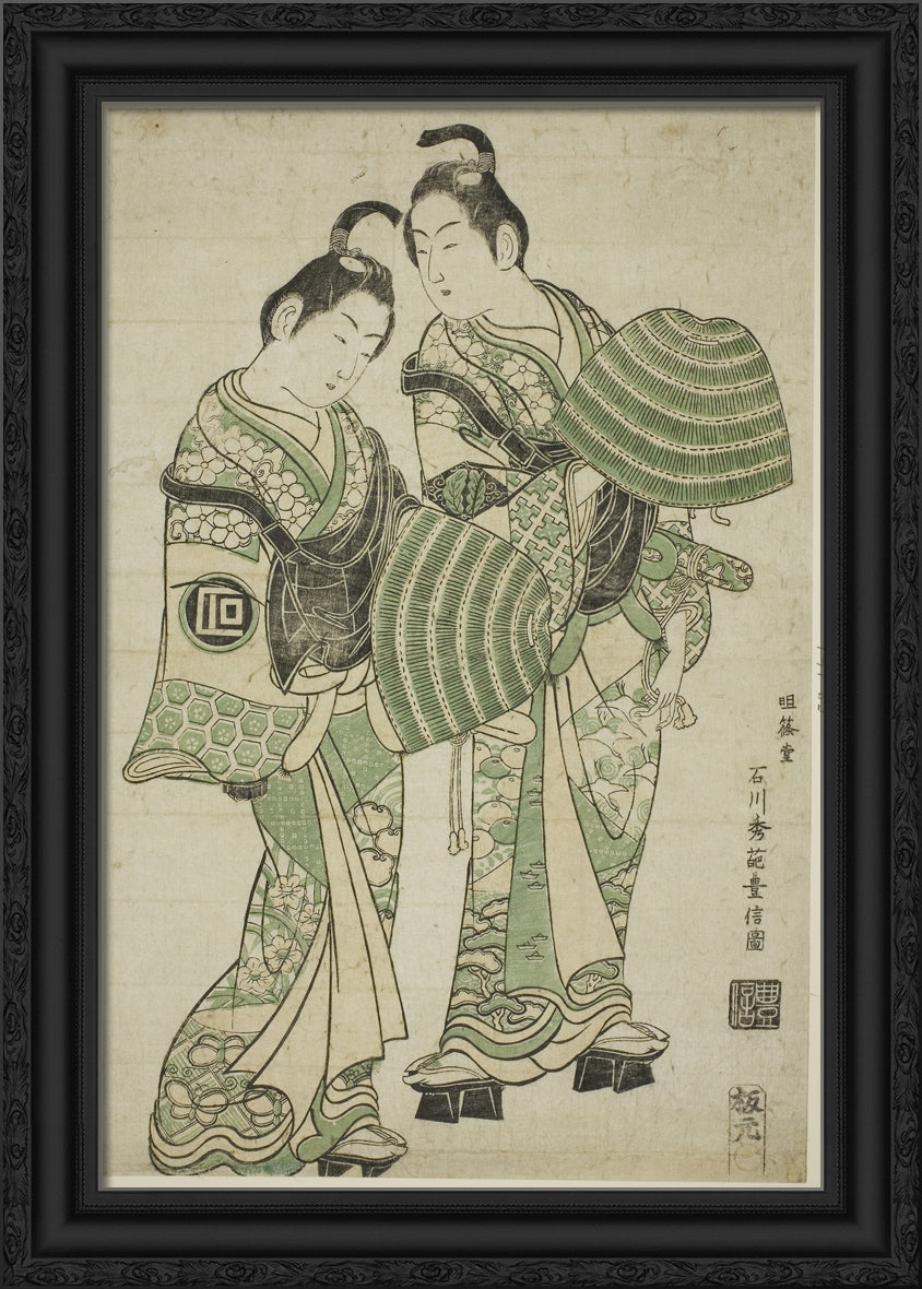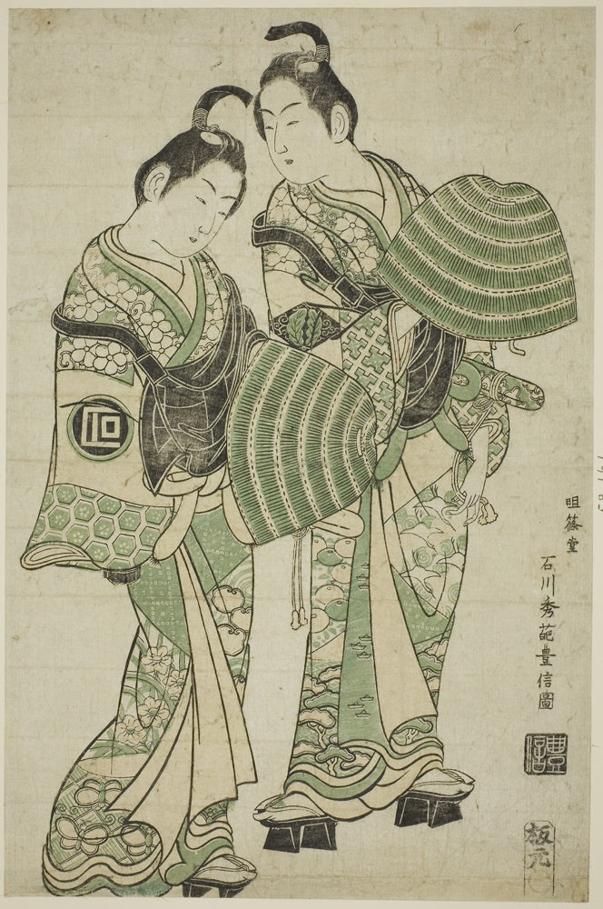 / The Actors Onoe Kikugoro I and Sanogawa Ichimatsu I dressed as mendicant monks (komuso) by Ishikawa Toyonobu