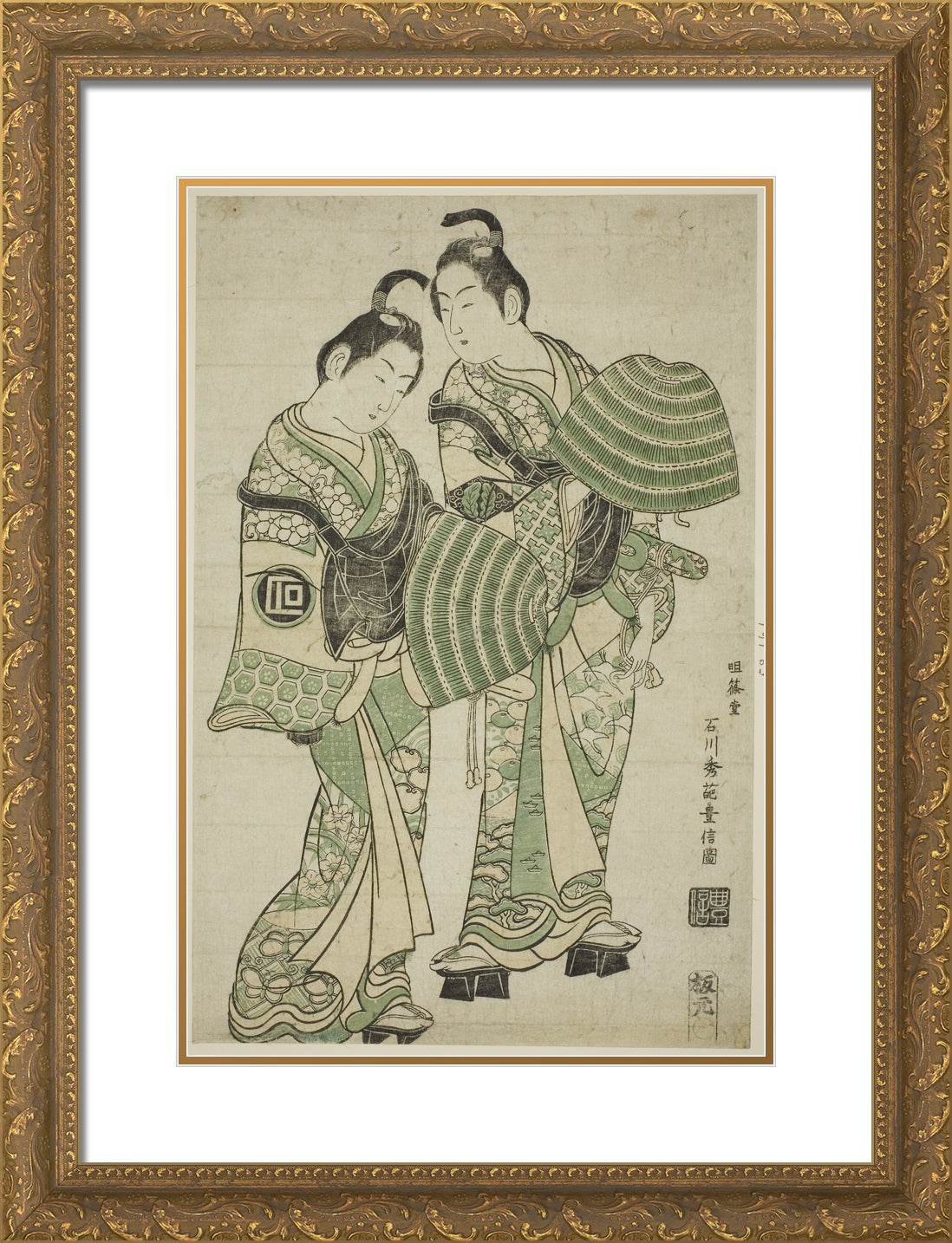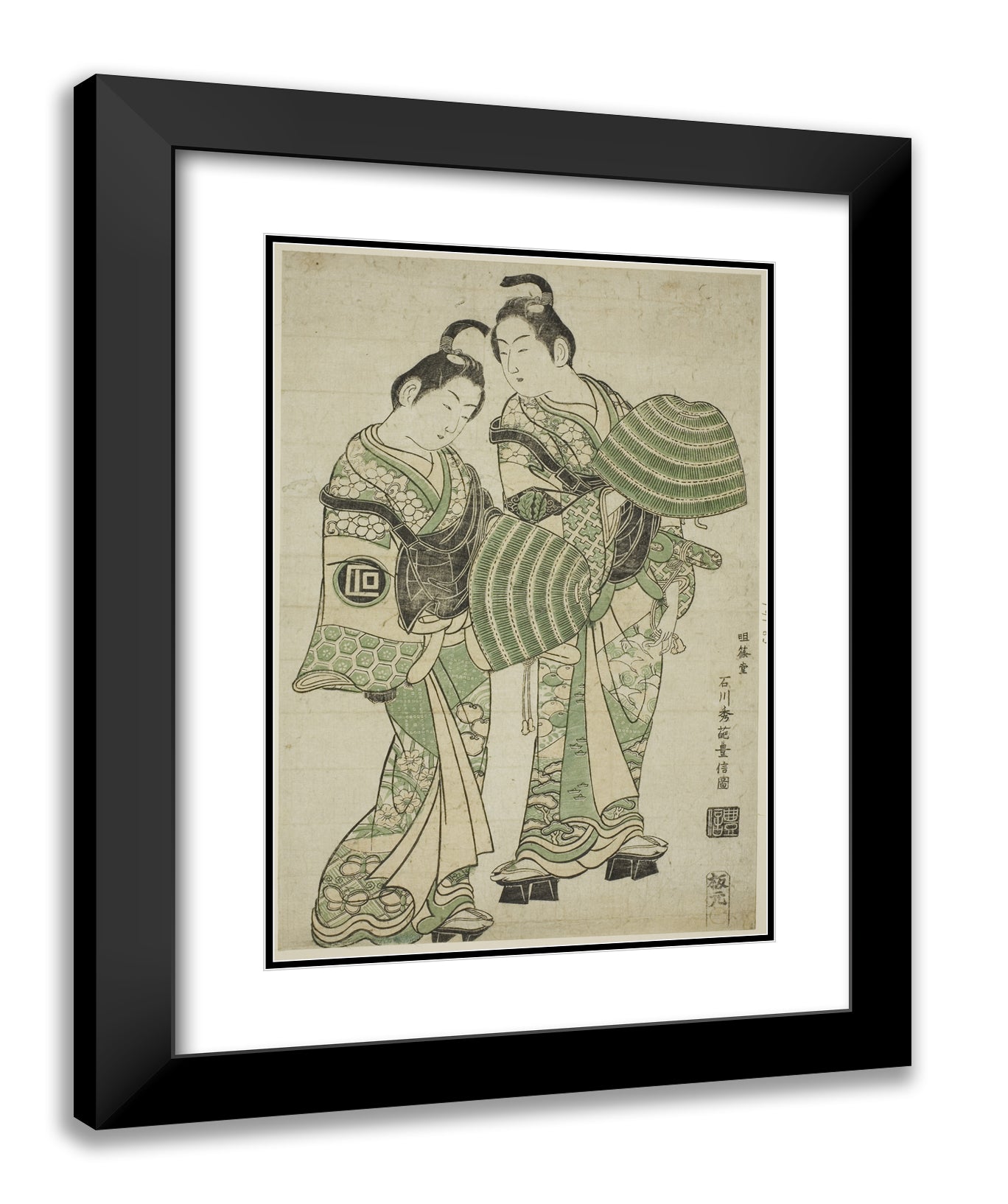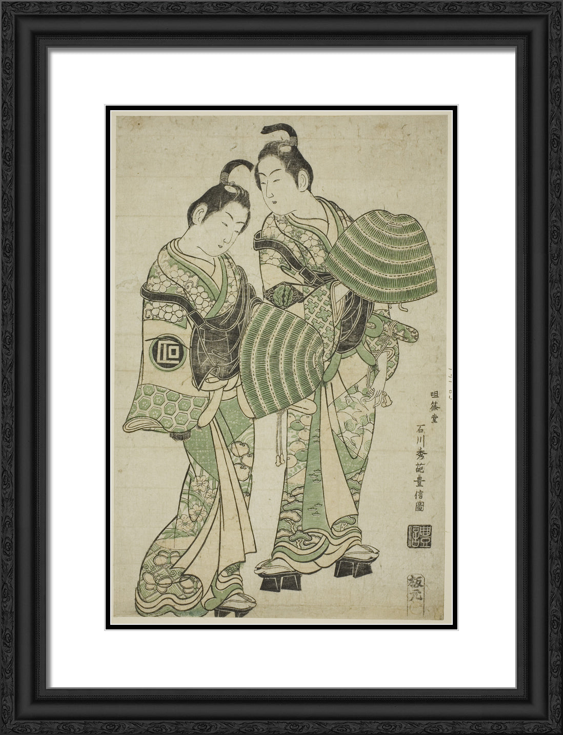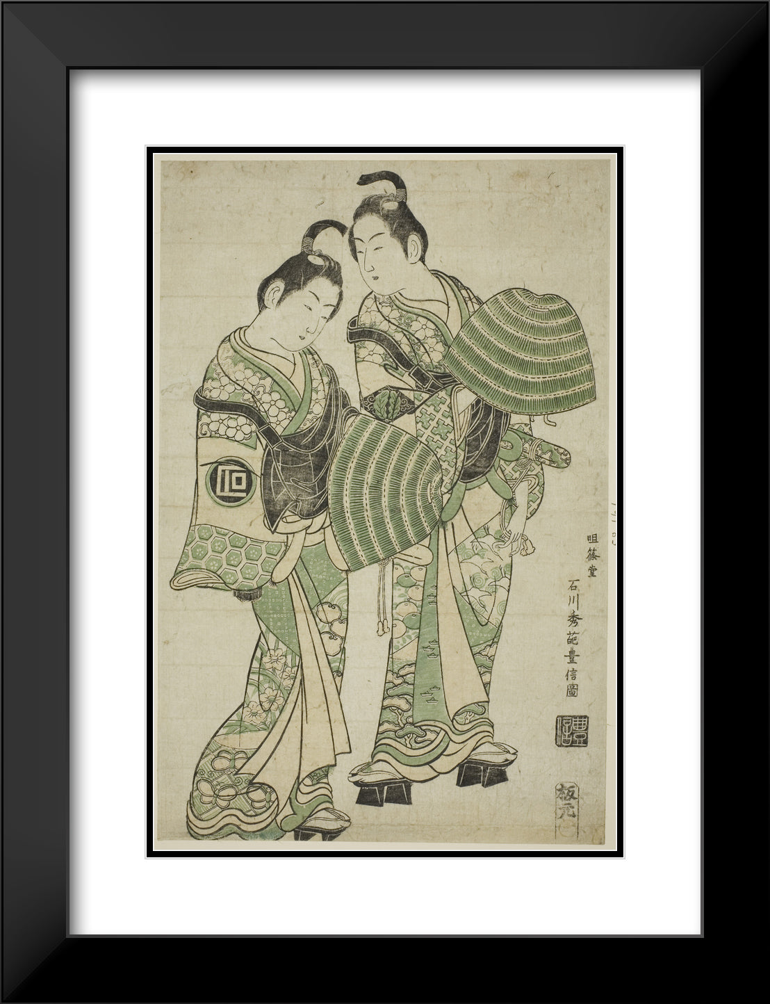 / The Actors Onoe Kikugoro I and Sanogawa Ichimatsu I dressed as mendicant monks (komuso) by Ishikawa Toyonobu