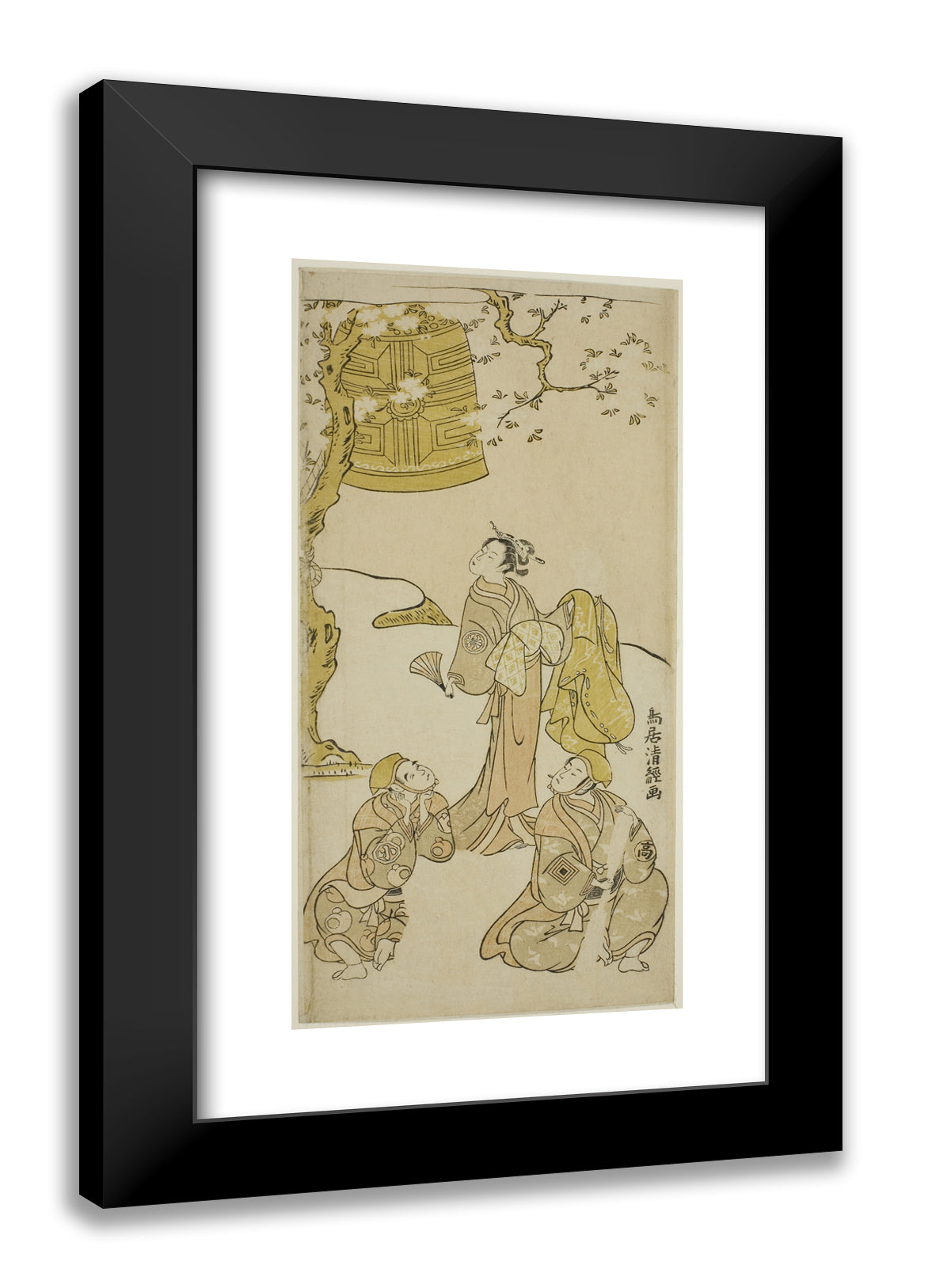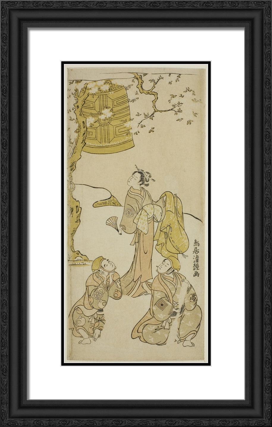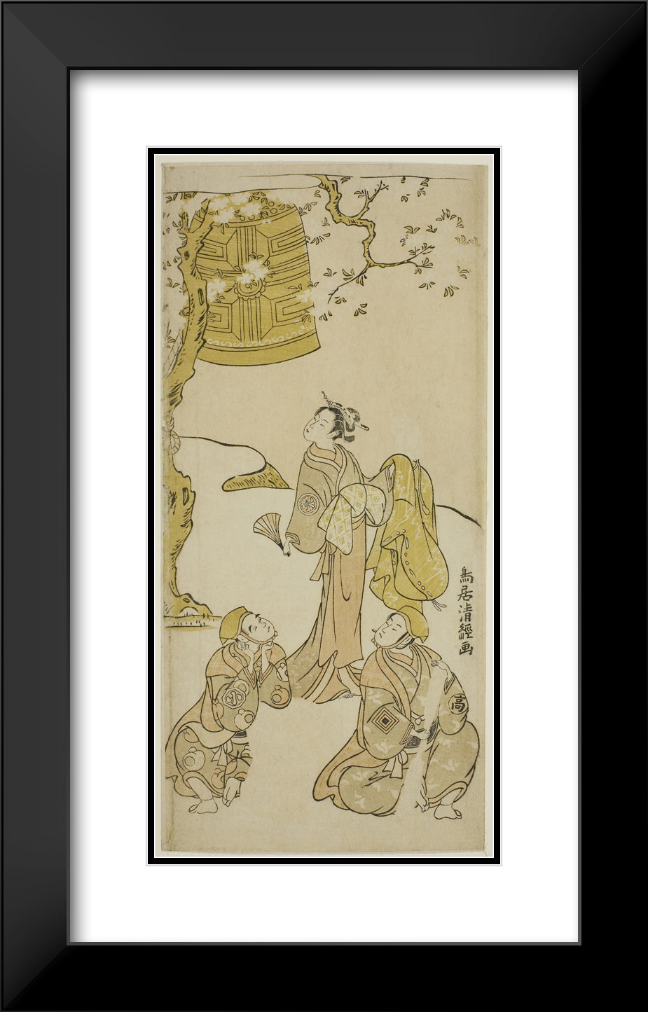 / The Actors Segawa Kikunojo II, Ichikawa Komazo II, and Arashi Otohachi I in the play "Fude Hajime Soga no Tamazusa," performed at the Nakamura Theater in the first month, 1768 by Torii Kiyotsune