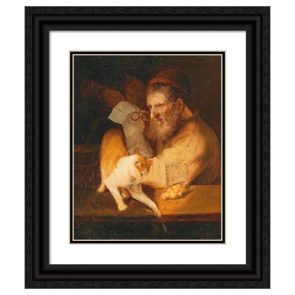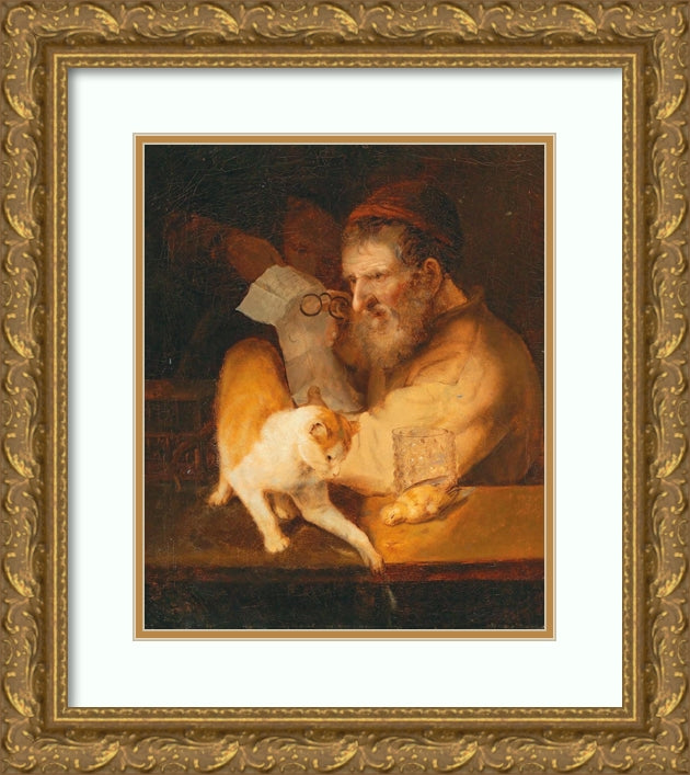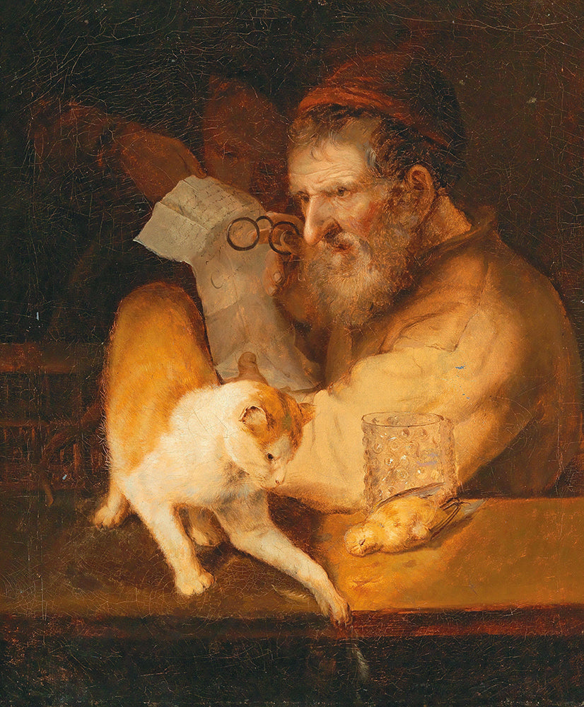 An Old Man Holding a Letter, with a Cat on a Ledge
