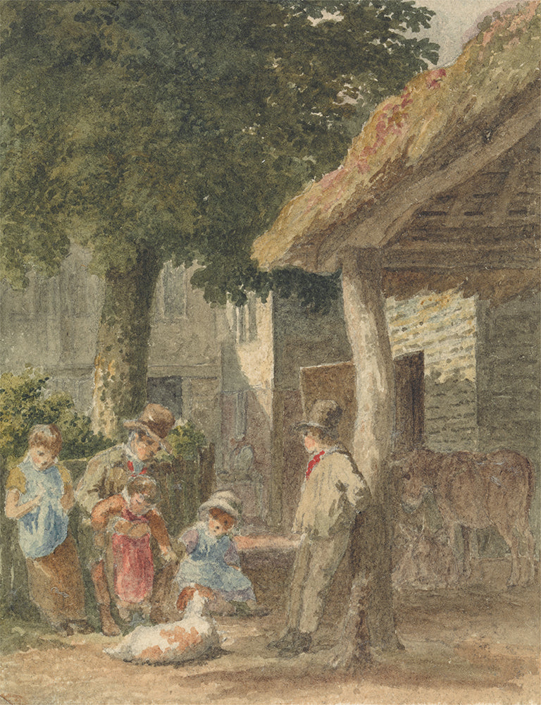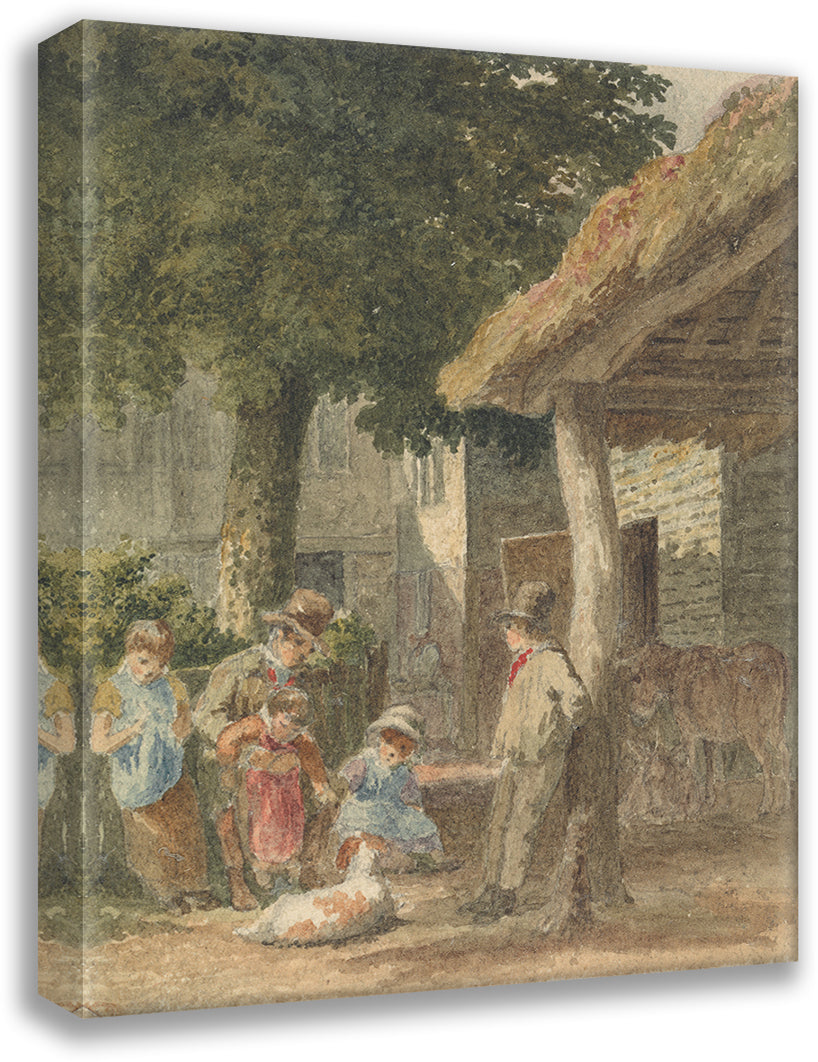 Children with a Dog in Farmyard