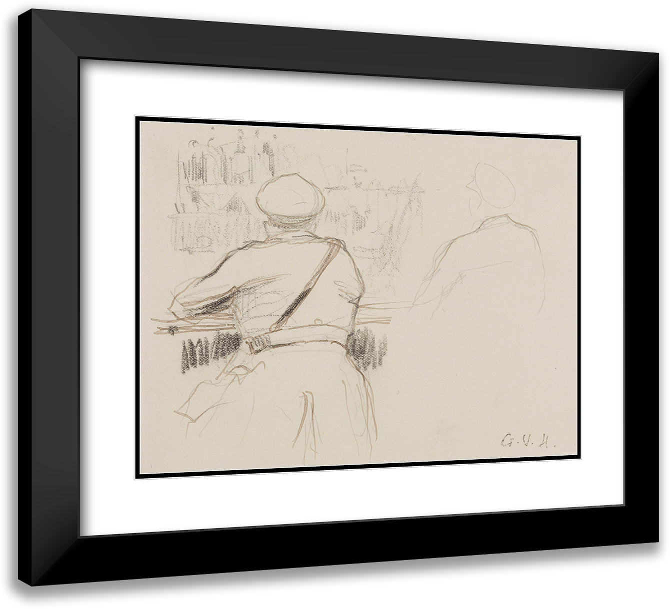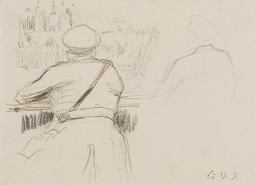 / Military Supported at a Parapet Seen from the Back (Right Sketch of a Military on the Back) (1917)