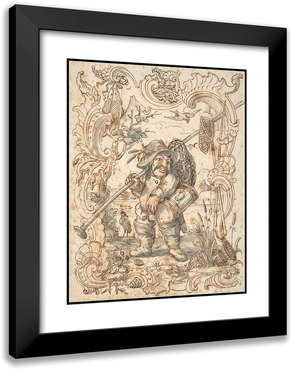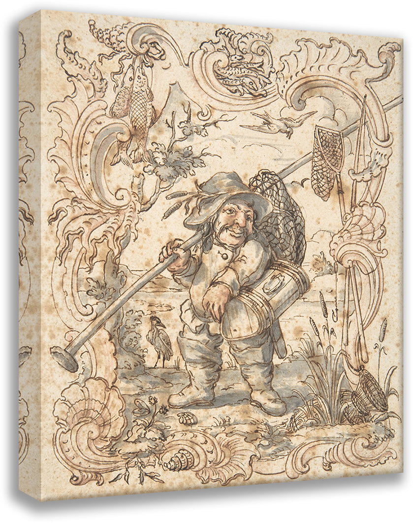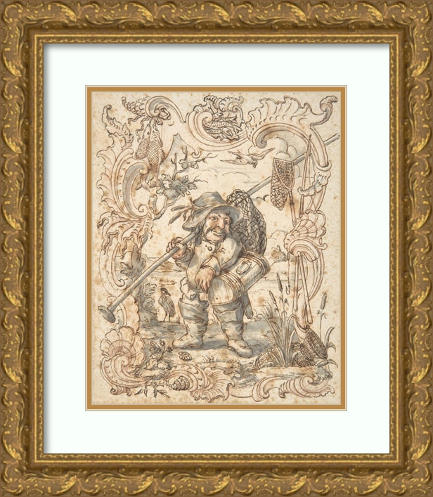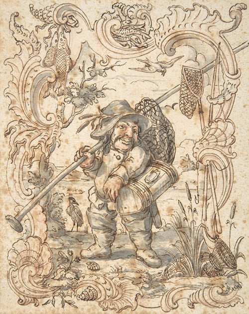 Caricatures of a Fish and a Bird Peddler in Ornamental Frames (1735-88)