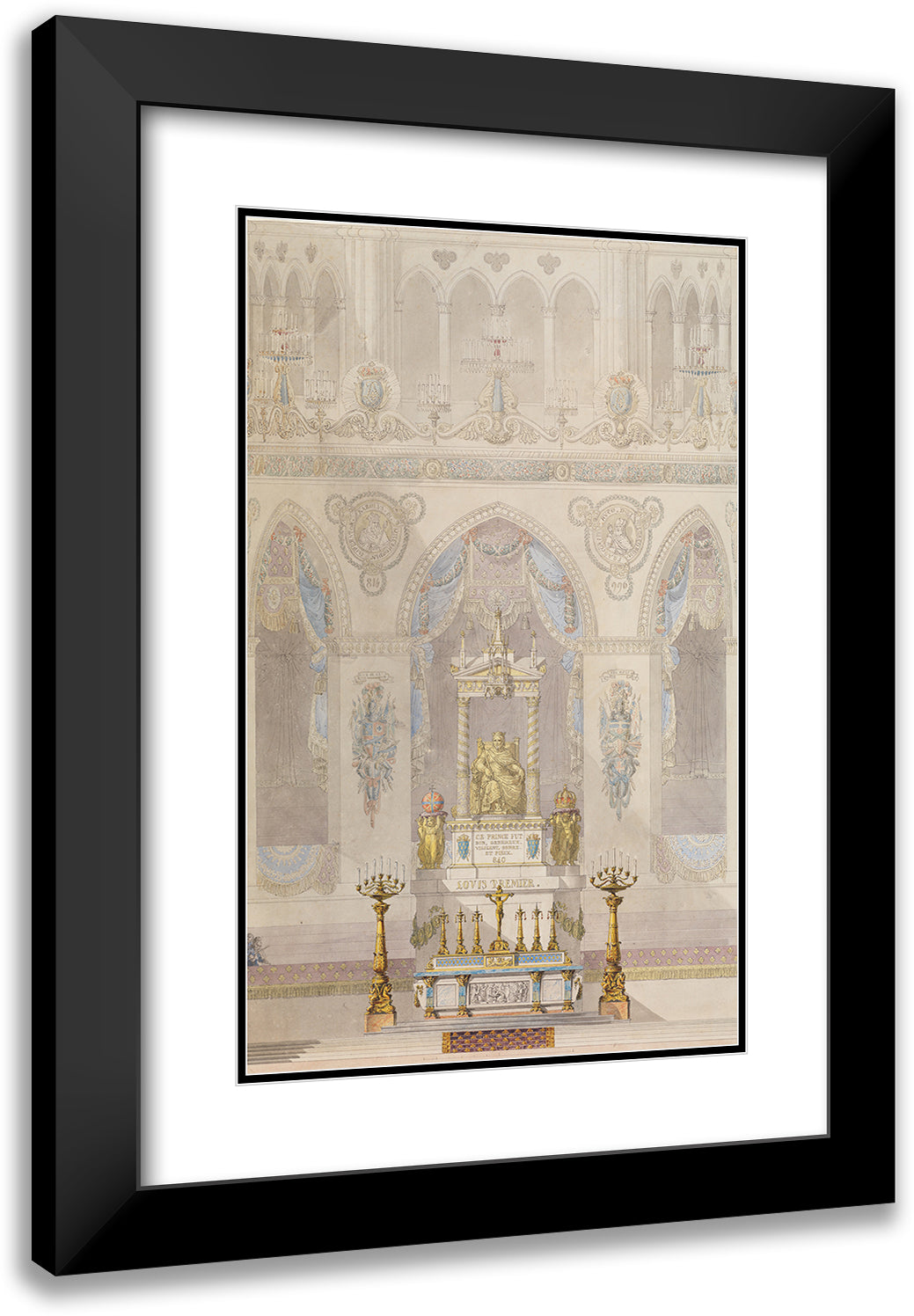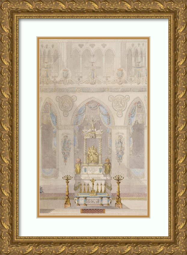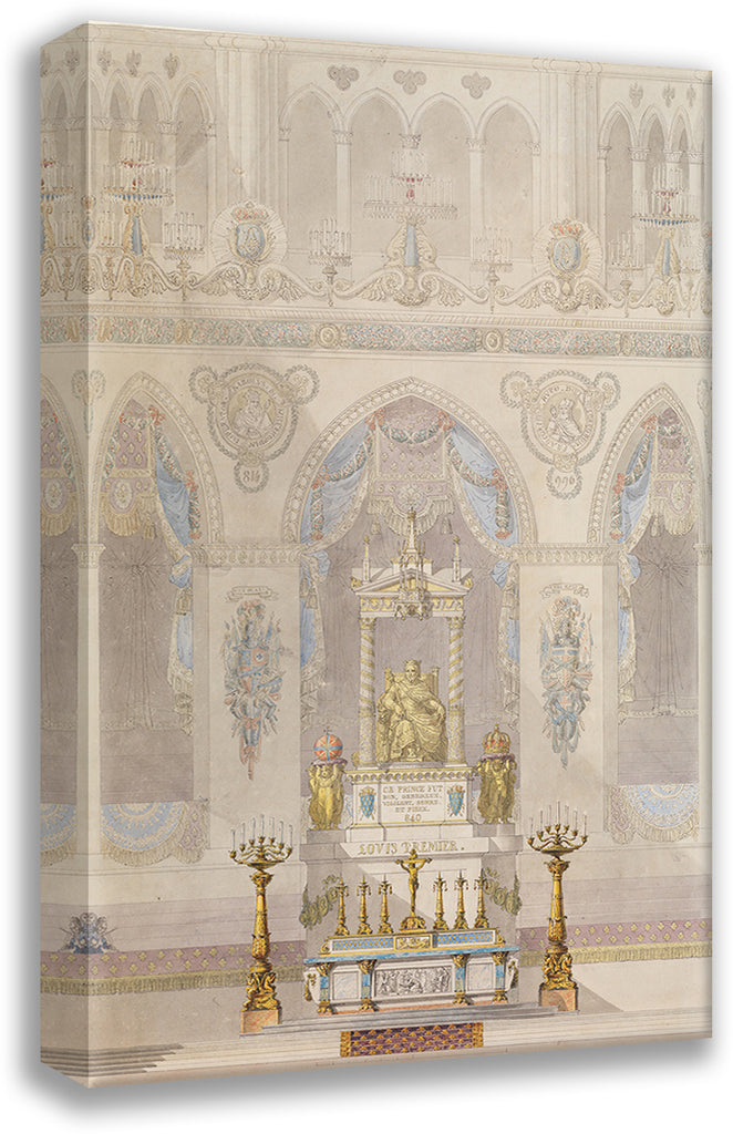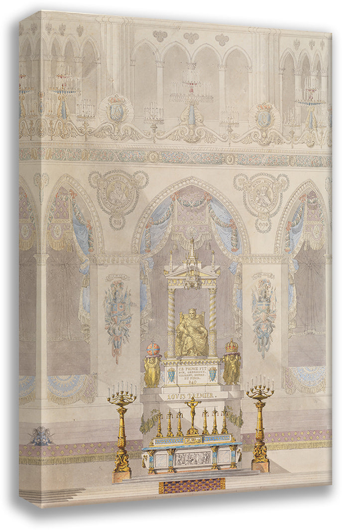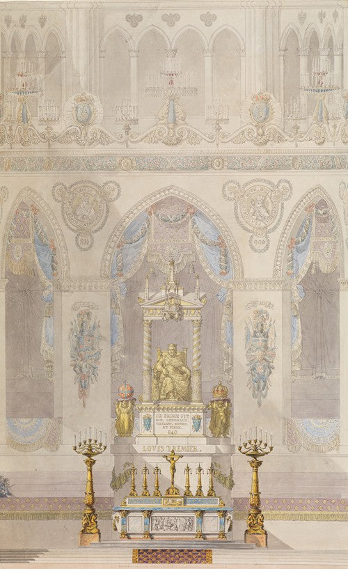 / Interior Elevation of Reims Cathedral with a Statue of King Louis I and an Altar Placed at Front