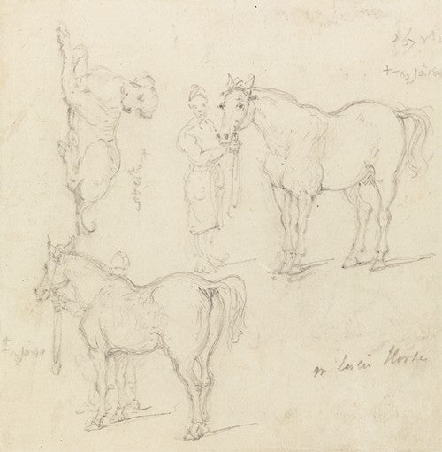 Studies of Horses with Chinese Grooms, and a Dog (1840)