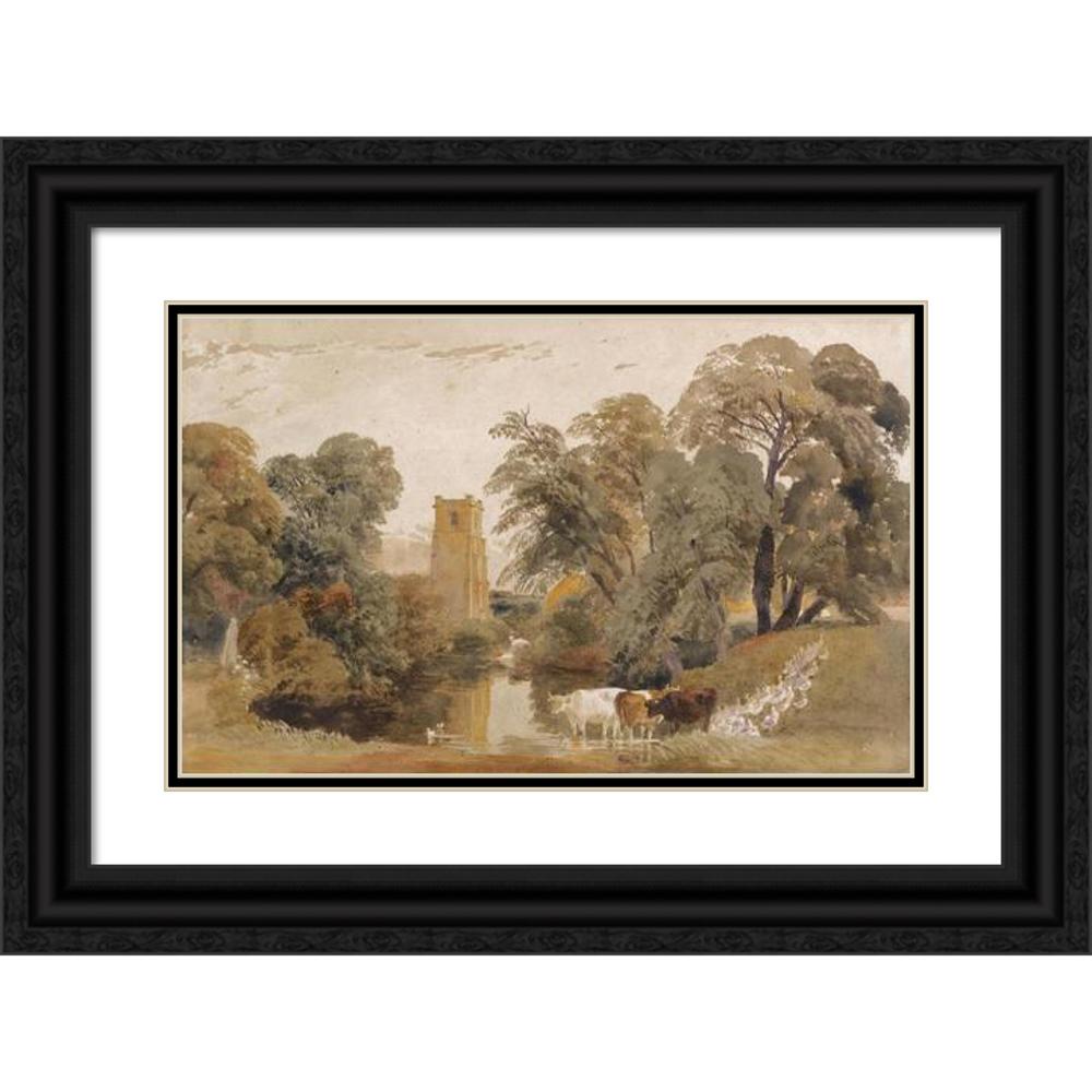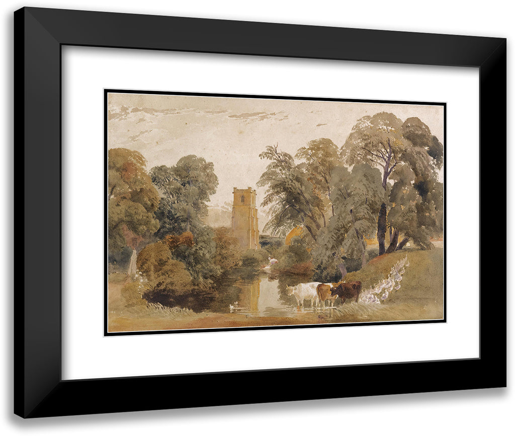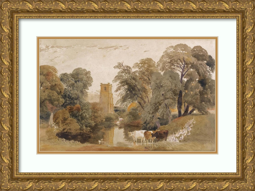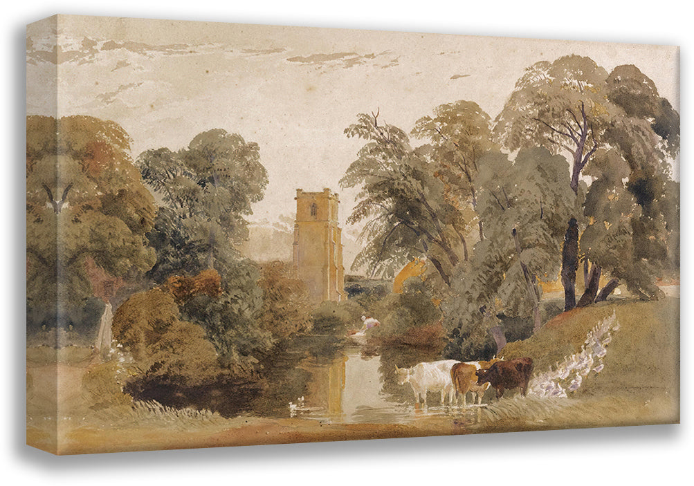 / Landscape with Cattle, Geese, a Lady Washing Clothes Beside a River and a Church Tower Beyond