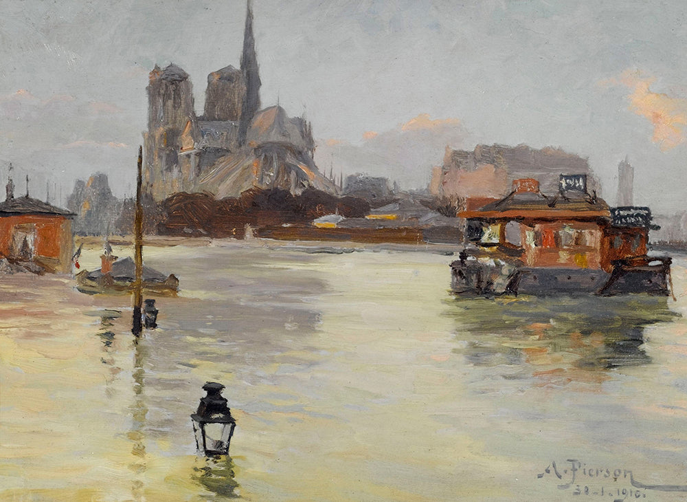/ Notre-Dame Cathedral, View of the Quai De La Tournelle, January 30, 1910, Floods of 1910, 4th and 5th Arrondissements. (1910)