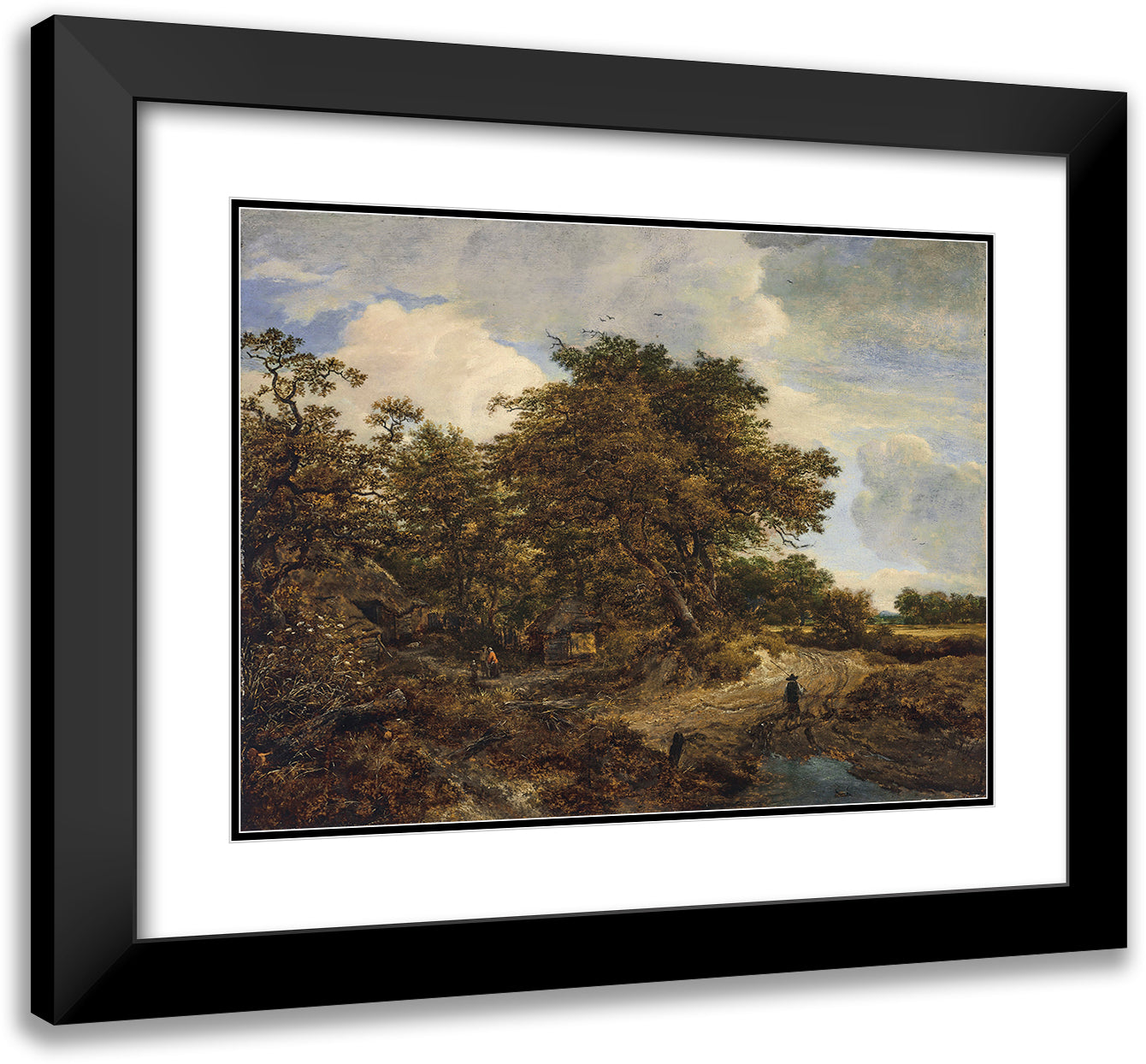 A Wooded Landscape with Cottages and a Figure and Dogs on a Dirt Path