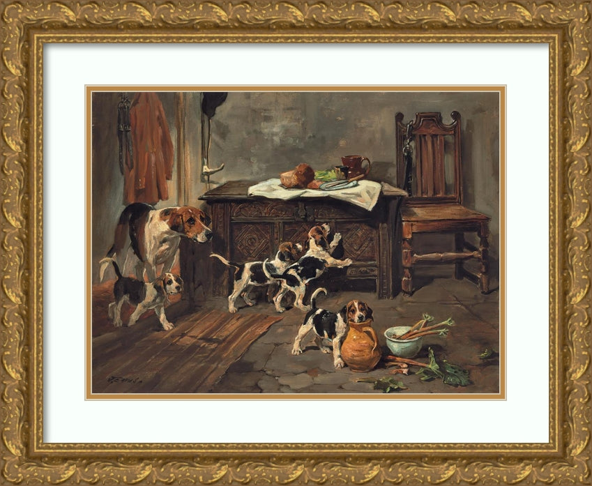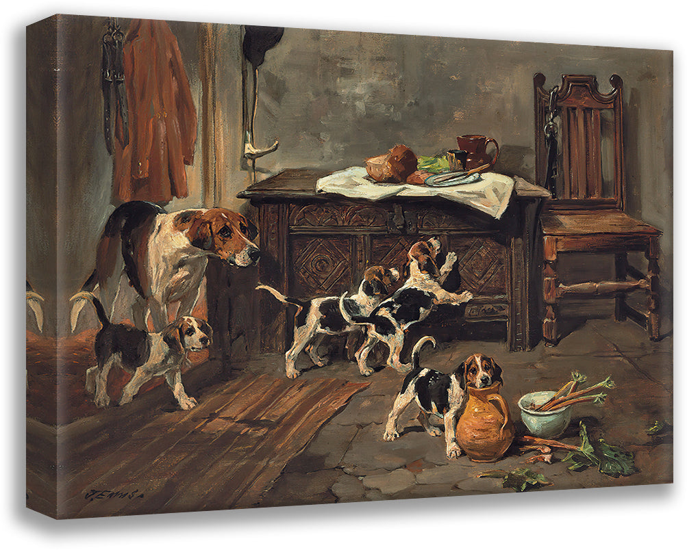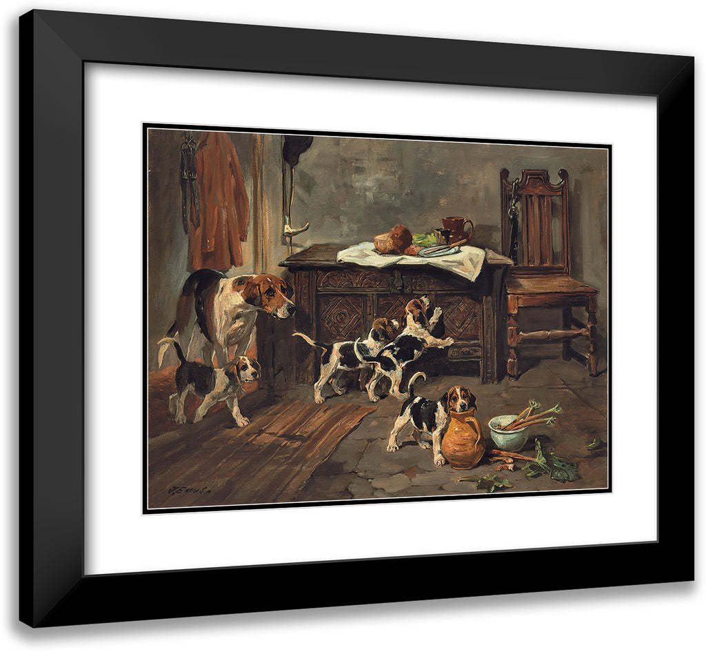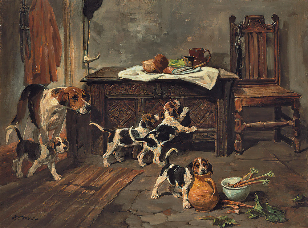 Hounds and Puppies in an Interior