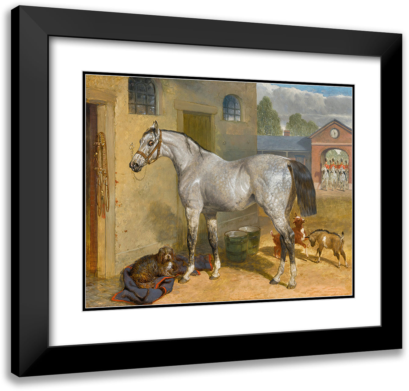 One of the Scots Greys in a Yard with Dog and Goats (1855)