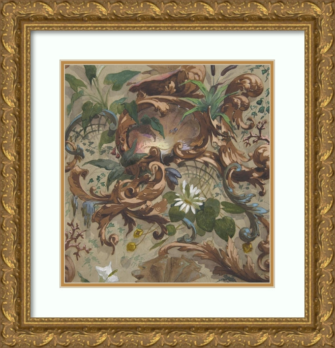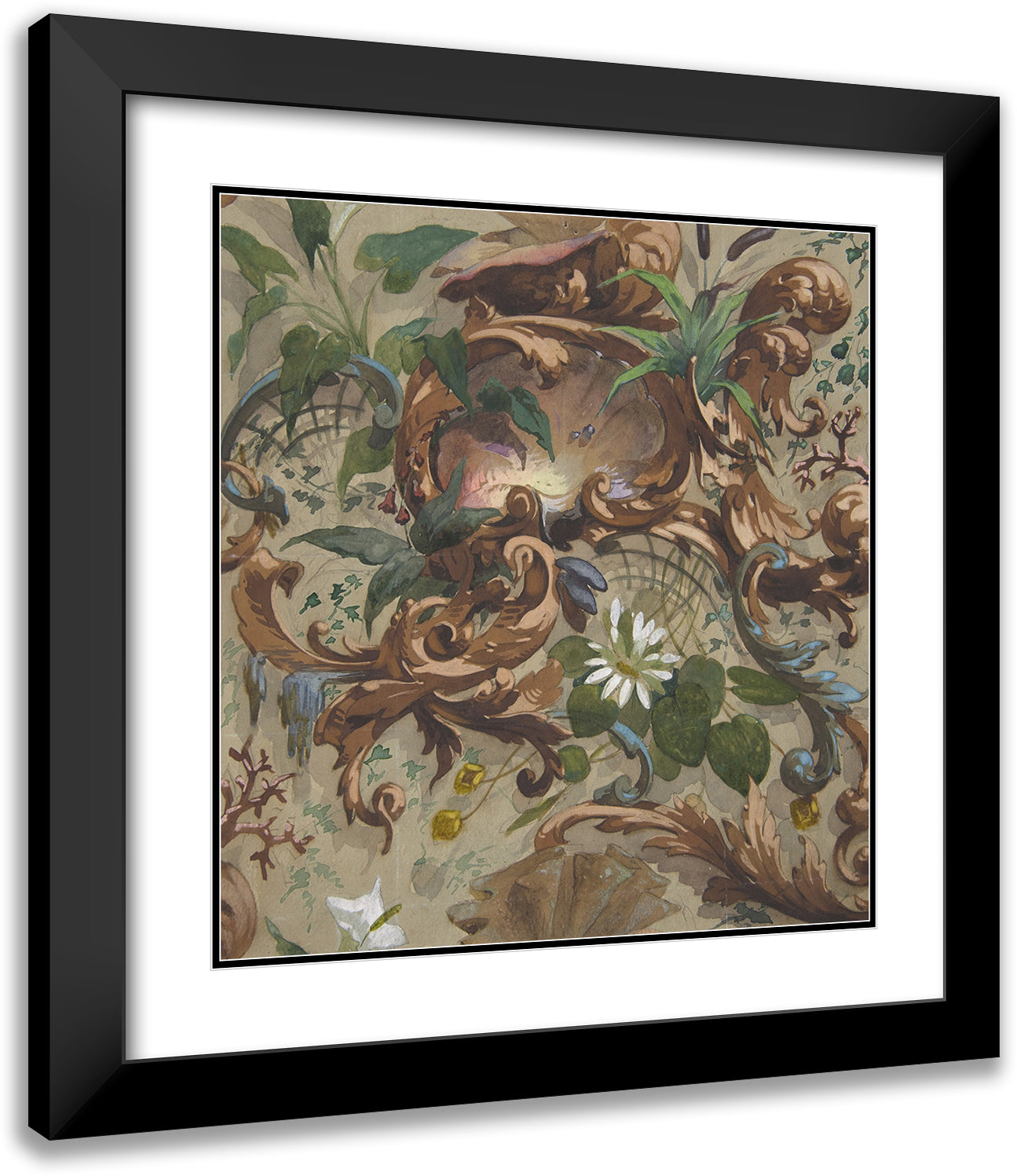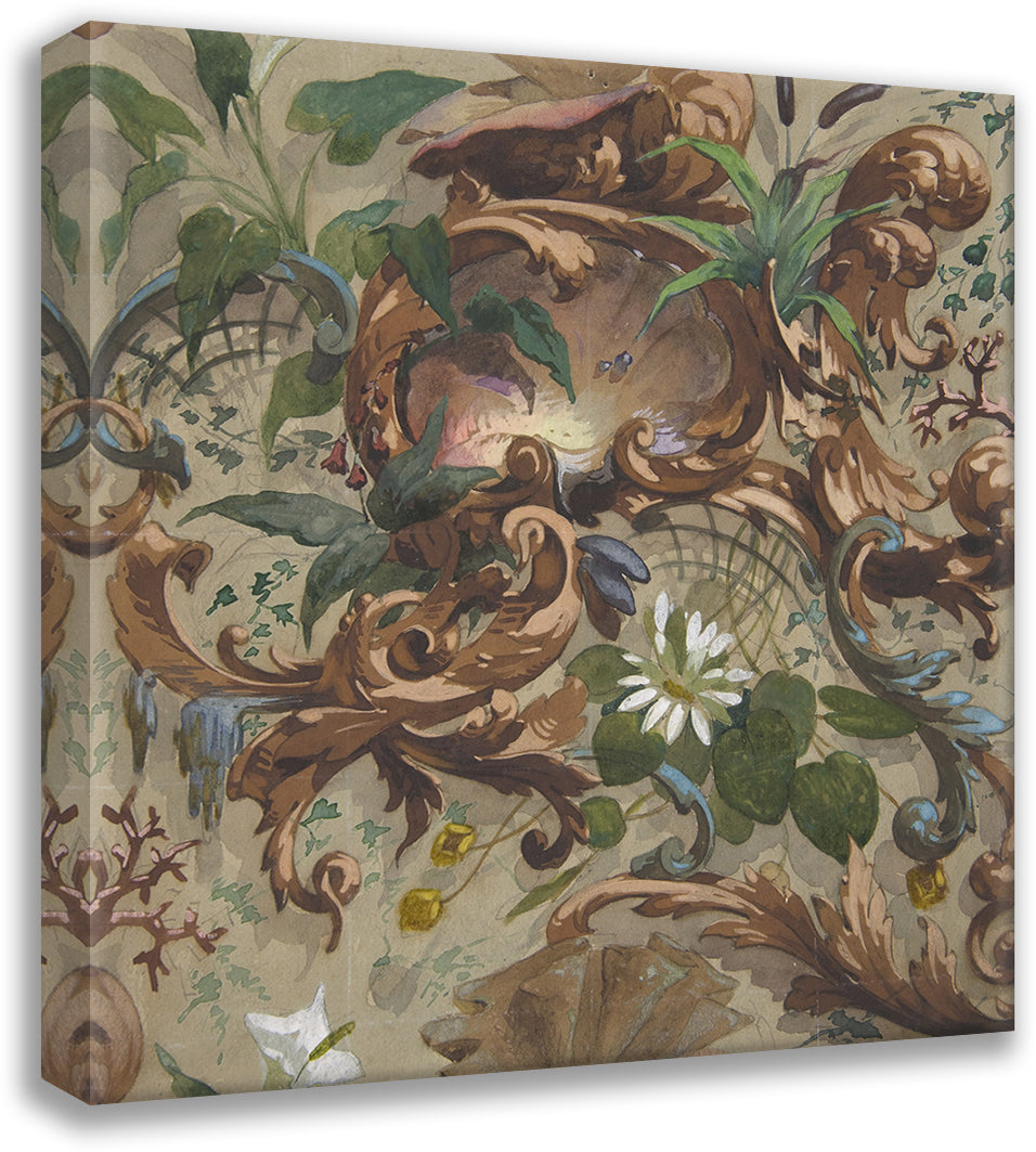 / Design for Wallpaper Featuring Shells, Waterlilies, and Cattails (1830-97)