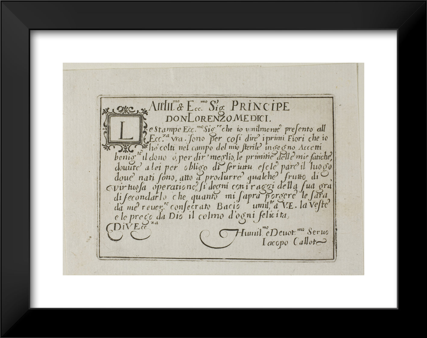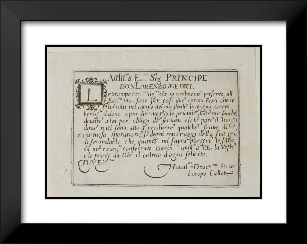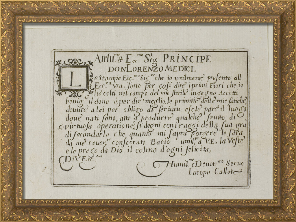 / Dedication to Don Lorenzo de'Medici, from The Caprices by Jacques Callot