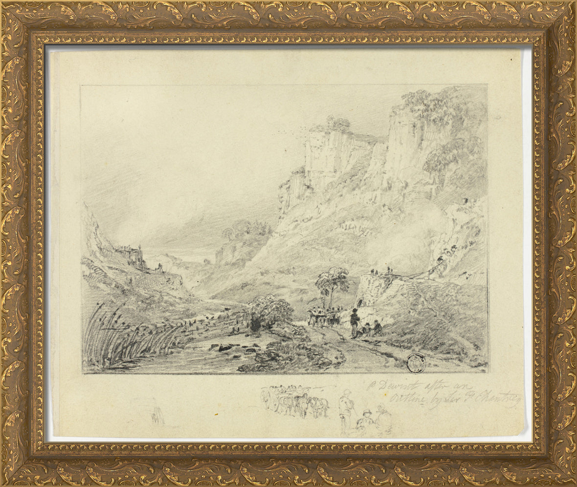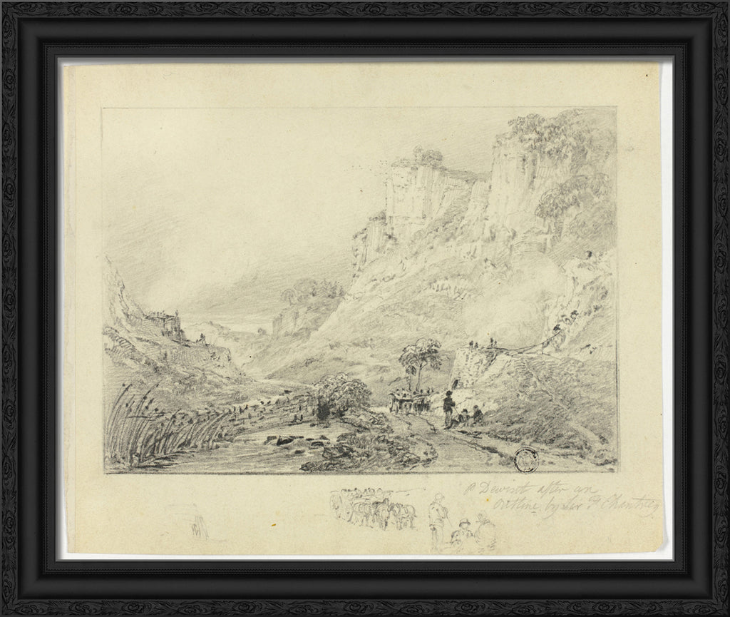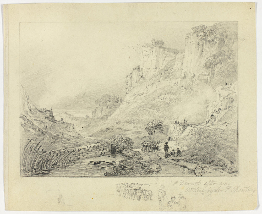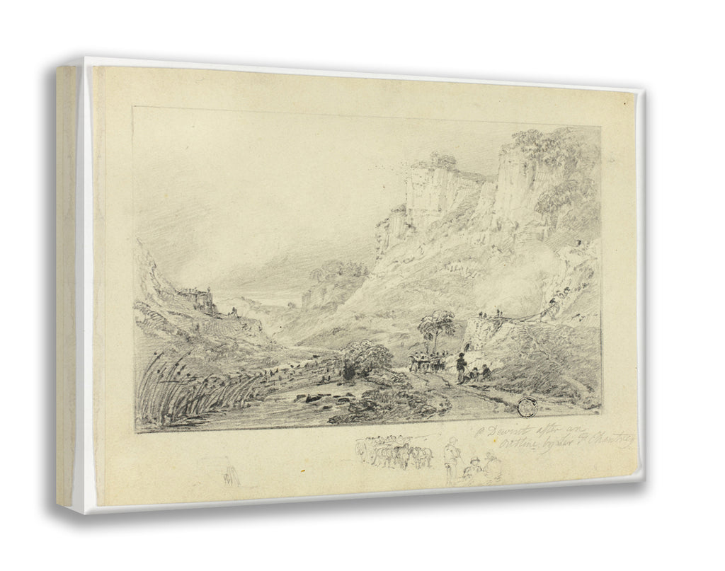 • Figures and Horse Cart in Landscape with Cliffs by Peter De Wint