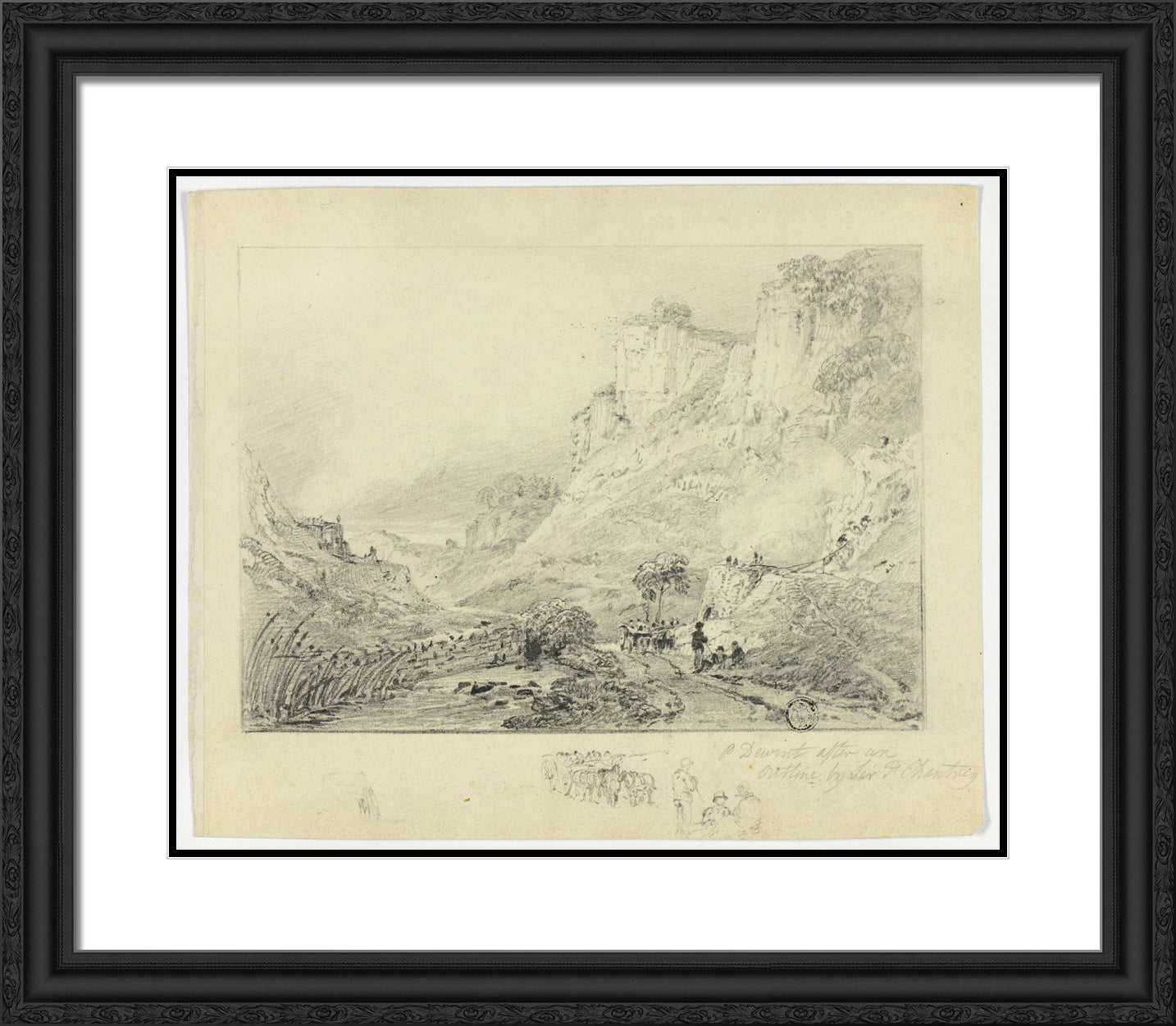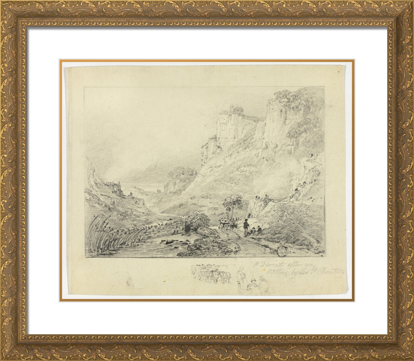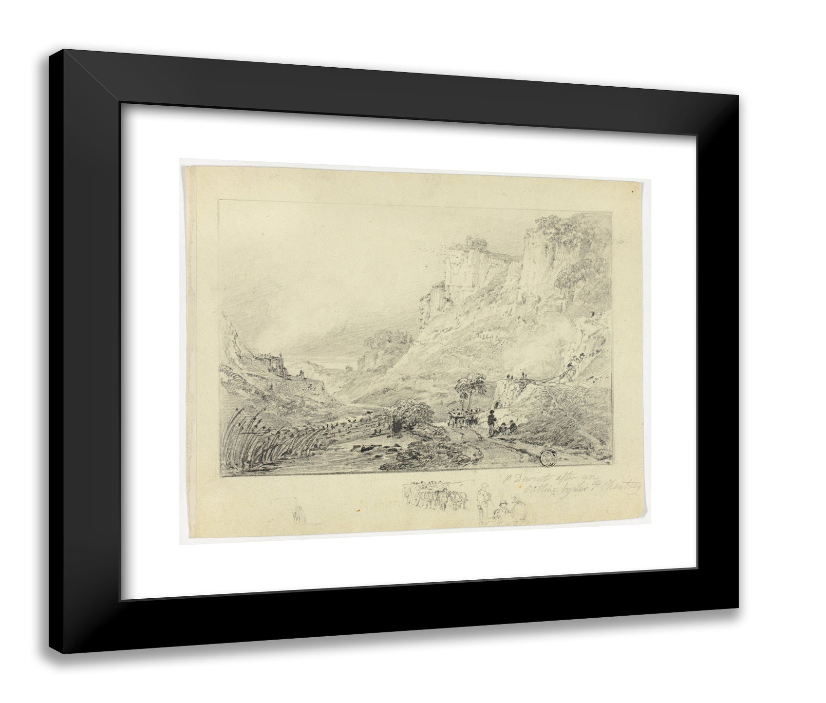 • Figures and Horse Cart in Landscape with Cliffs by Peter De Wint