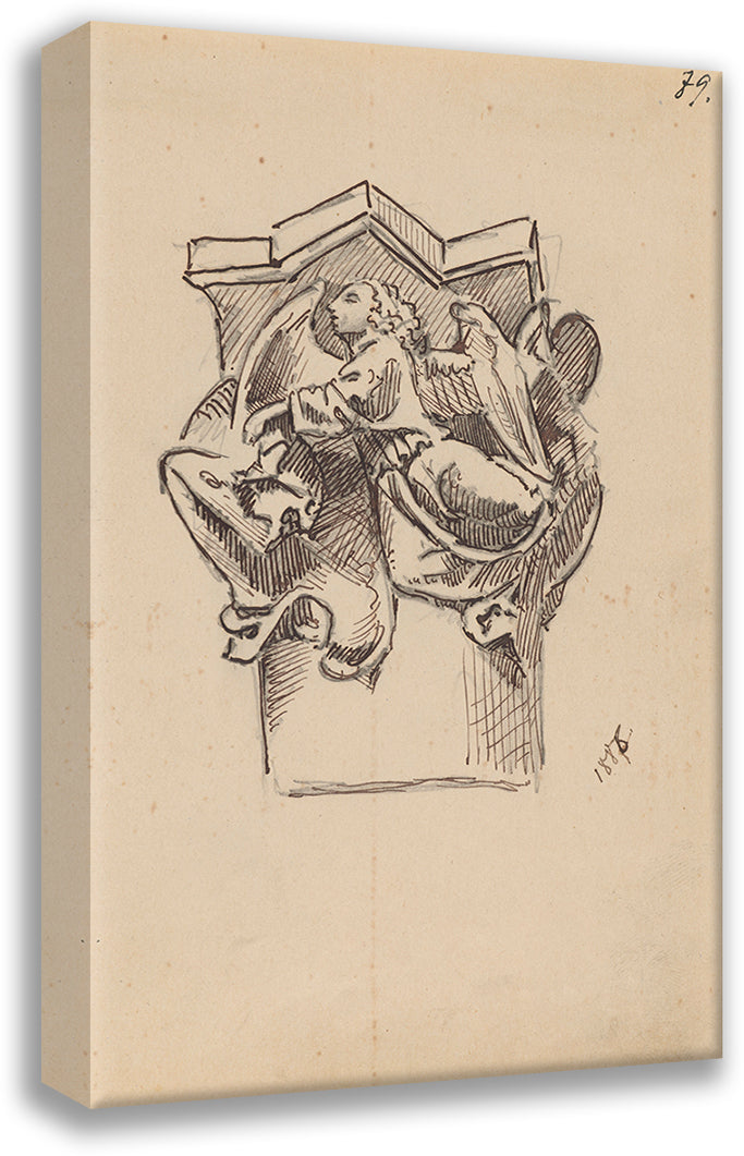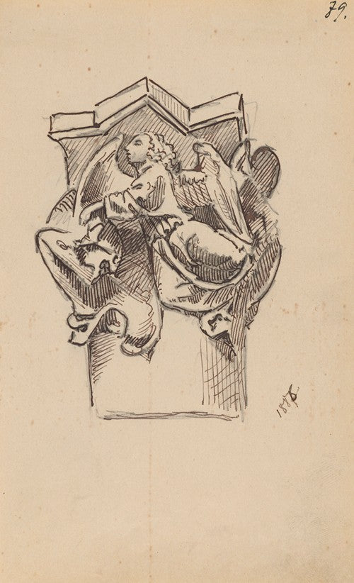 / Drawing of the Capital at the Tomb of Casimir IV Jagiellon by Veit Stoss in the Świętokrzyska Chapel of the Krakow Cathedral (1886)