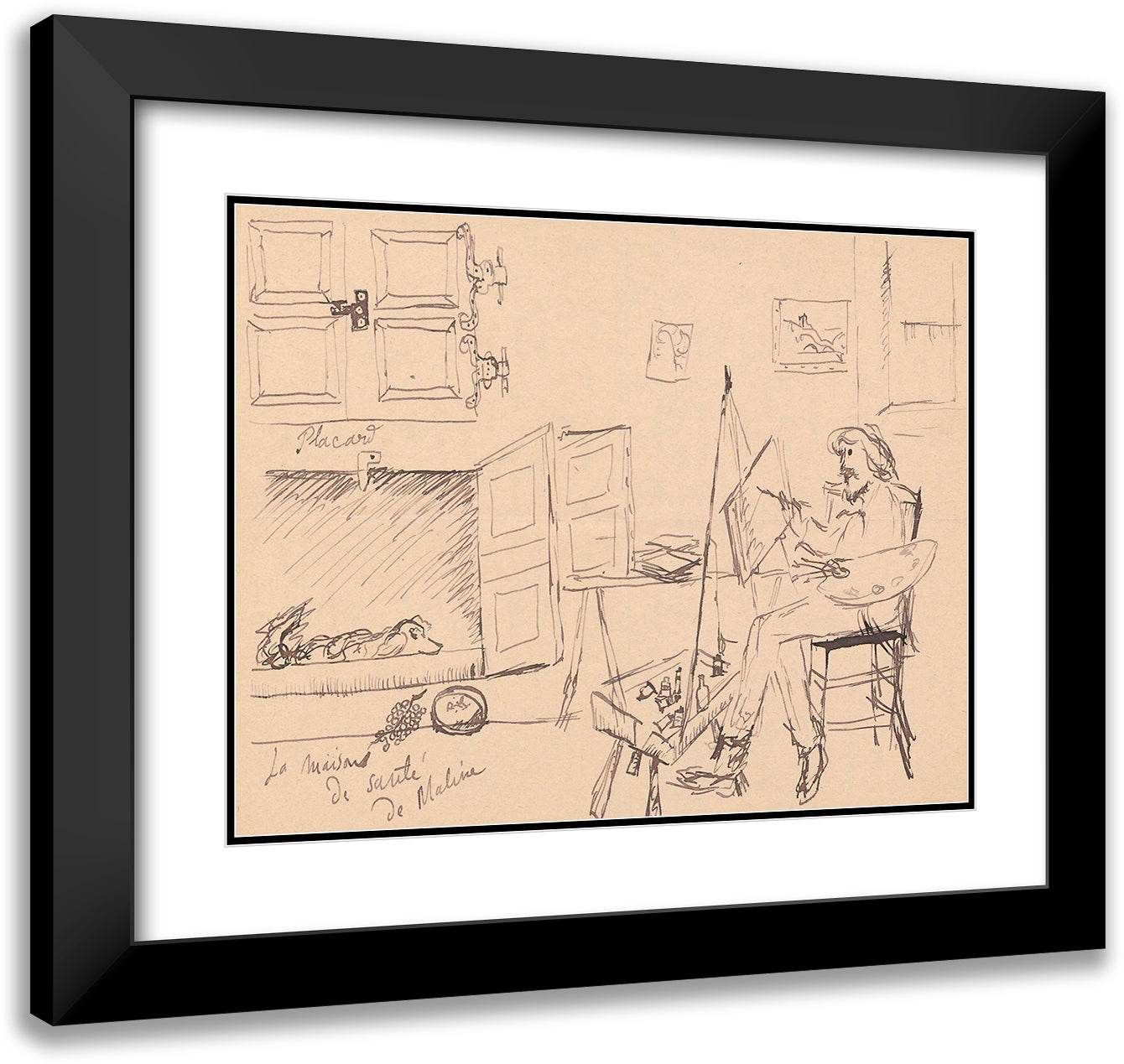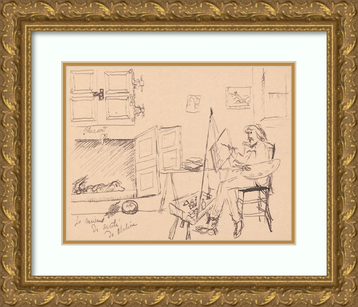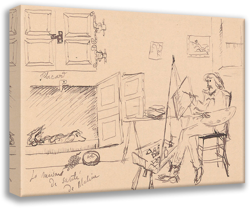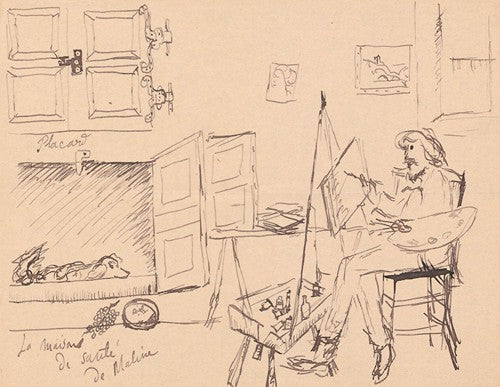 Letter to Maria Mickiewiczowna with a Drawing (Self-Portrait of the Artist Painting a Picture at Their Workshop, with the Ill Dog Malina Lying in its (1920)