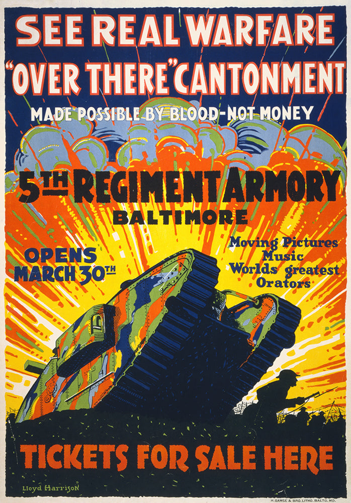 / See Real Warfare - ‘Over There’ Cantonment - Made Possible by Blood-Not Money 5th Regiment Armory, Baltimore - Tickets for Sale Here (1918)
