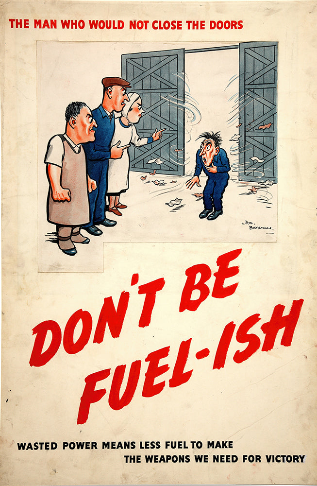 / The Man Who Would Not Close the Doors. Don't Be Fuel-Ish. Wasted Power Means Less Fuel to Make the Weapons We Need for Victory (Between 1939 and 1946)